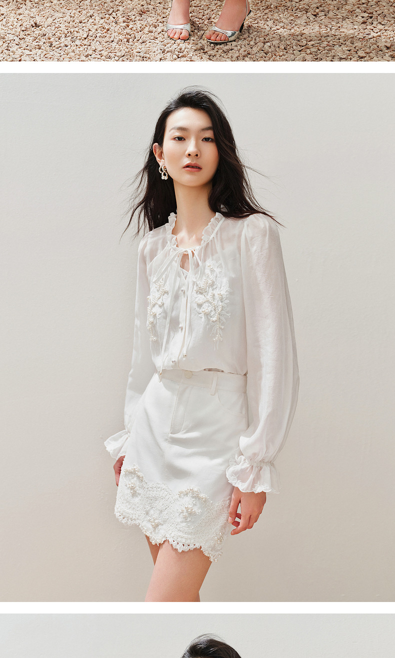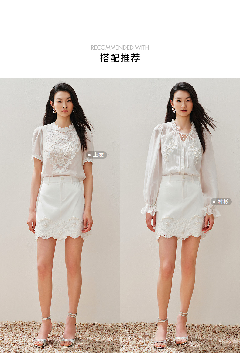 MAXRIENY法式宫廷风半身裙2026年春季新款米白色半裙蕾丝刺绣长裙(货号:MF80SK014)