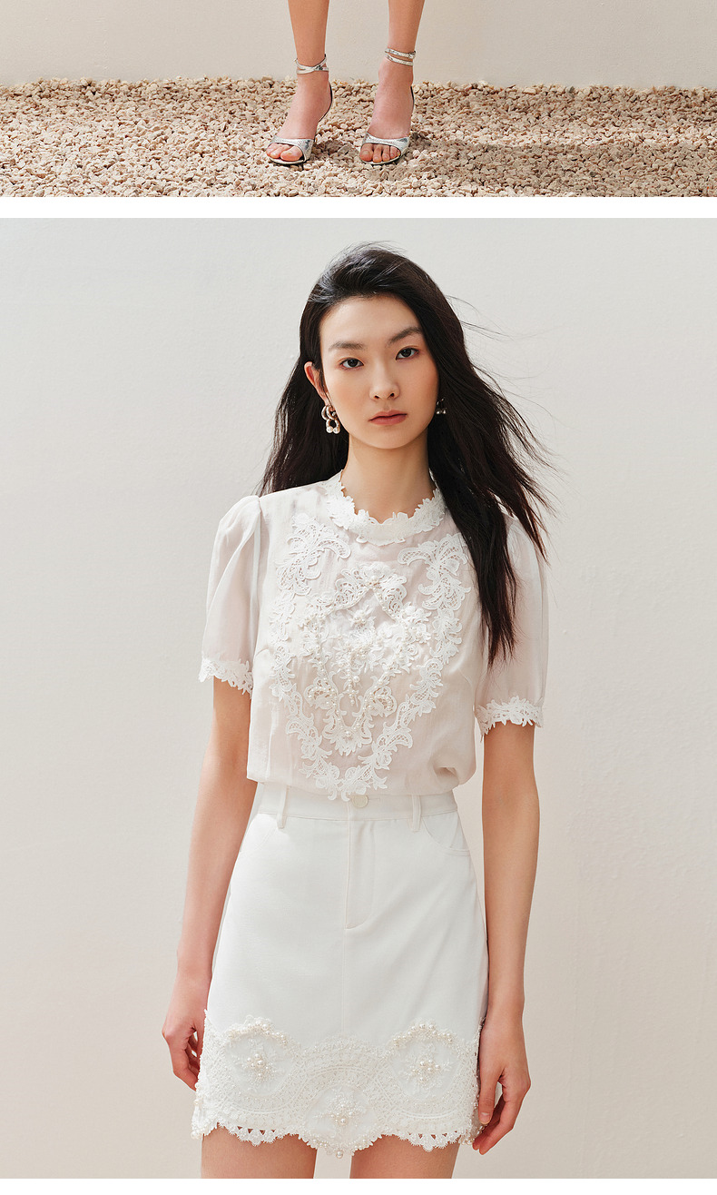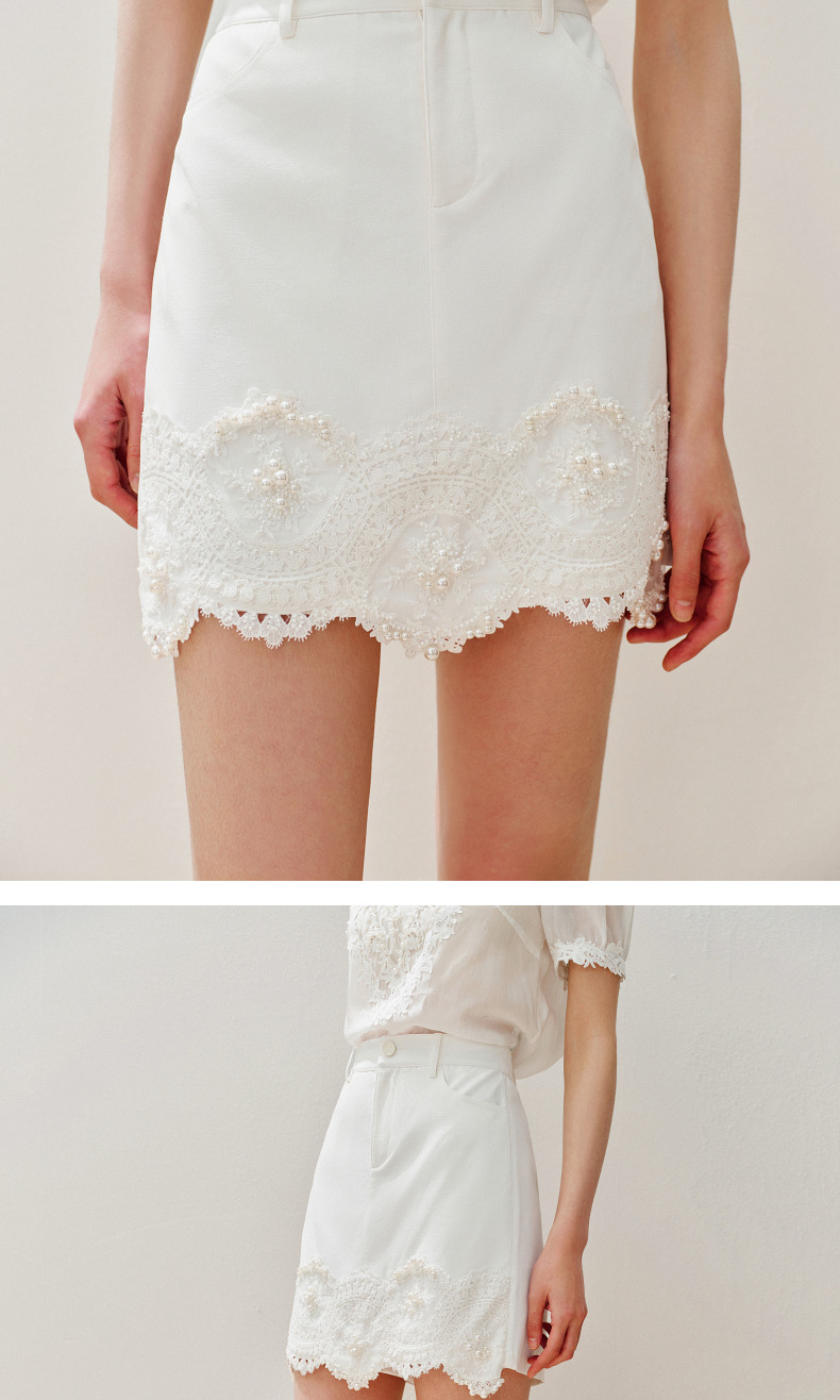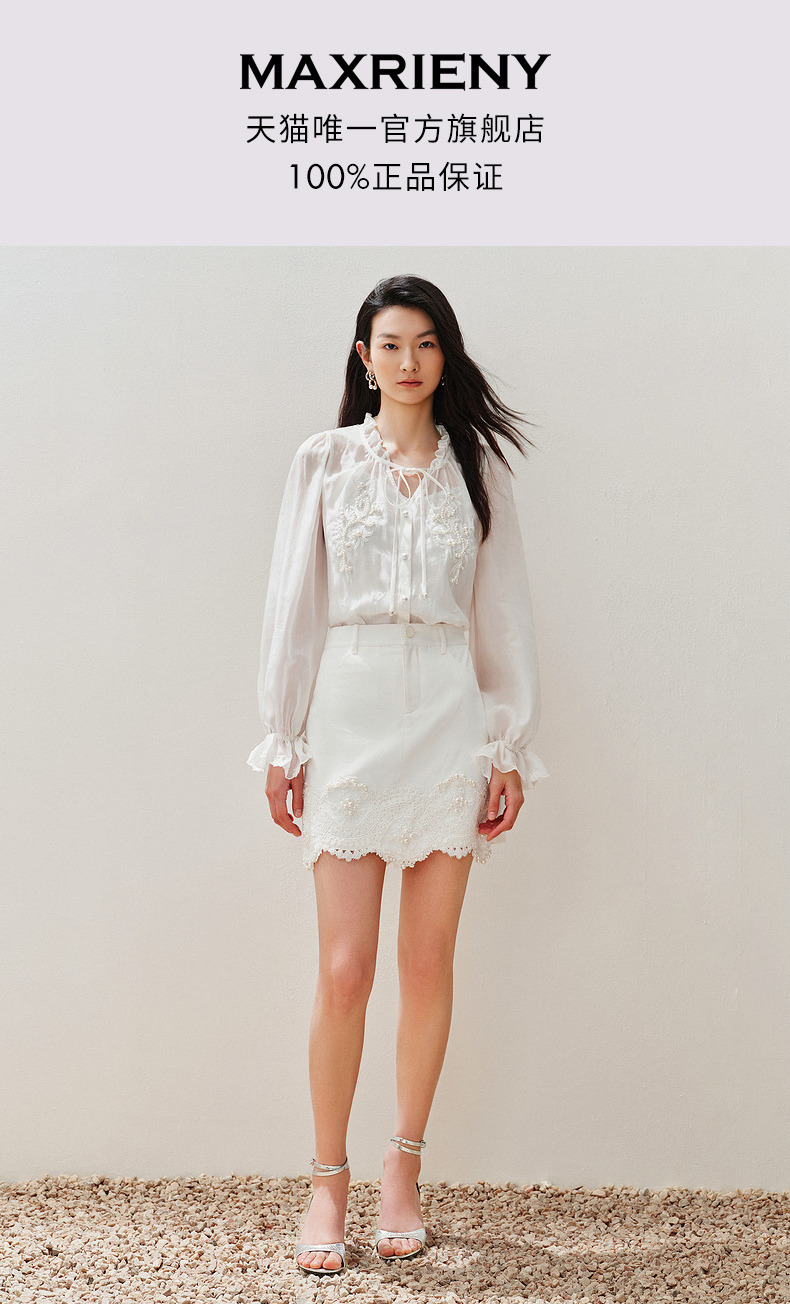 玛克门店发货:MAXRIENY华丽甜美感直身钉珠蕾丝短裤女(货号:MC85PA286)