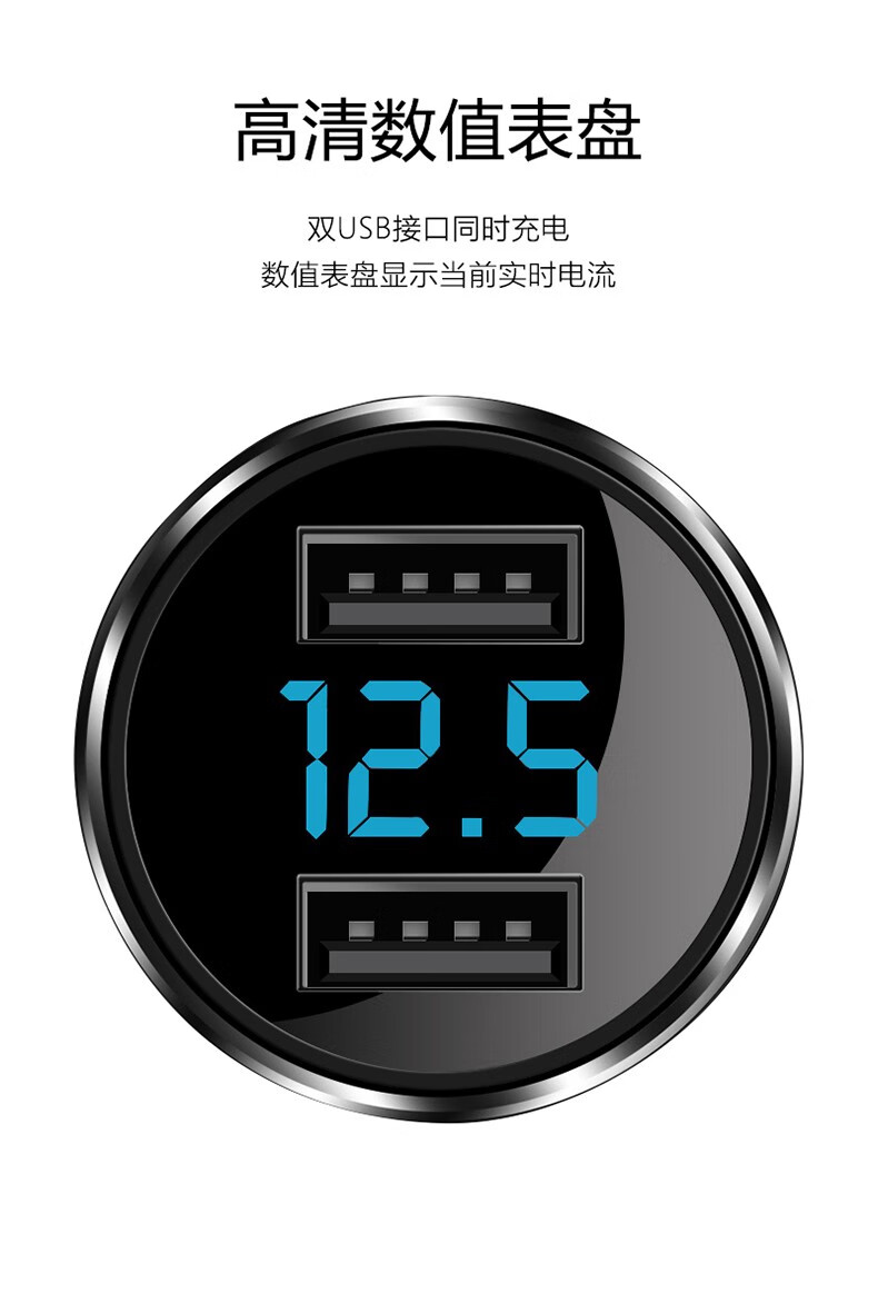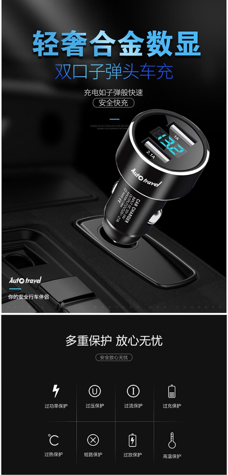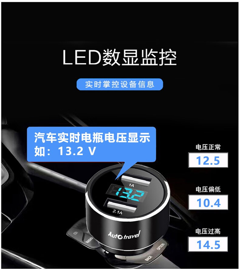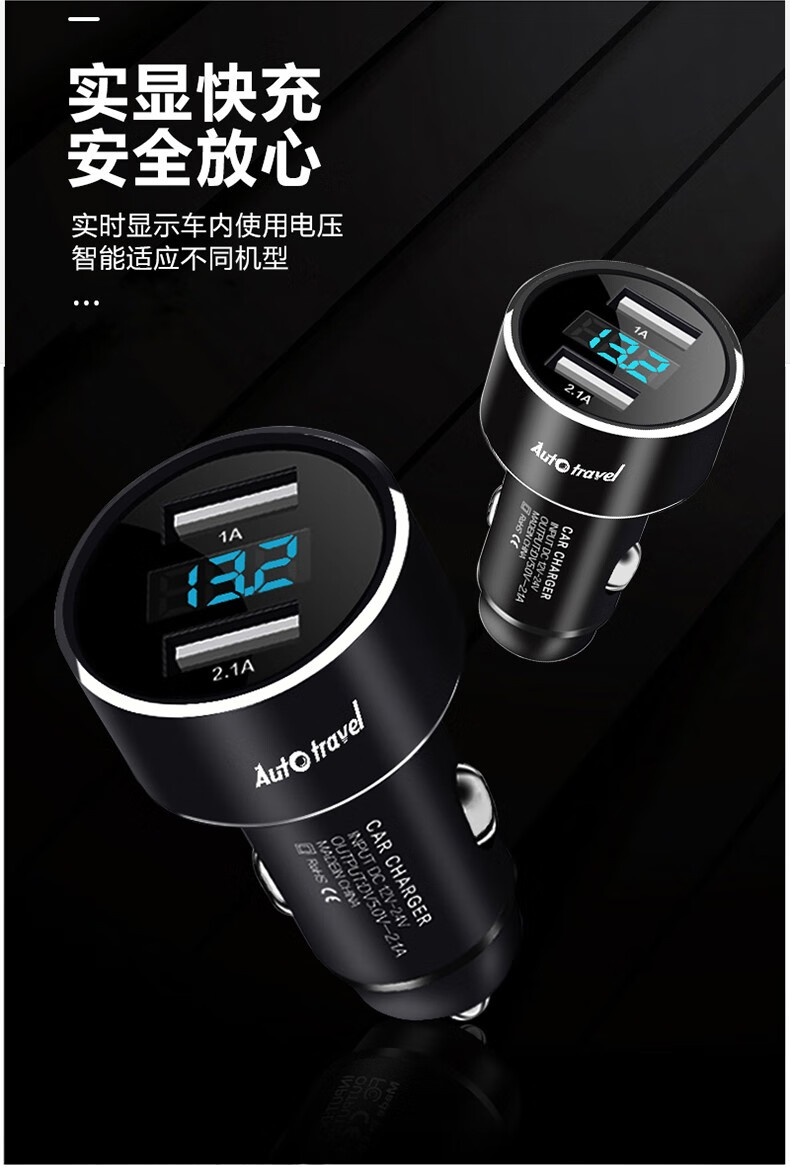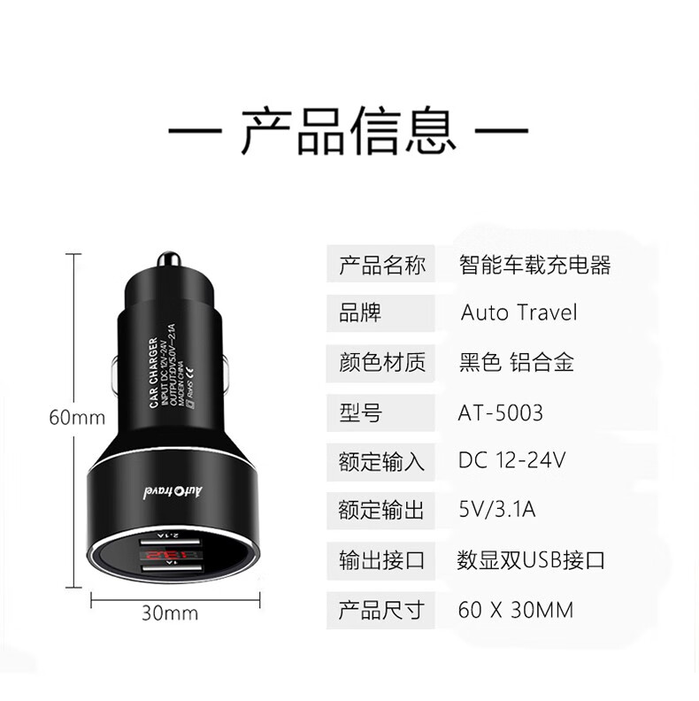 Auto Travel美旅 金属双USB数显车充 AT-5003