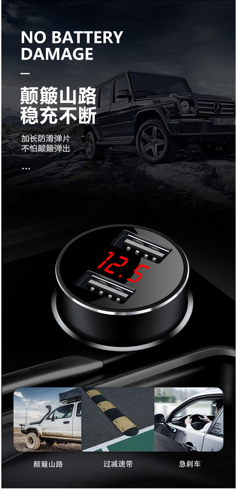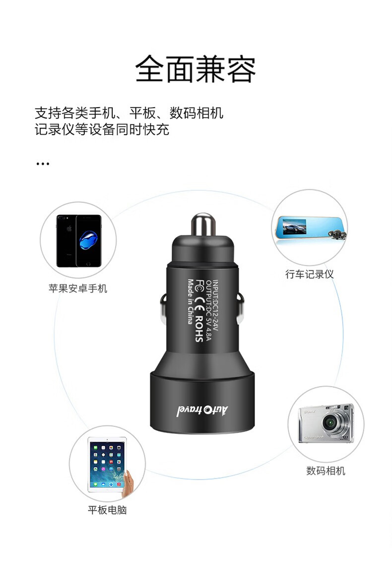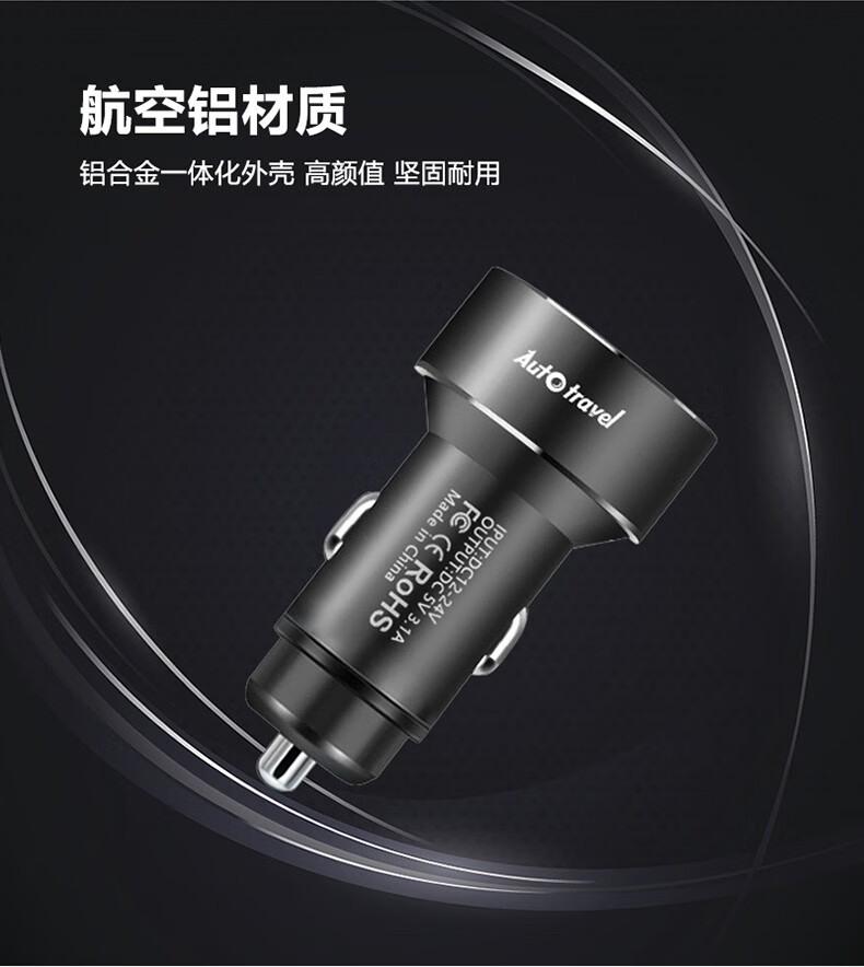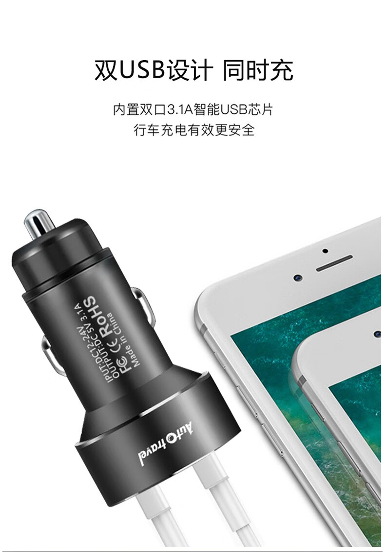Auto Travel美旅 金属双USB数显车充 AT-5003
