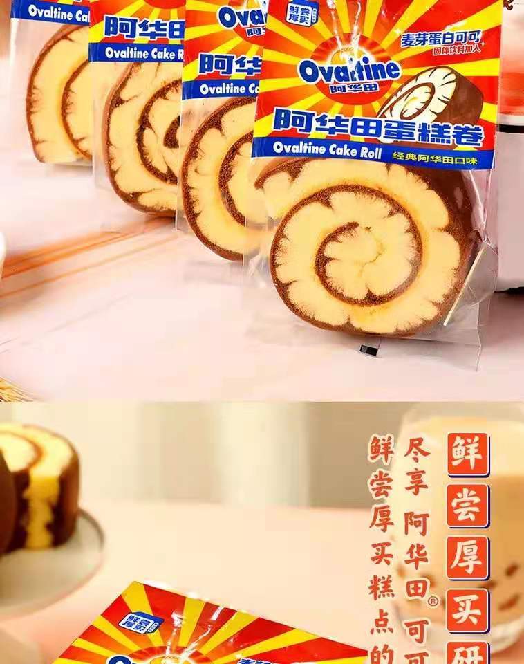【阿华田蛋糕卷】😋入口丝滑细腻,口感香浓🧁 颜值高味道好,奶油很充盈,巧克力味🍫也很浓,甜度也刚刚好💯 整体就是浓郁的阿华田风味,你以为会很油腻,实则完全都不会哦 ‼一箱5个