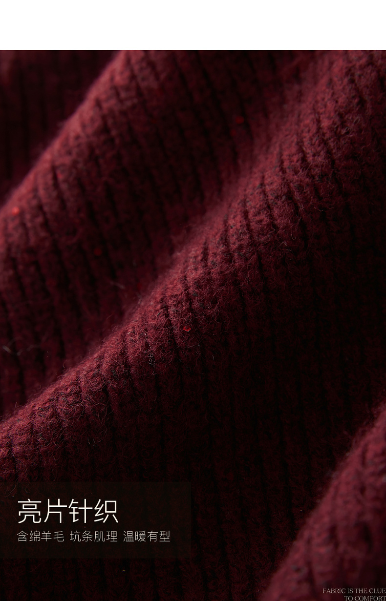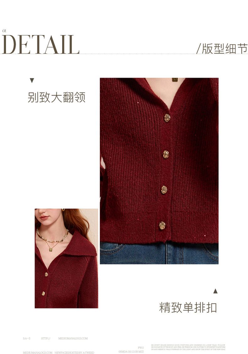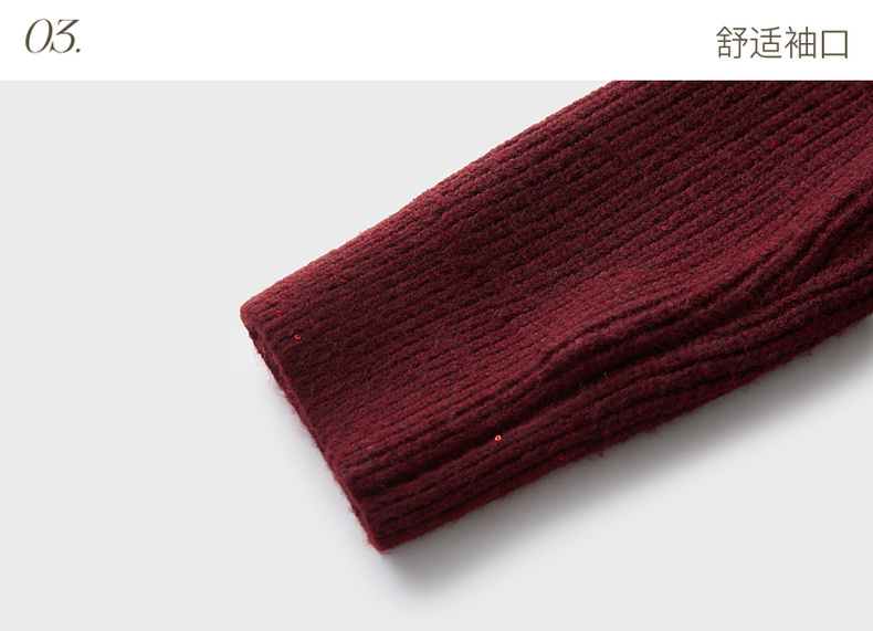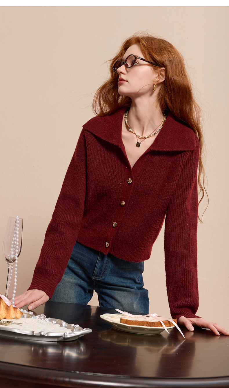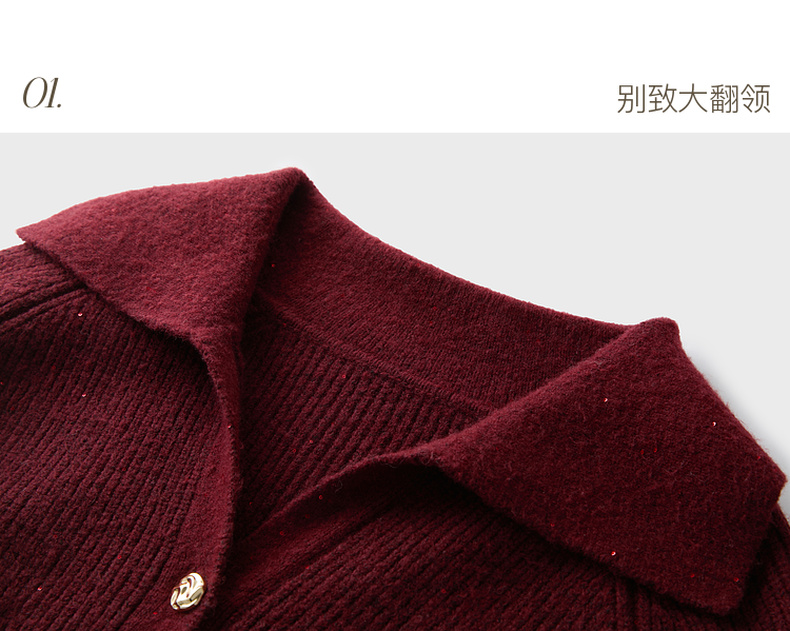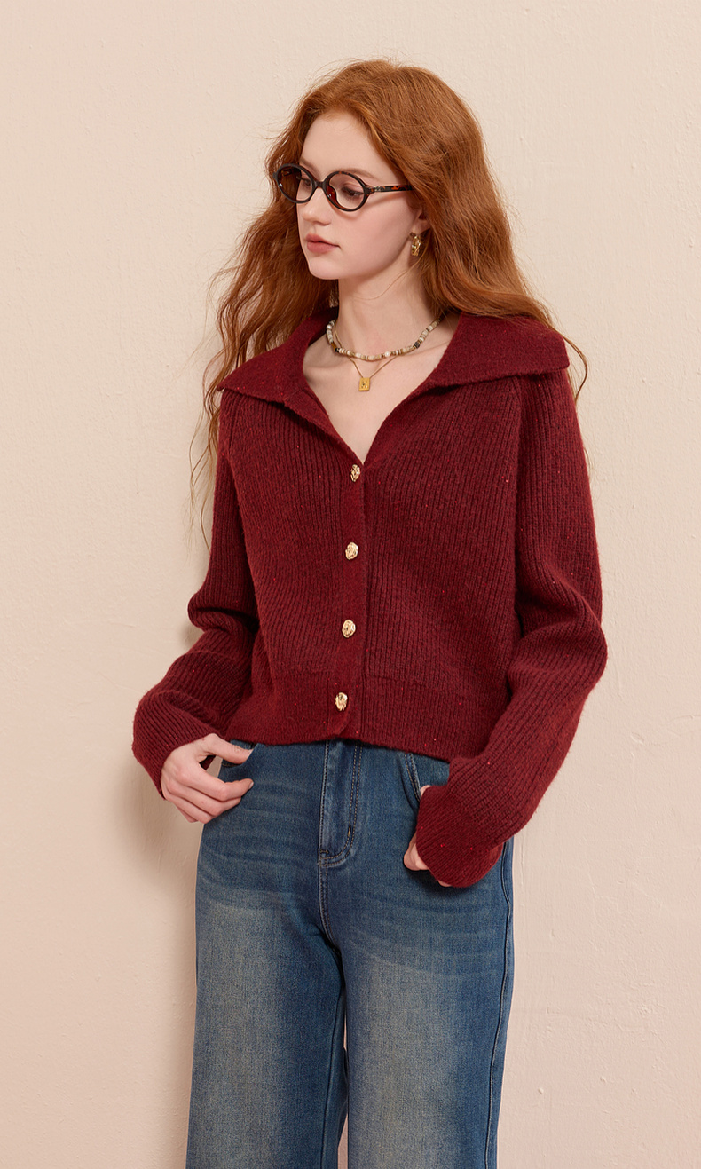 三彩2025冬季新款翻领针织衫亮片毛衫宽松短款开衫休闲M