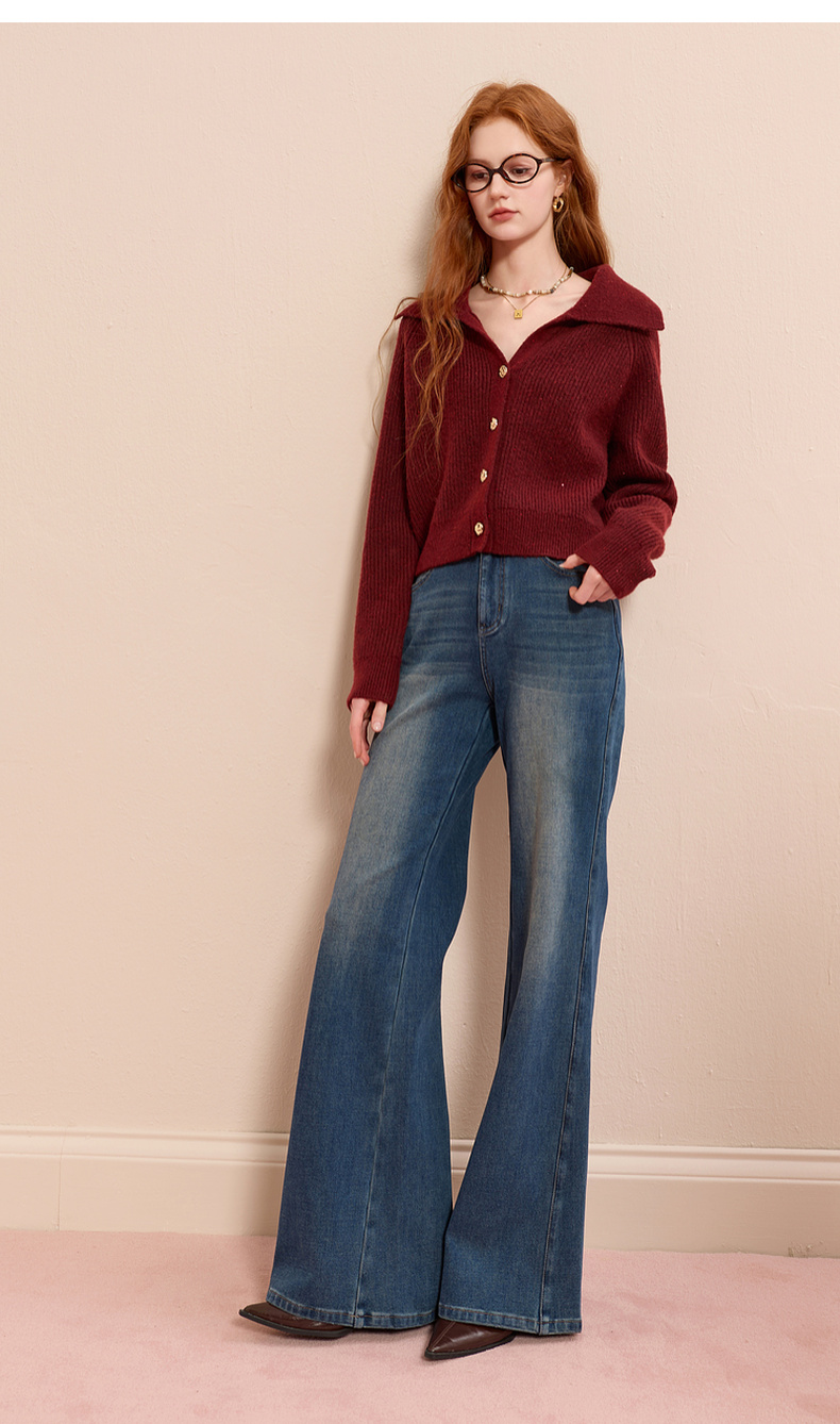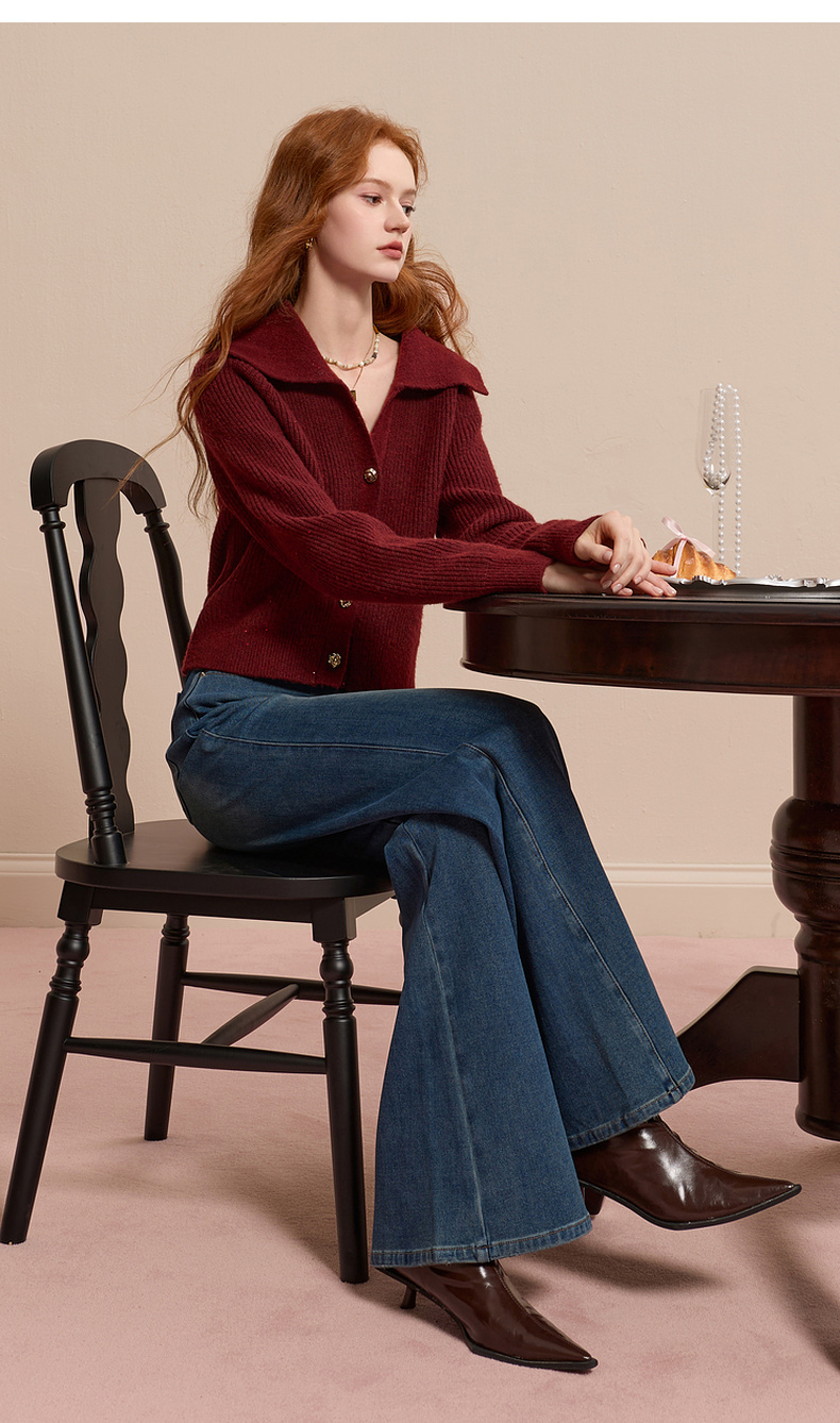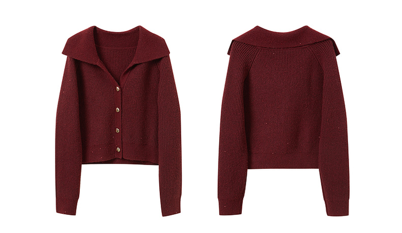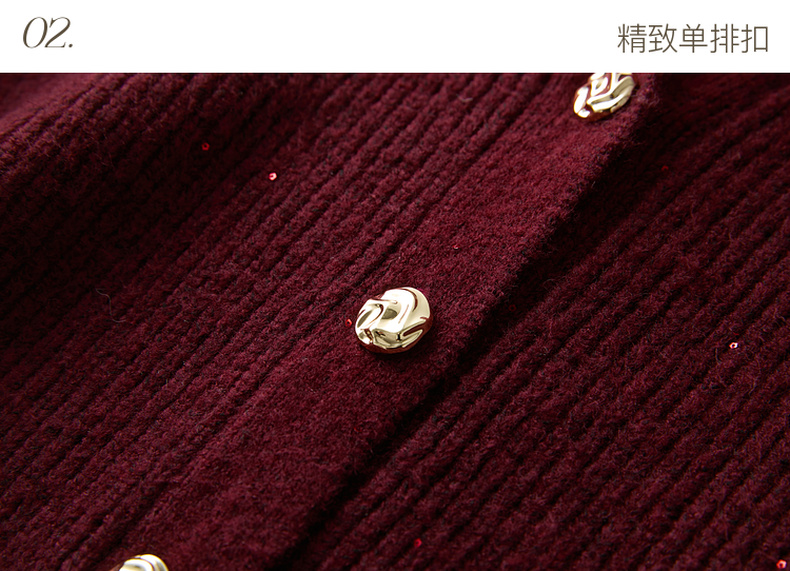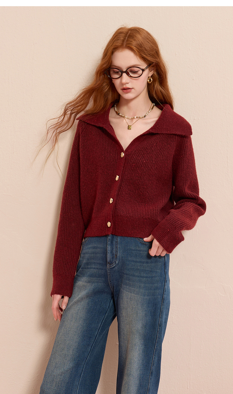 三彩2025冬季新款翻领针织衫亮片毛衫宽松短款开衫休闲M