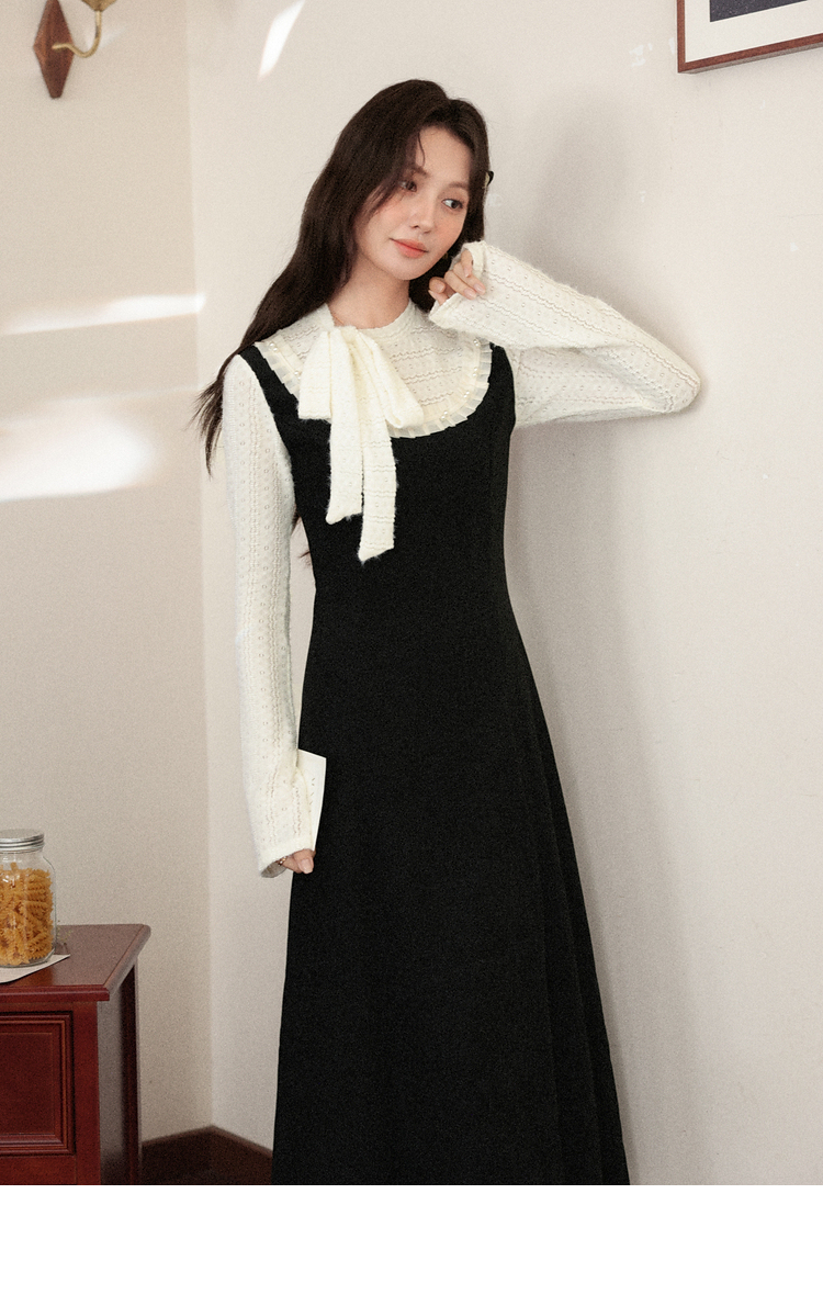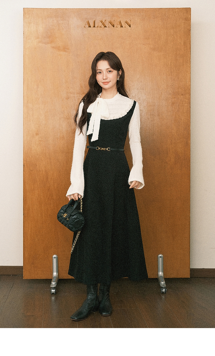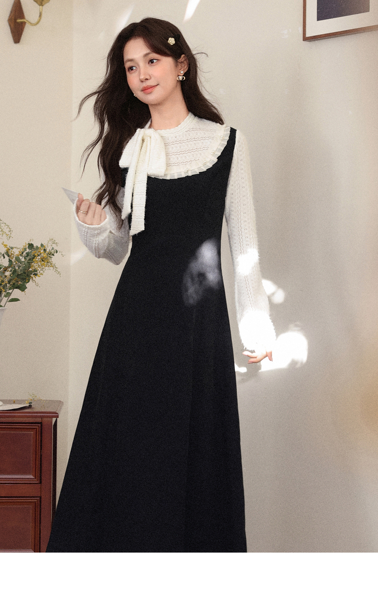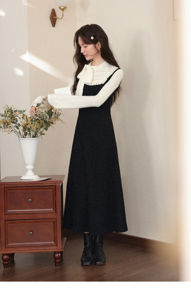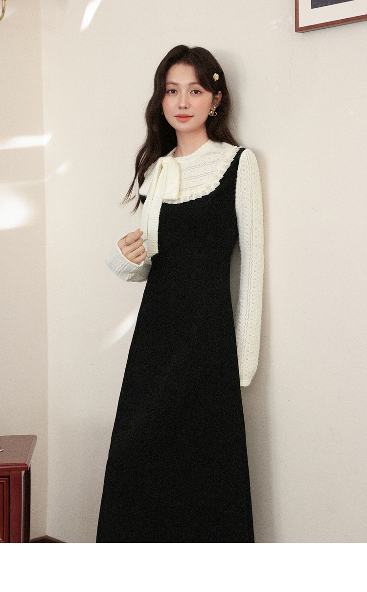 鹿向南「流光剧场」法式气质黑色连衣裙女秋新款叠穿收腰显瘦长裙