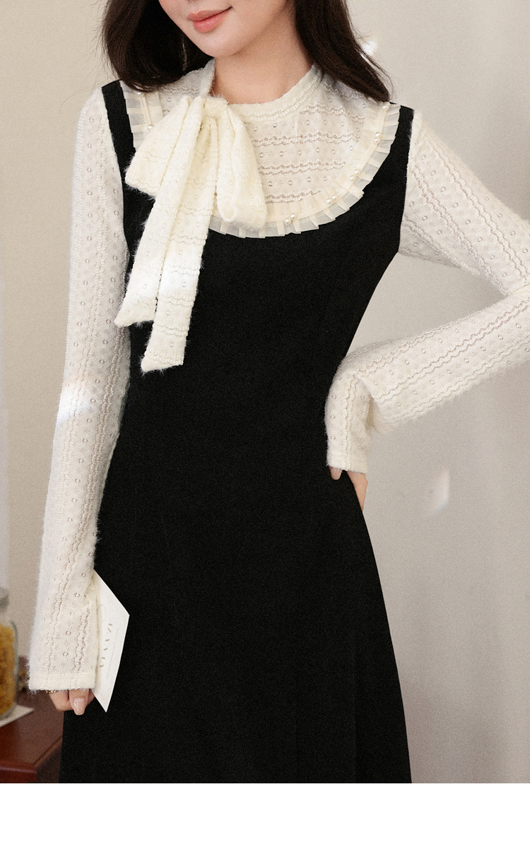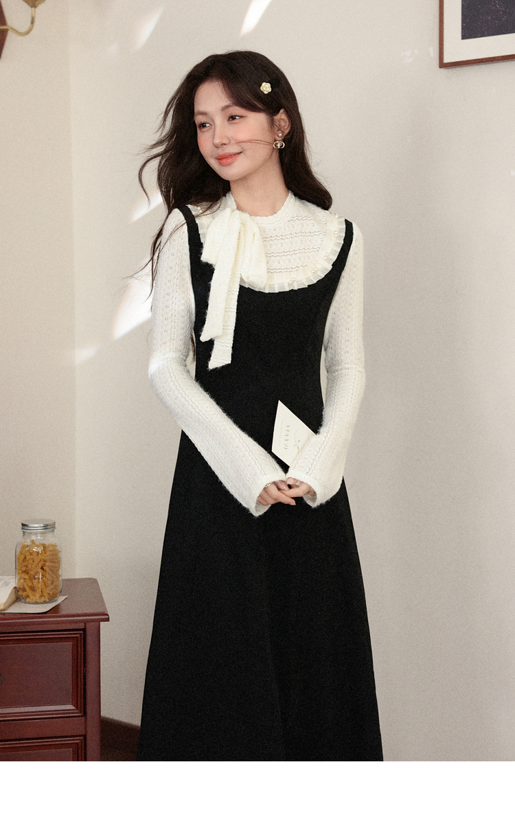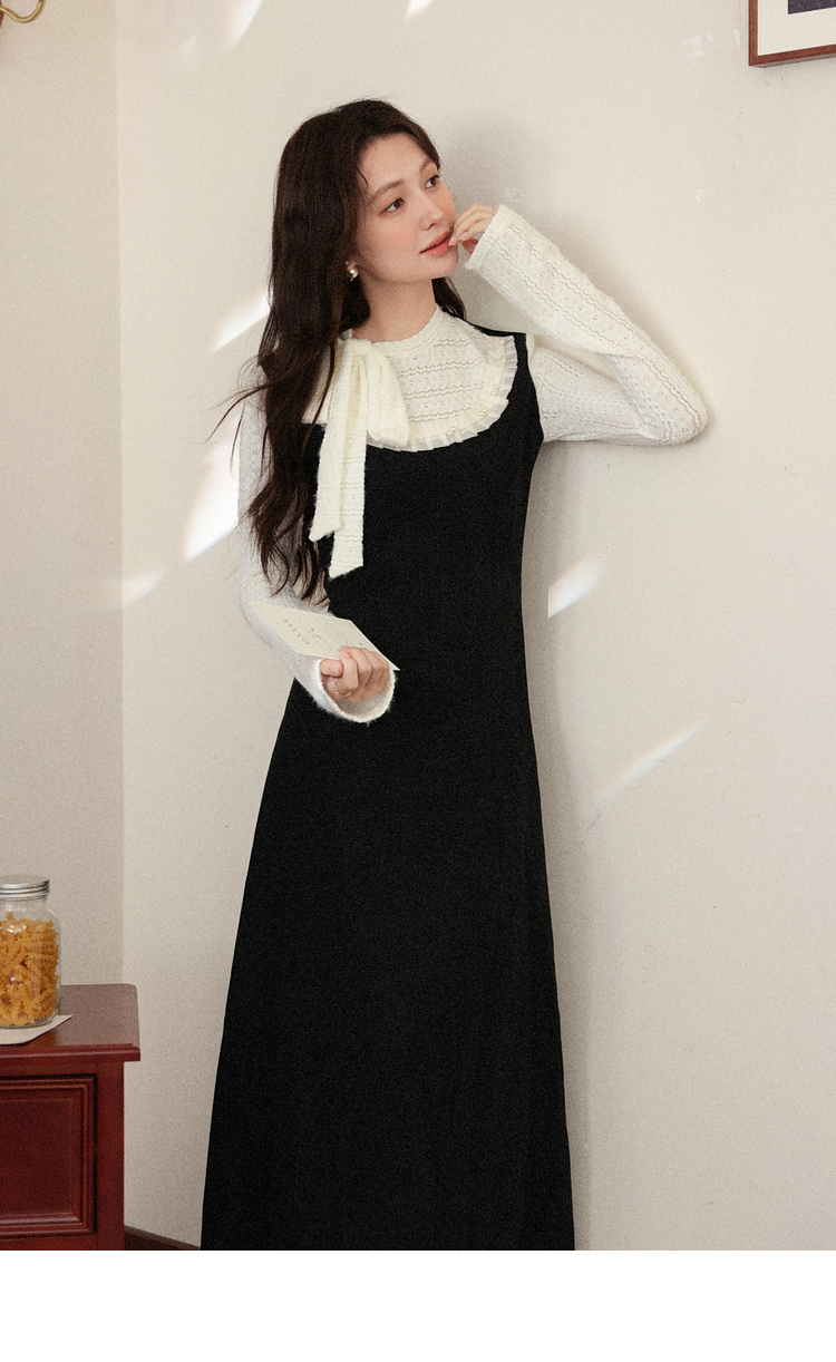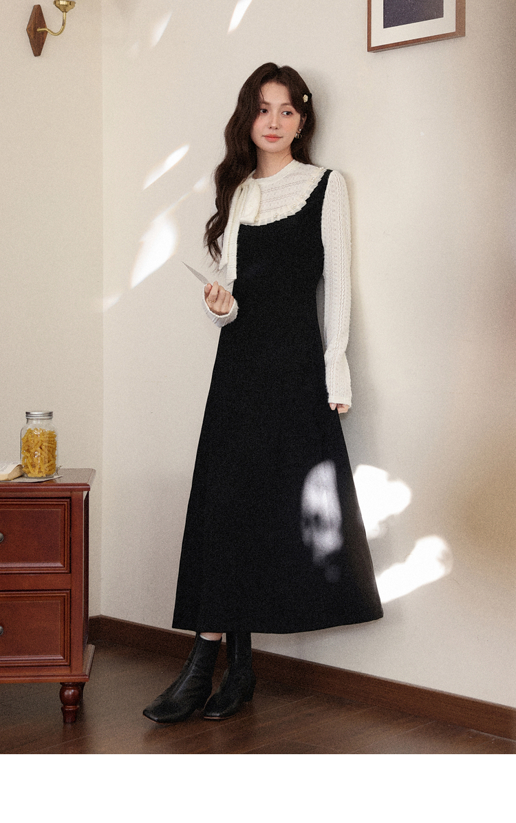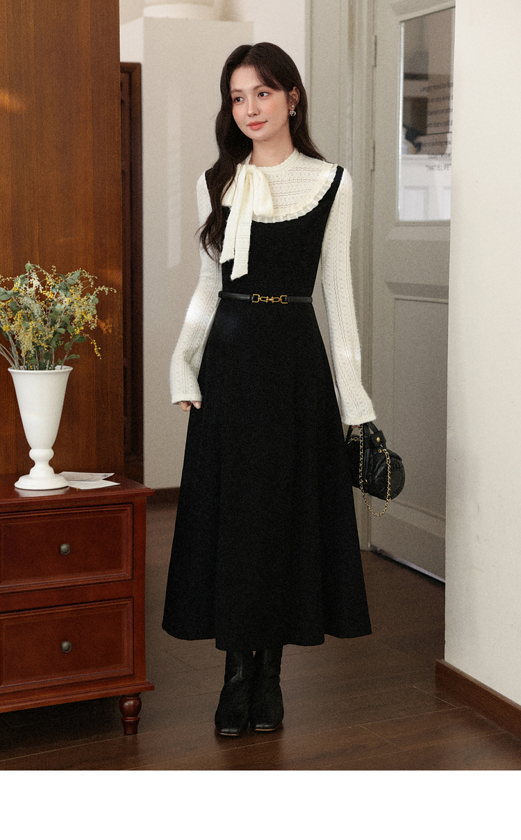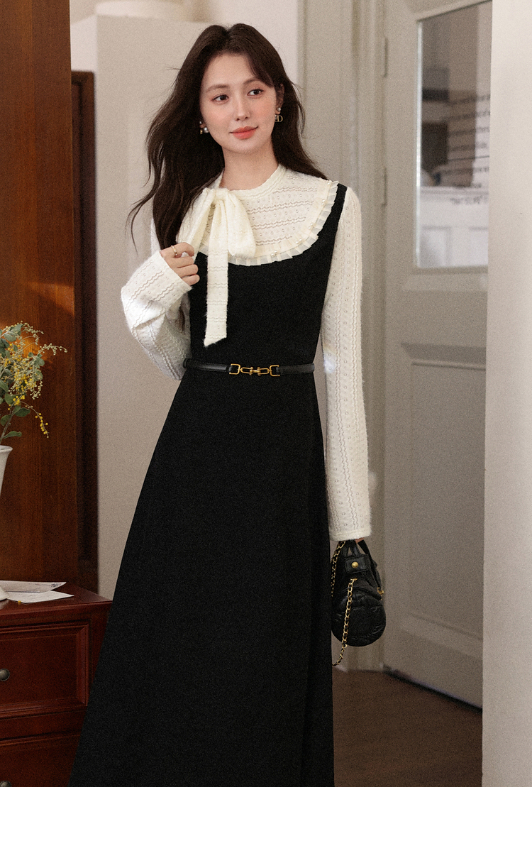 鹿向南「流光剧场」法式气质黑色连衣裙女秋新款叠穿收腰显瘦长裙