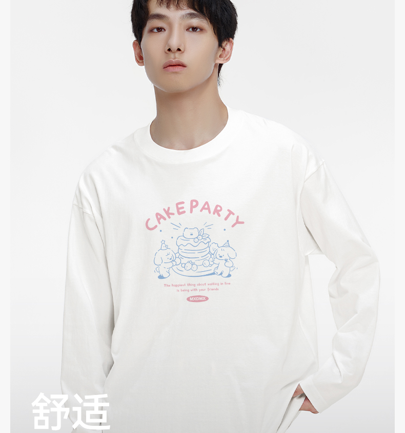 「棉的美学」卡通图案印花圆领长袖T恤秋季新款宽松显瘦打底衫男
