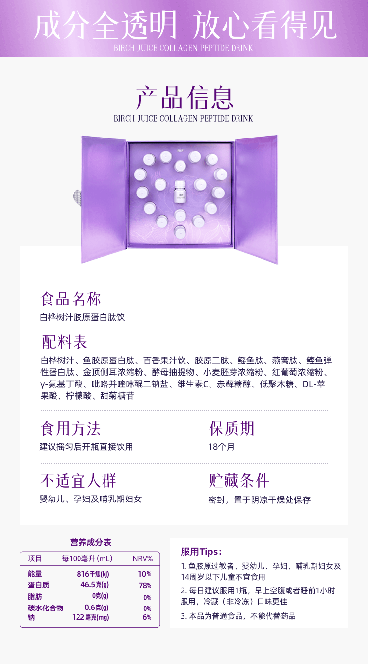 临期清仓-有效期到2026/7/1【礼盒装】颜活季 白桦树汁胶原蛋白肽礼盒装 18支装/盒