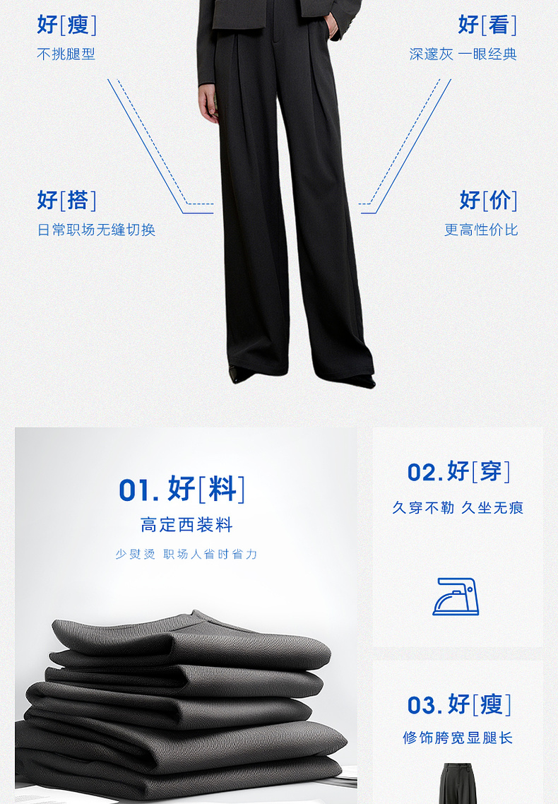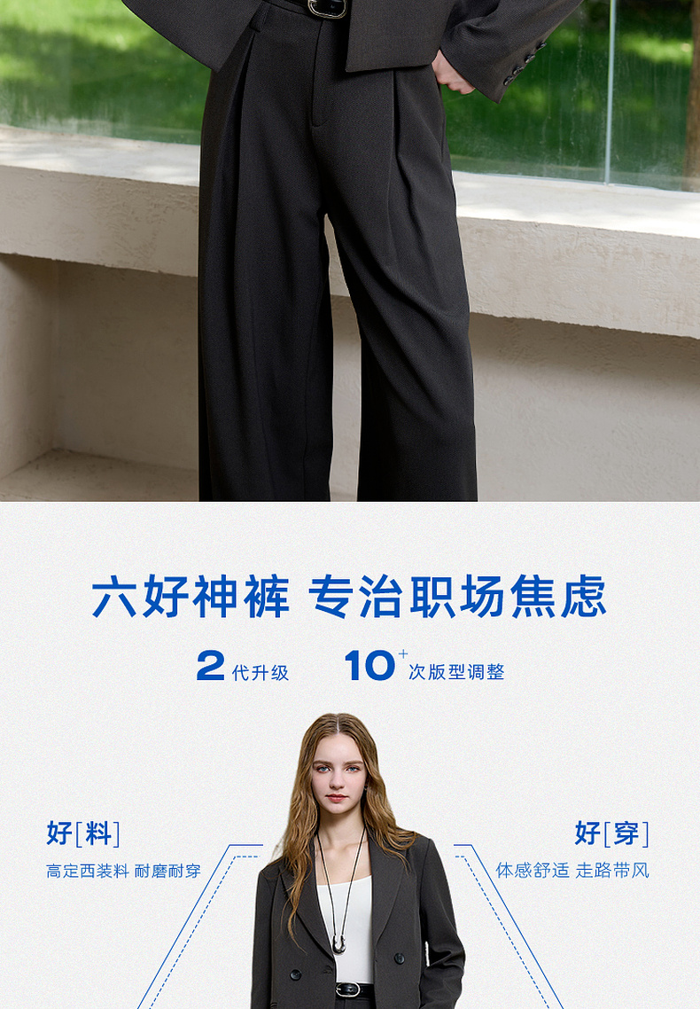【六好通勤裤】三彩2025秋季新款休闲西装裤高腰宽松阔腿裤长裤通勤Z