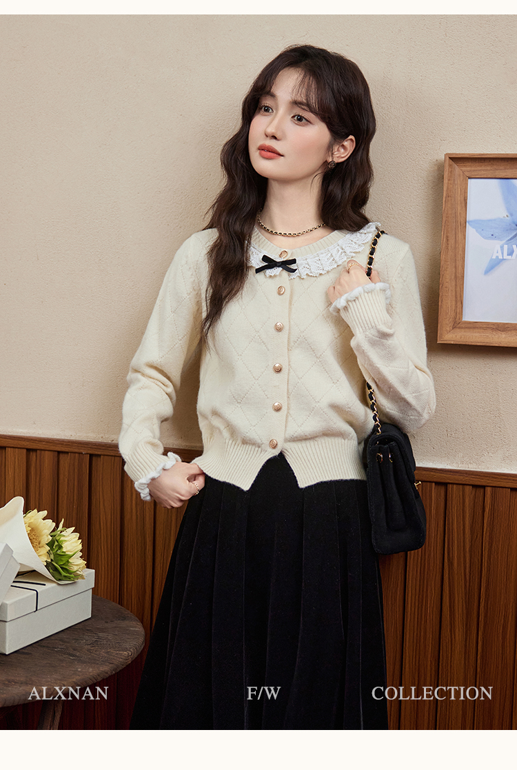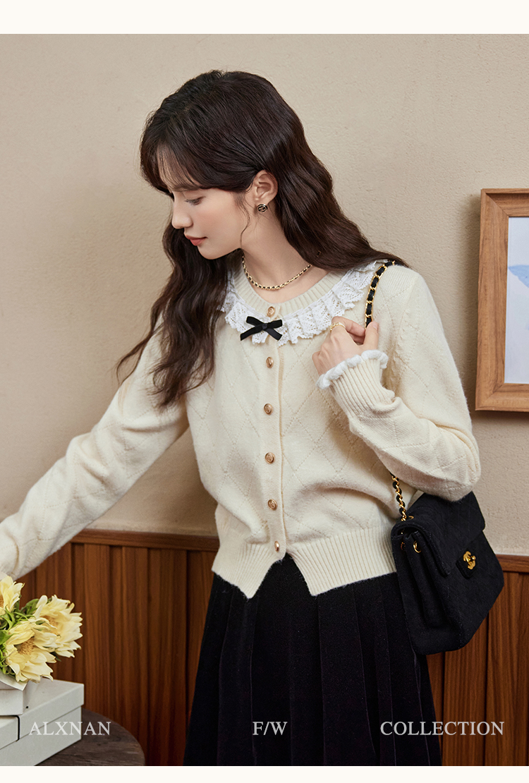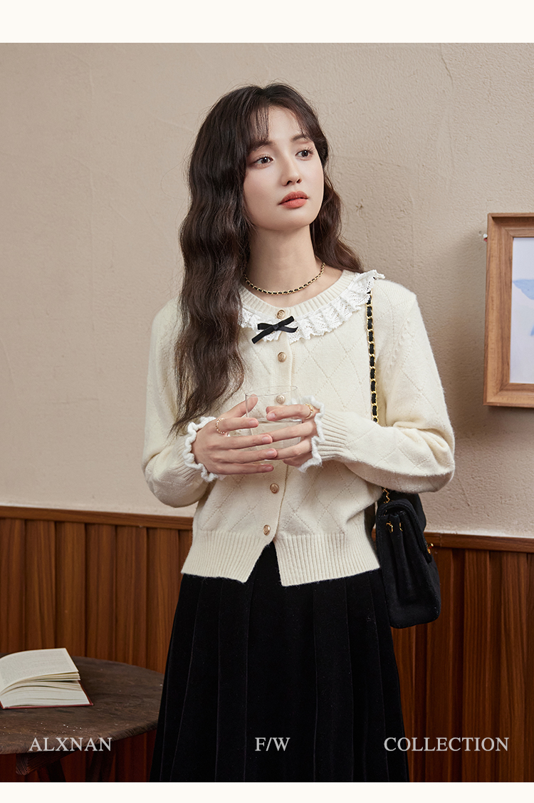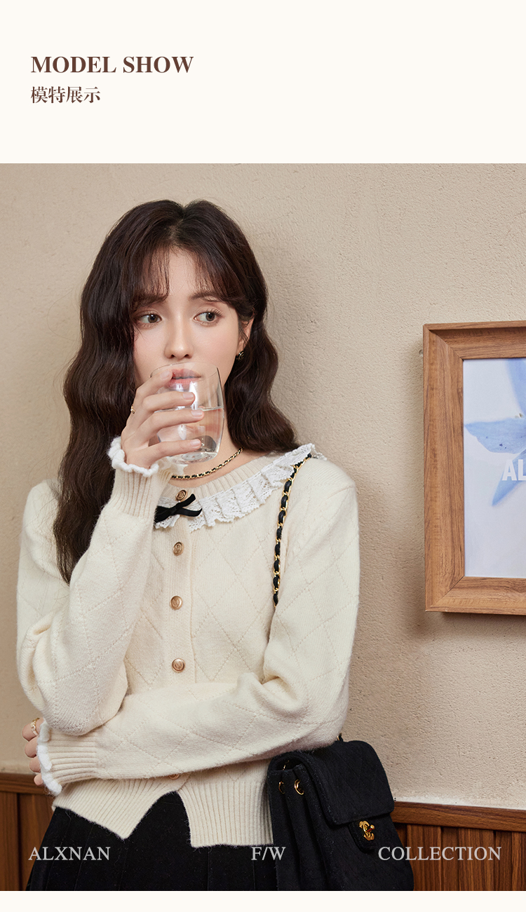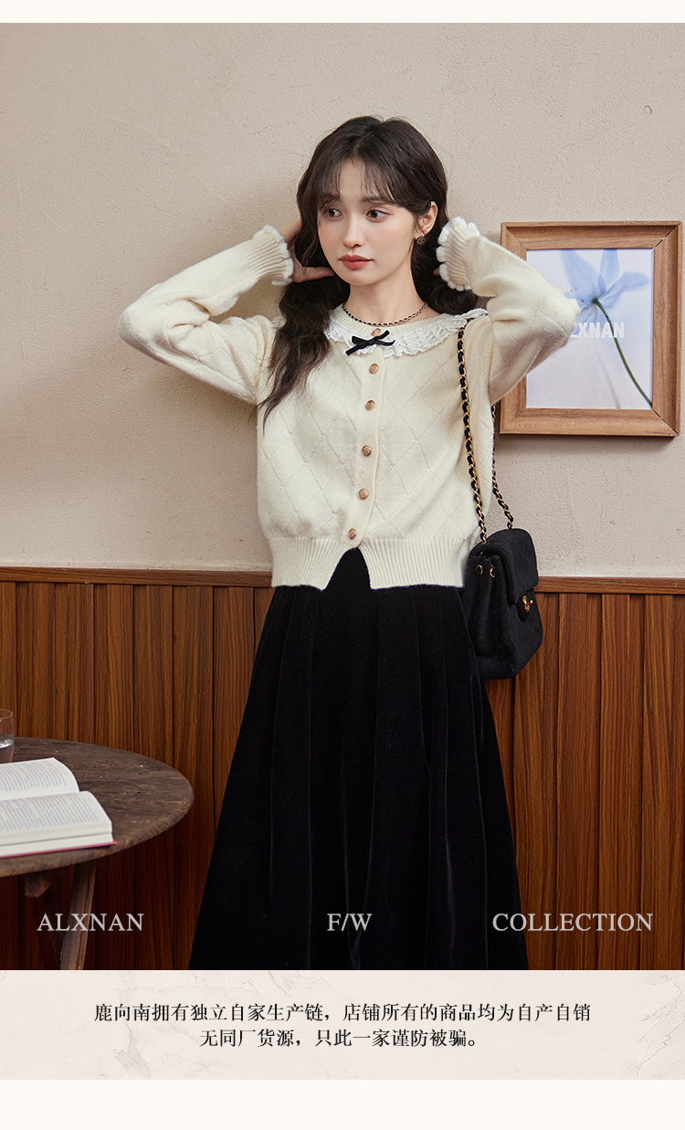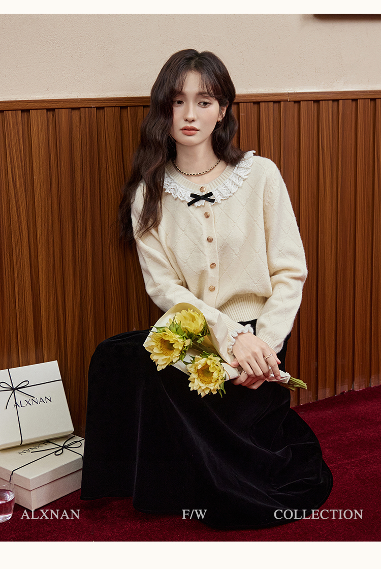 鹿向南「冰雪玫瑰」复古红色毛衣女秋冬高级感气质优雅针织衫上衣