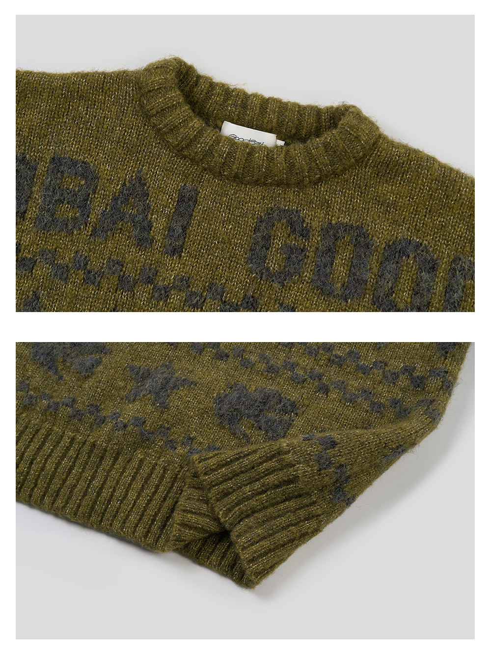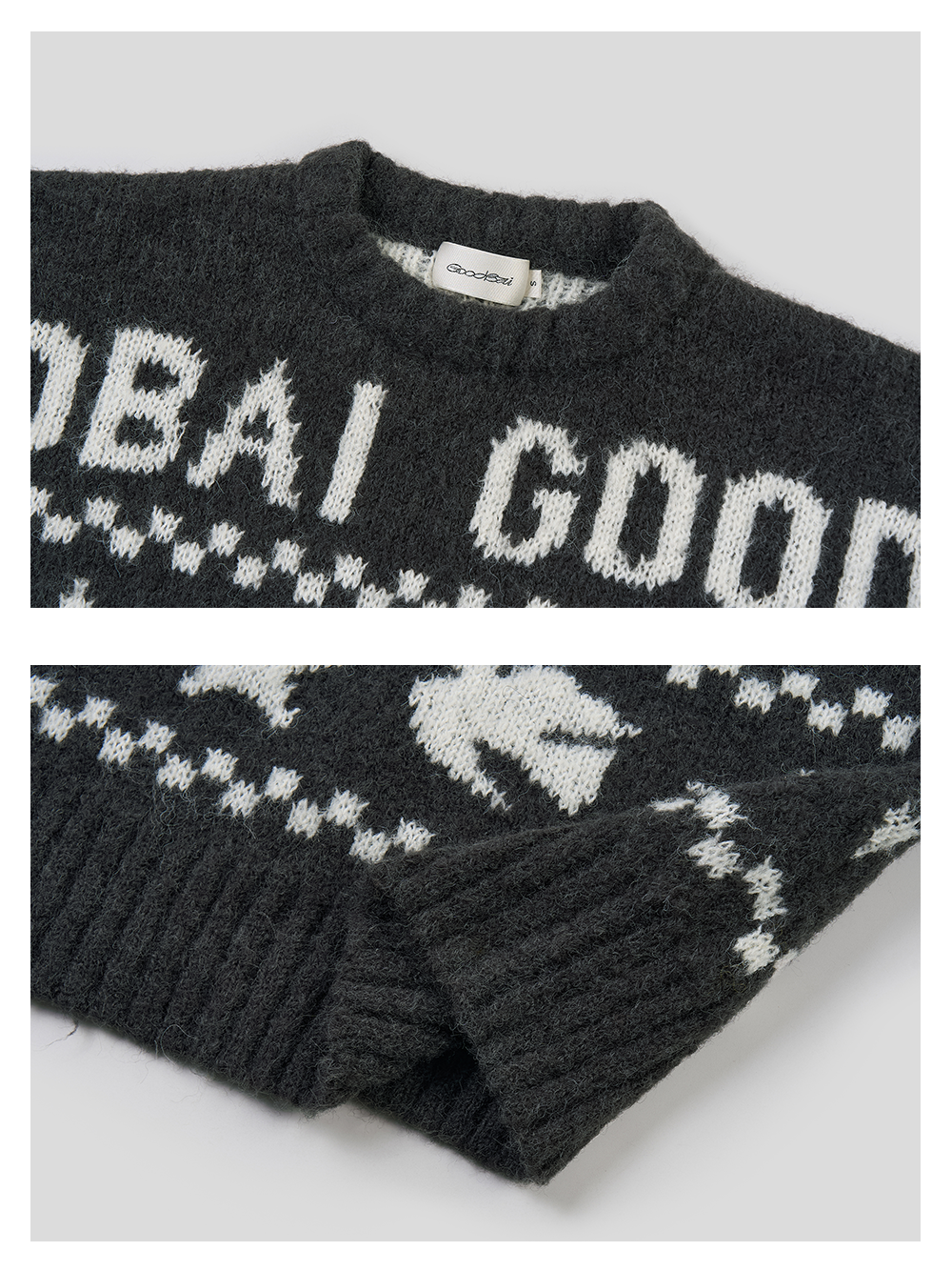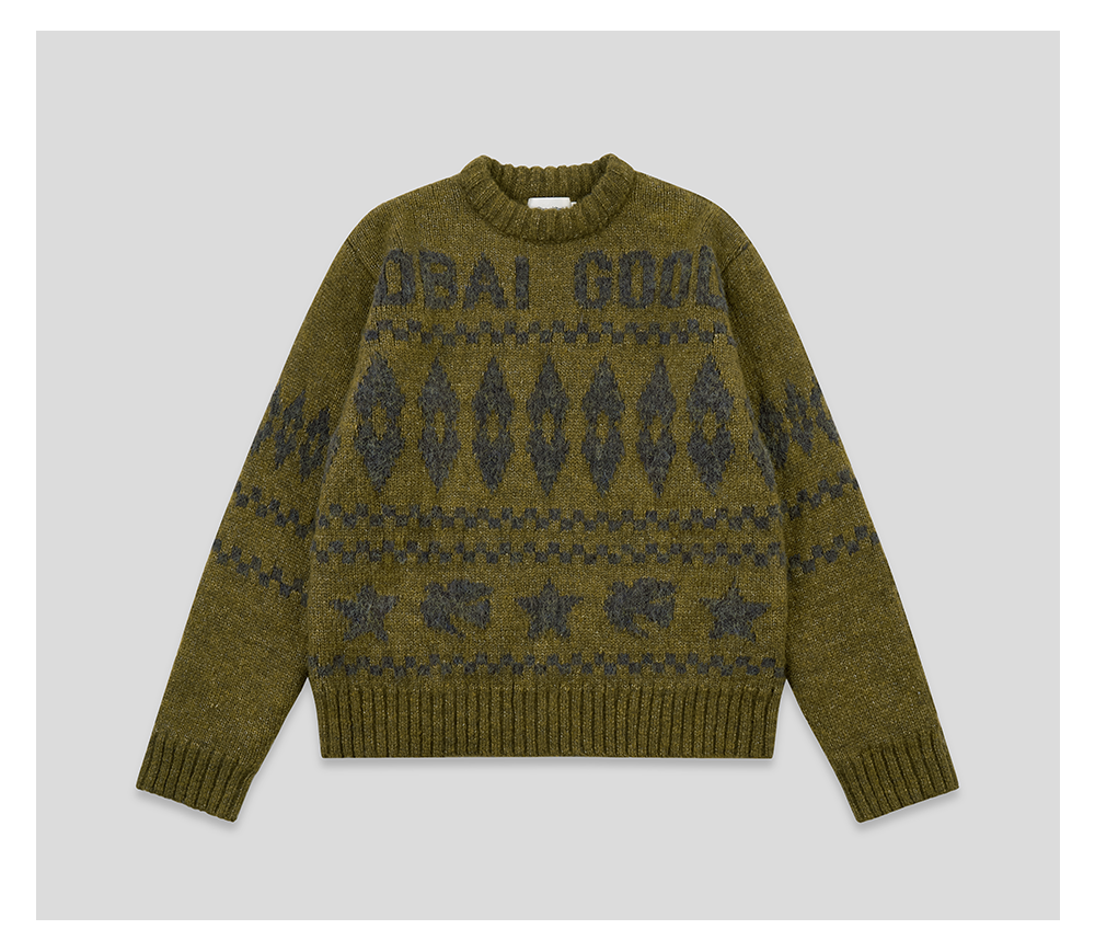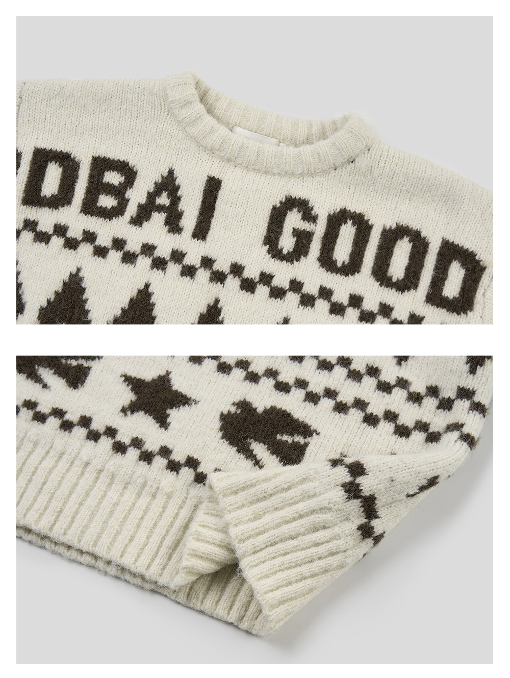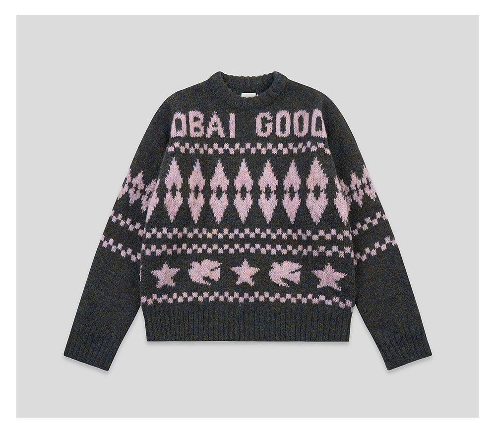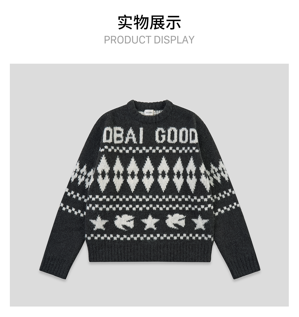 GOODBAI 星星白鸽logo提花撞色提花圆领宽松套头毛衣