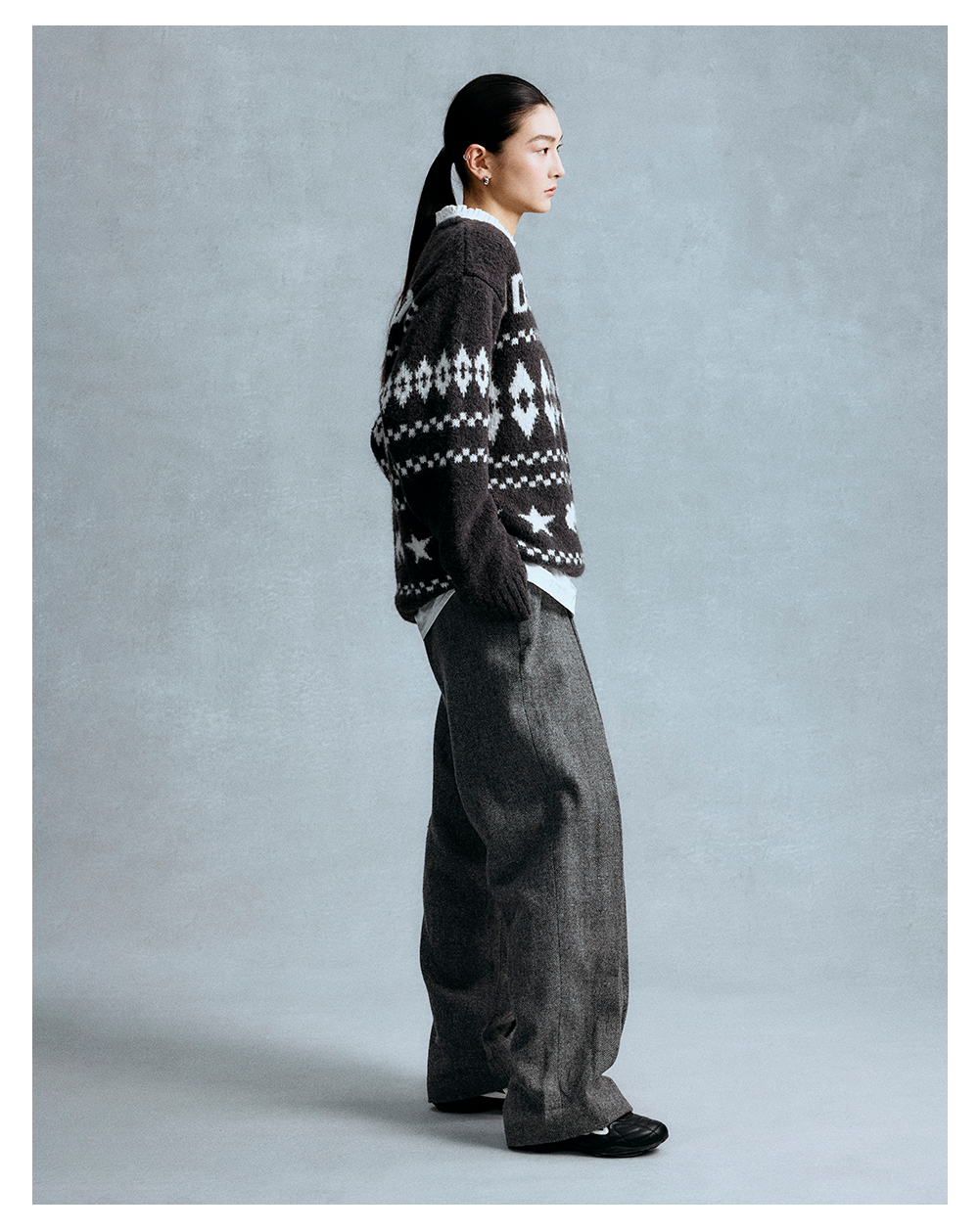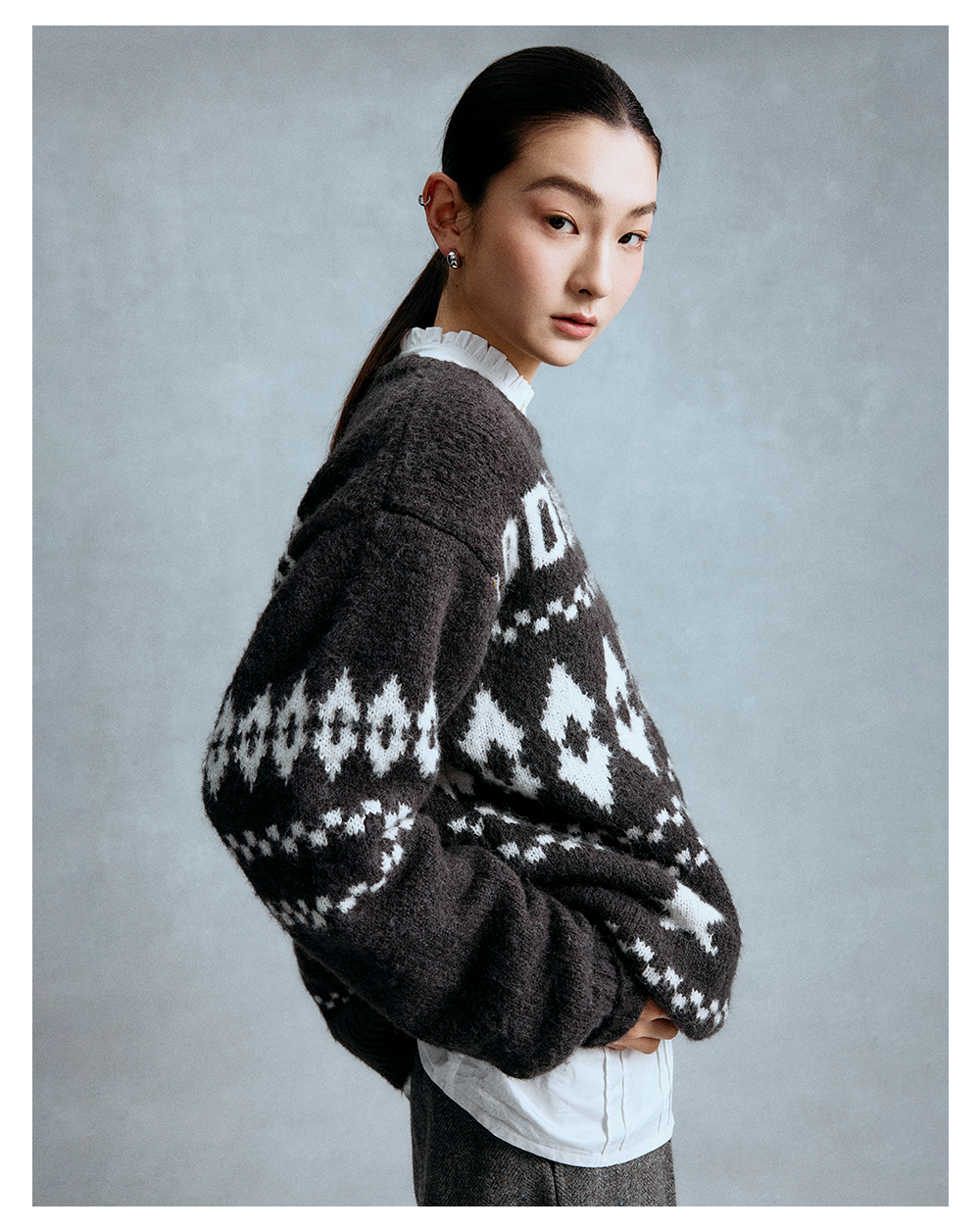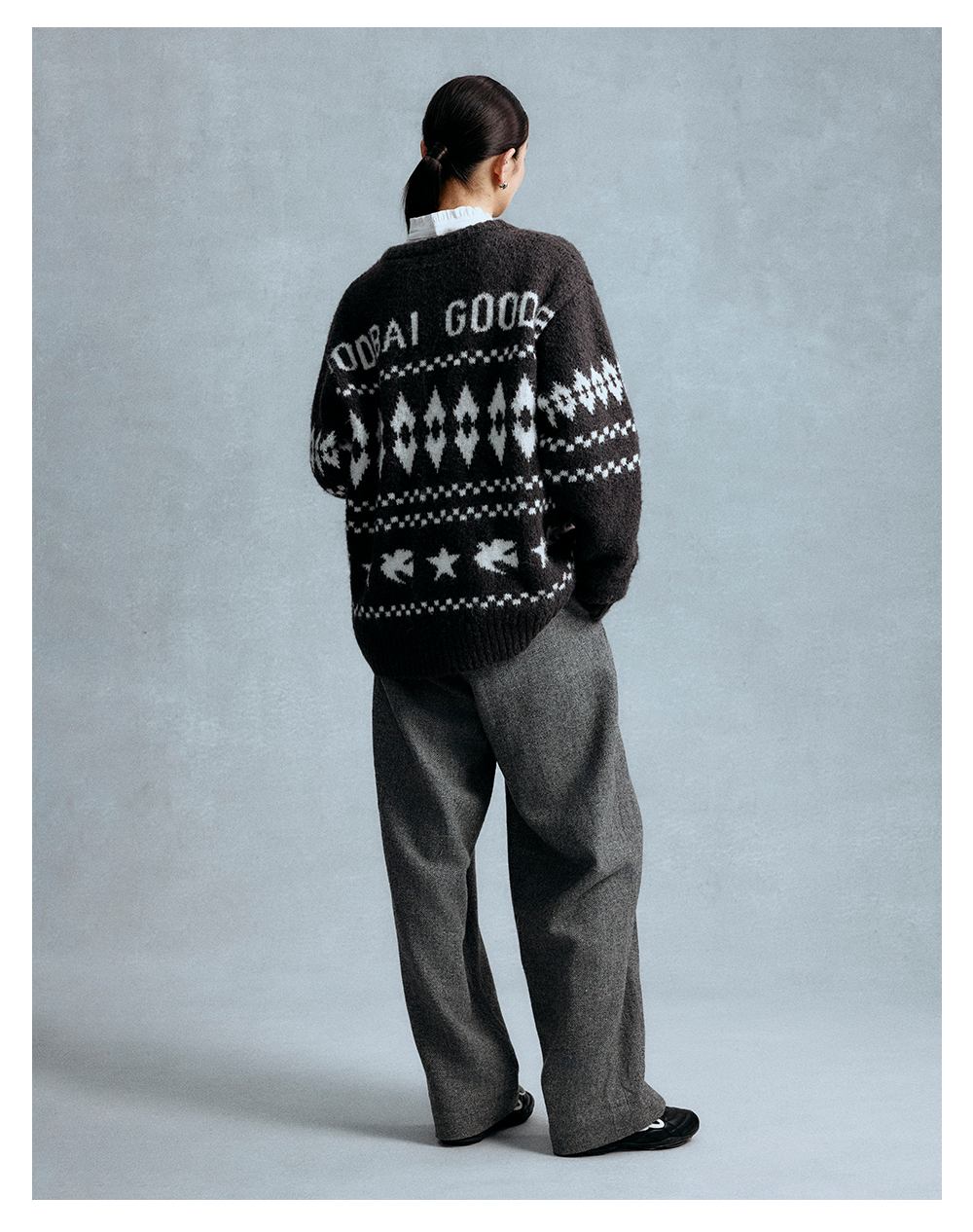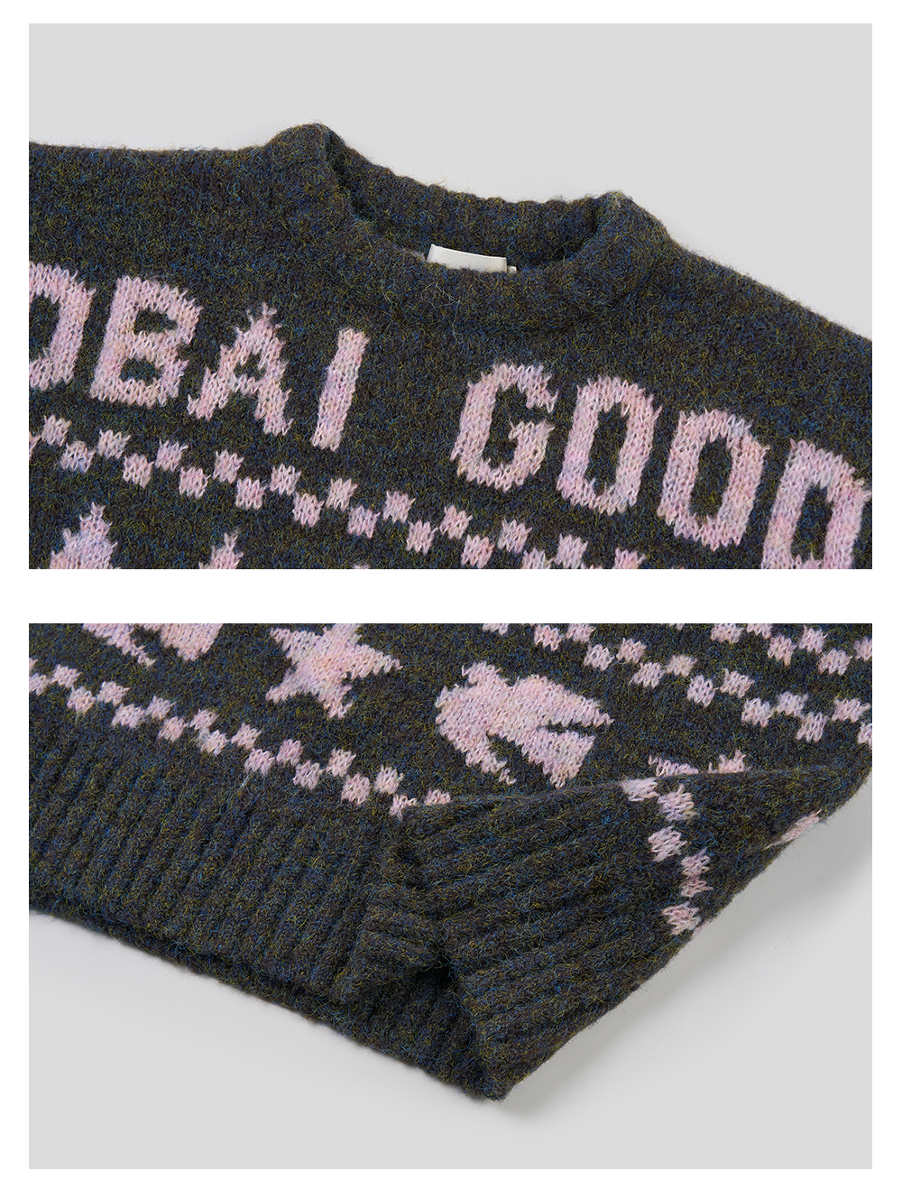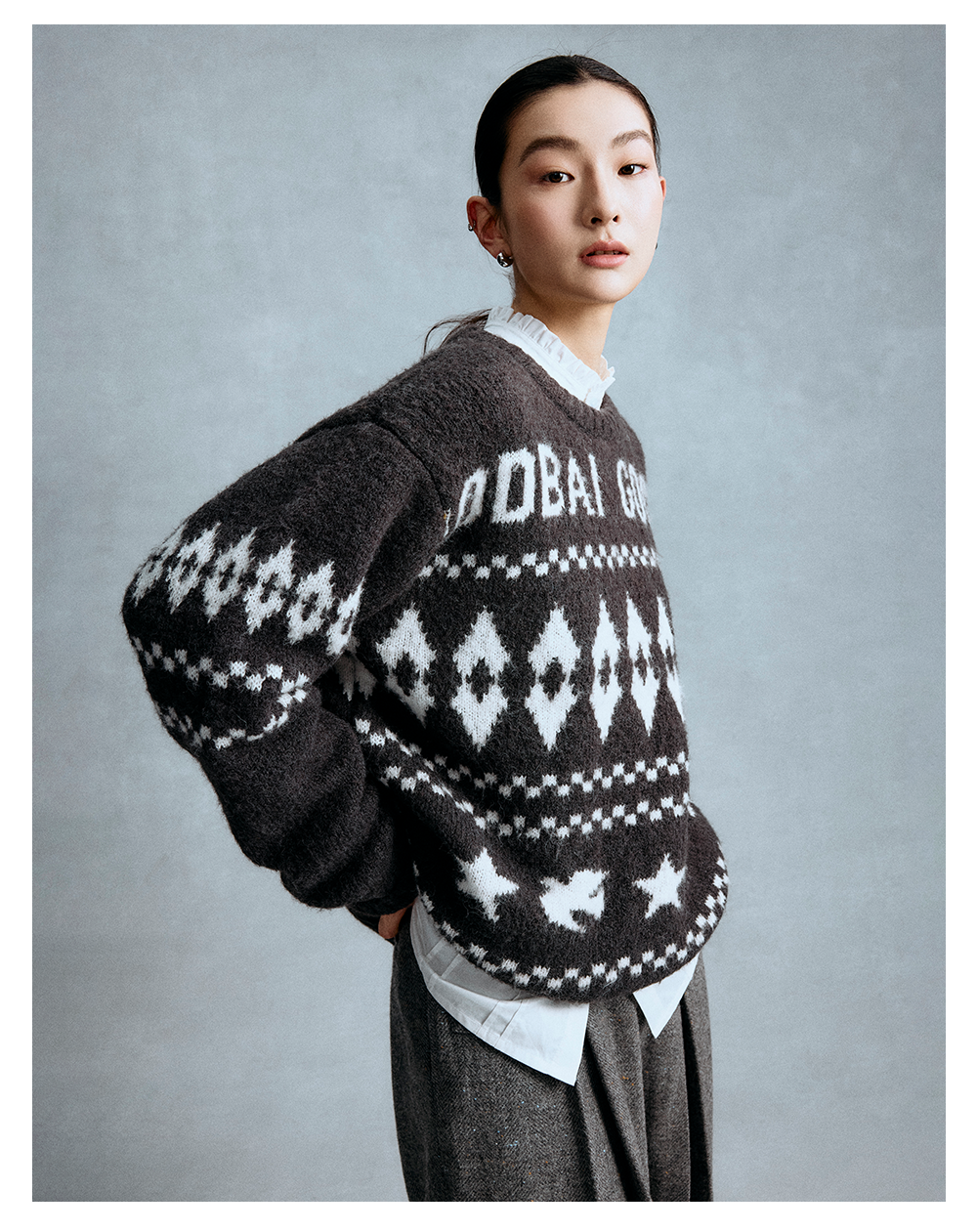 GOODBAI 星星白鸽logo提花撞色提花圆领宽松套头毛衣