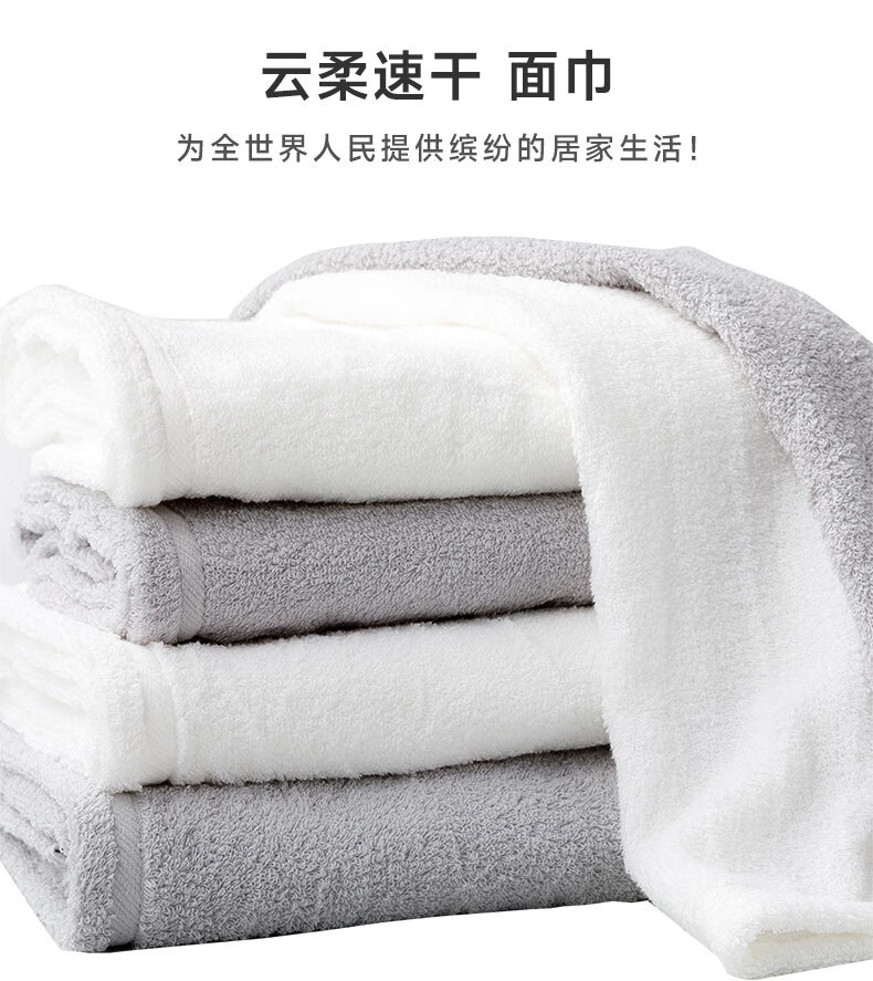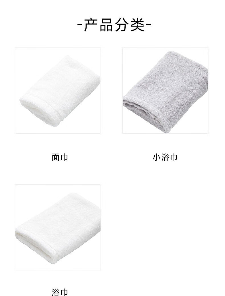 云柔速干系列毛巾 面巾约34x80cm/小浴巾约60x120cm/浴巾约70x140cm 白色/灰色