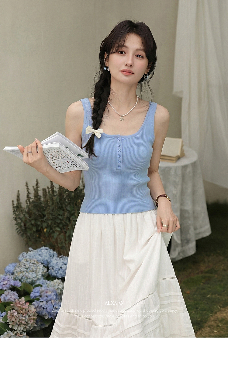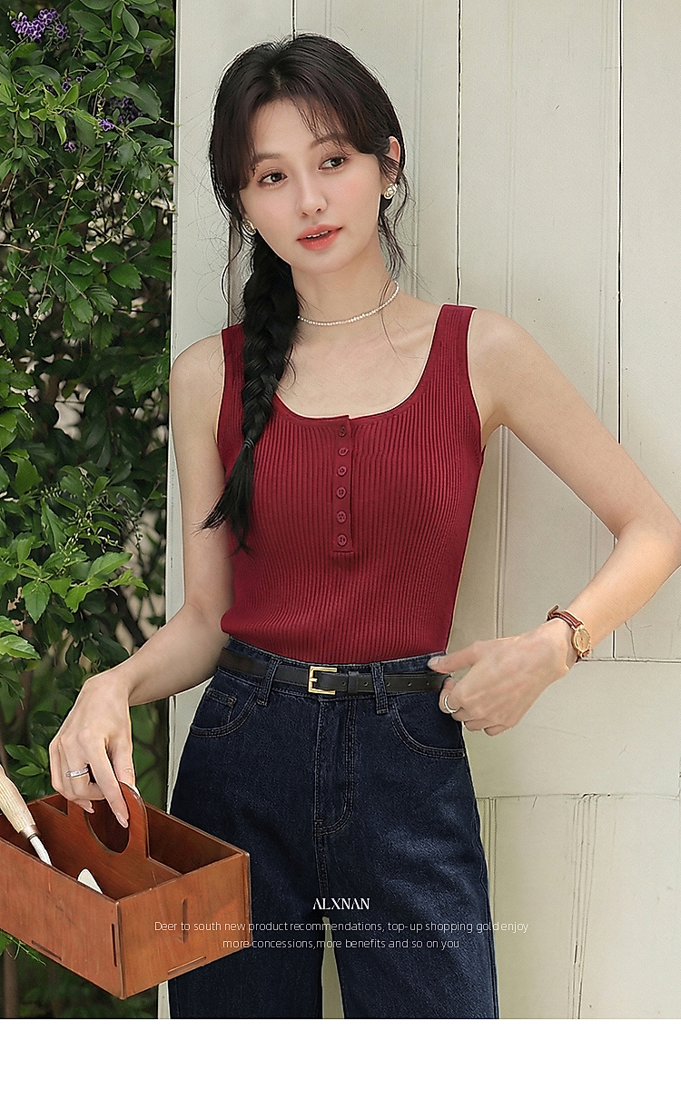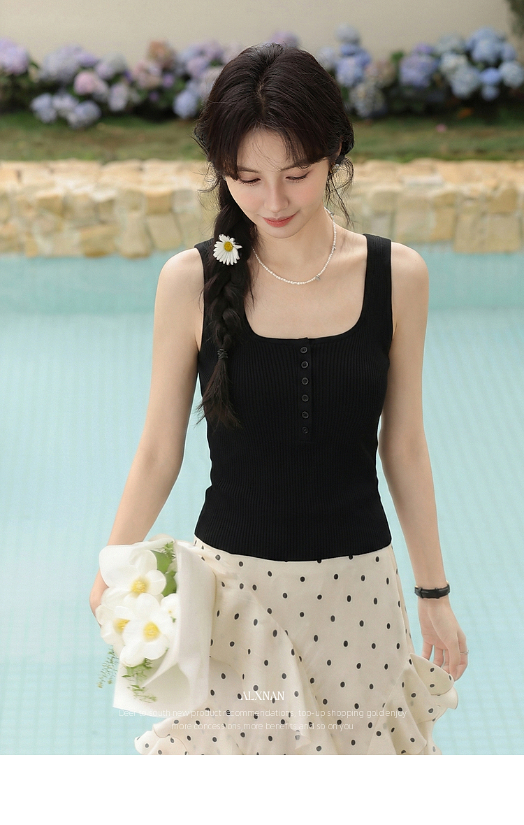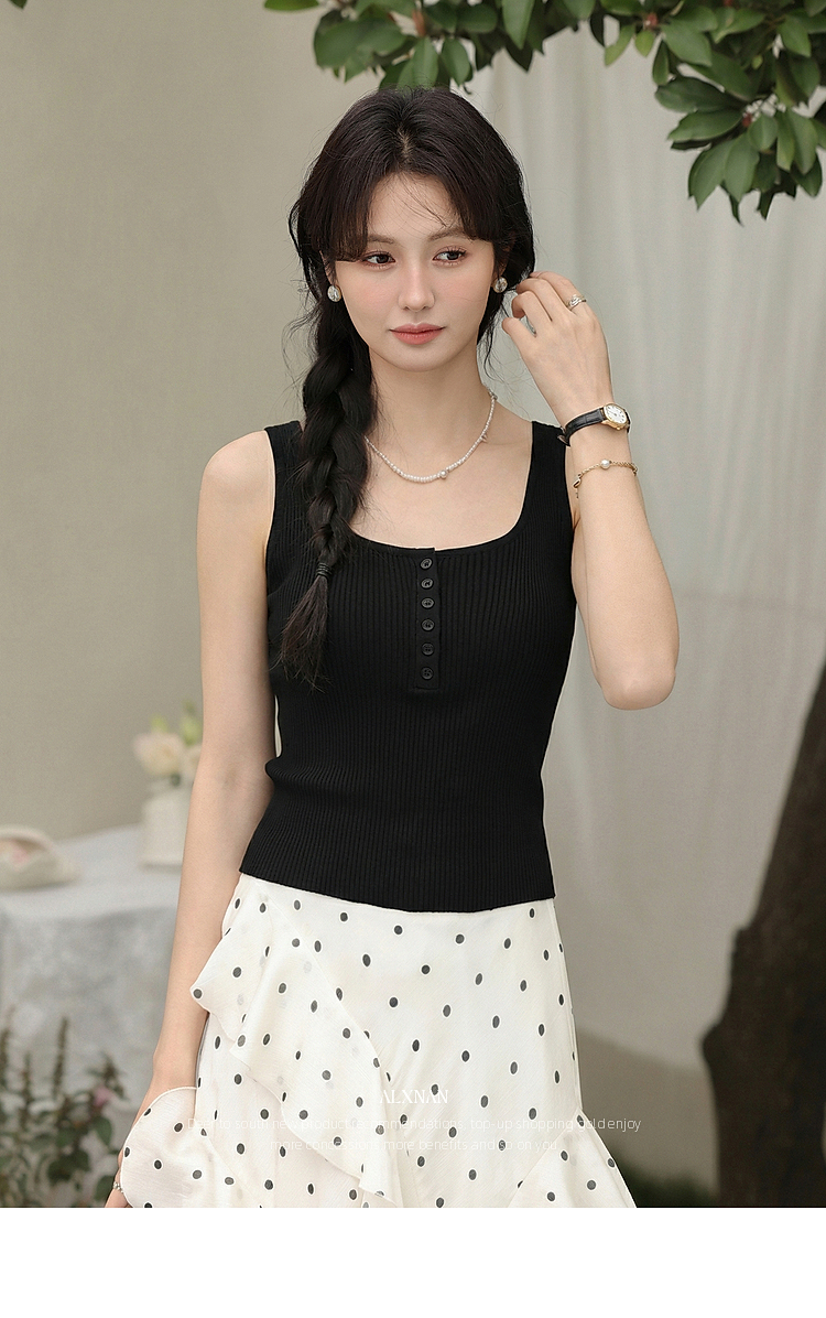 鹿向南「纯白记忆」米白色针织背心吊带春夏款气质显瘦打底上衣女