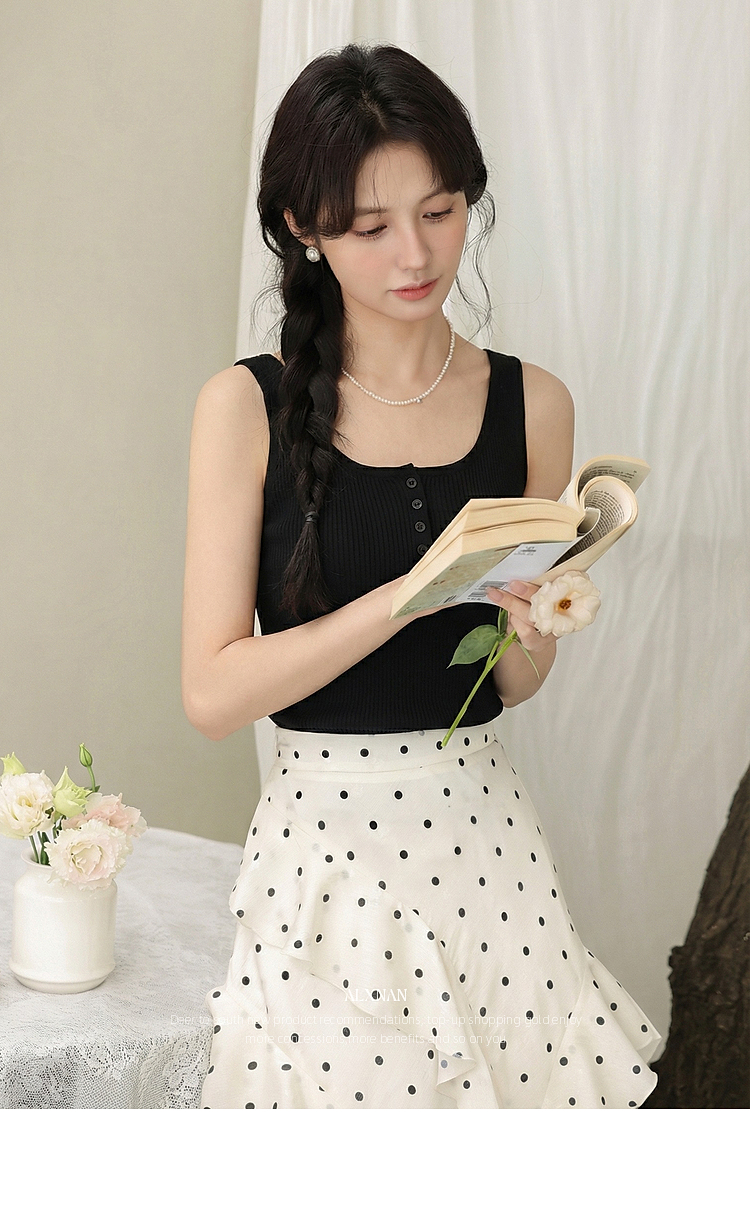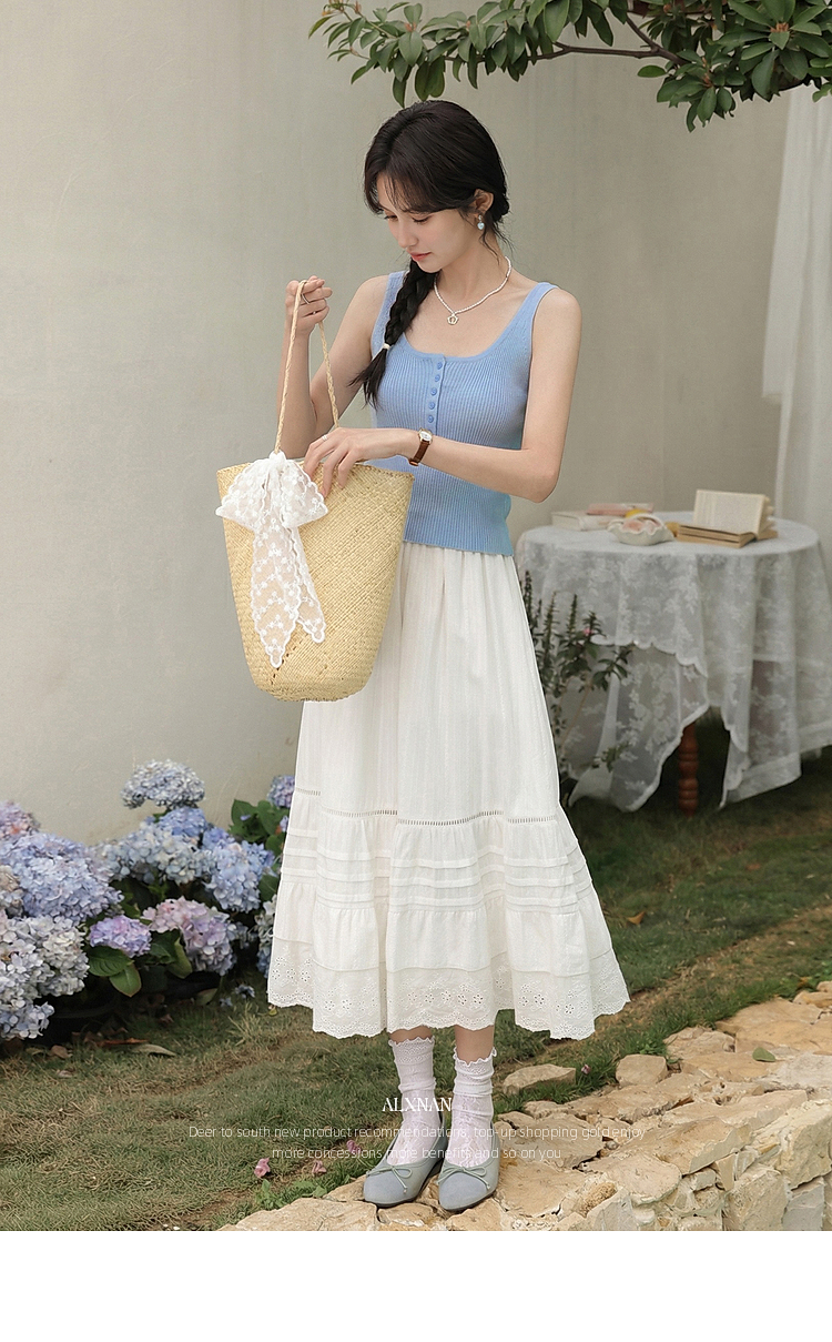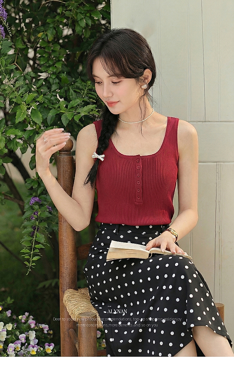 鹿向南「纯白记忆」米白色针织背心吊带春夏款气质显瘦打底上衣女