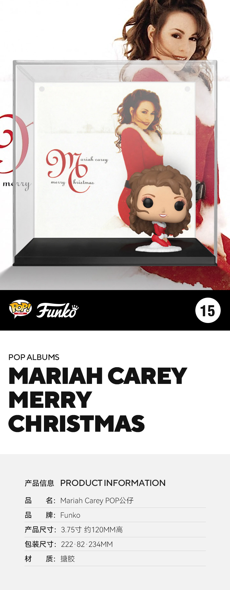 Funko POP! Albums Mariah Carey《Merry Christmas 》专辑系列音乐明星玛丽亚·凯莉《圣诞快乐》公仔手办摆件 57768