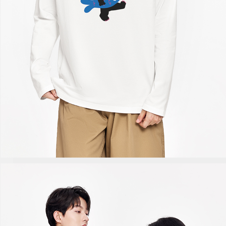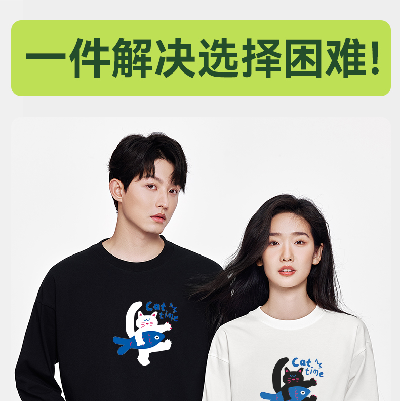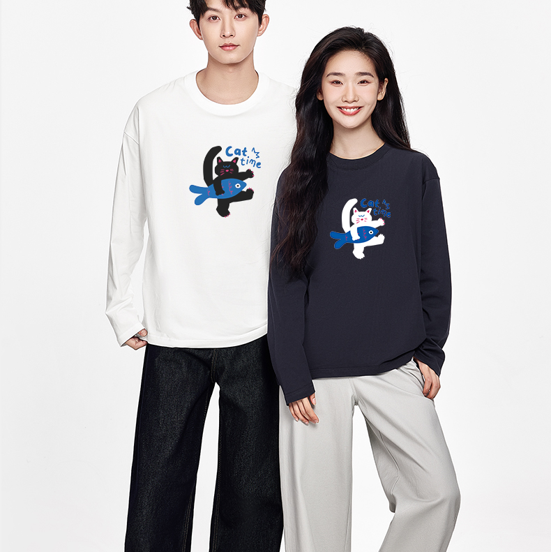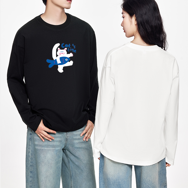 「棉的美学」酷炫字母印花长袖~秋季宽松趣味印花长袖情侣装