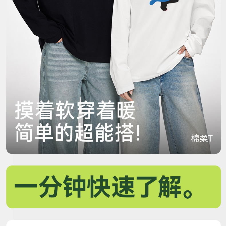 「棉的美学」纯棉长袖t恤~春秋宽松圆领内搭白色口袋打底衫情侣款