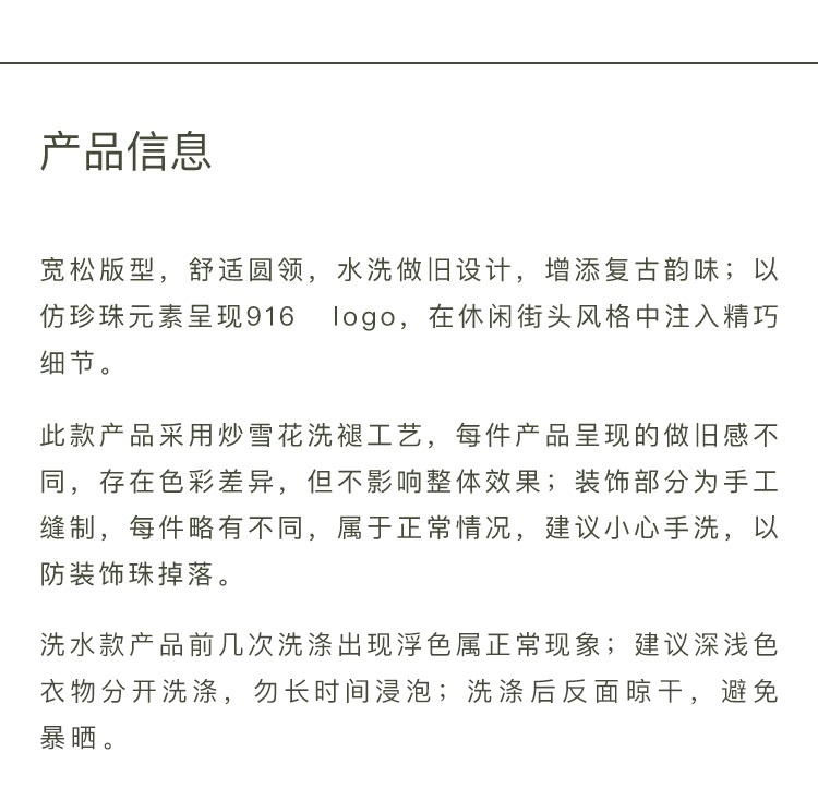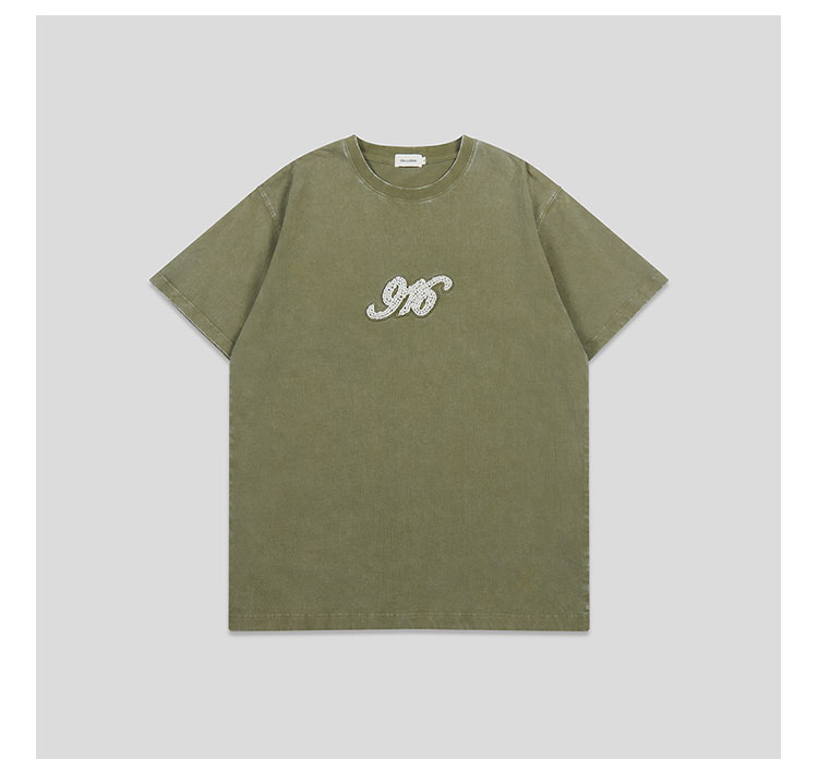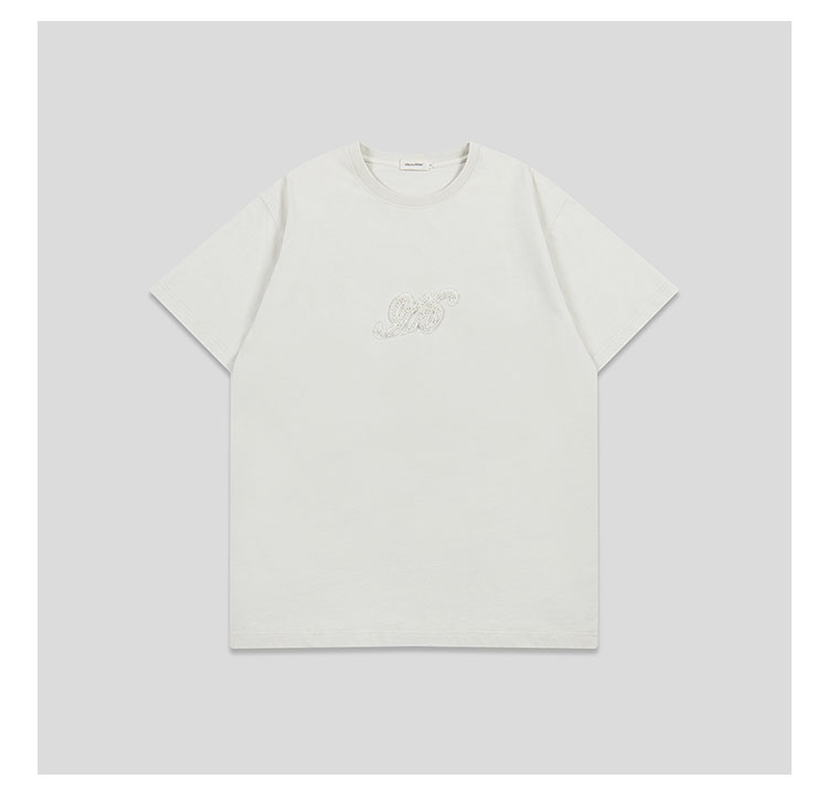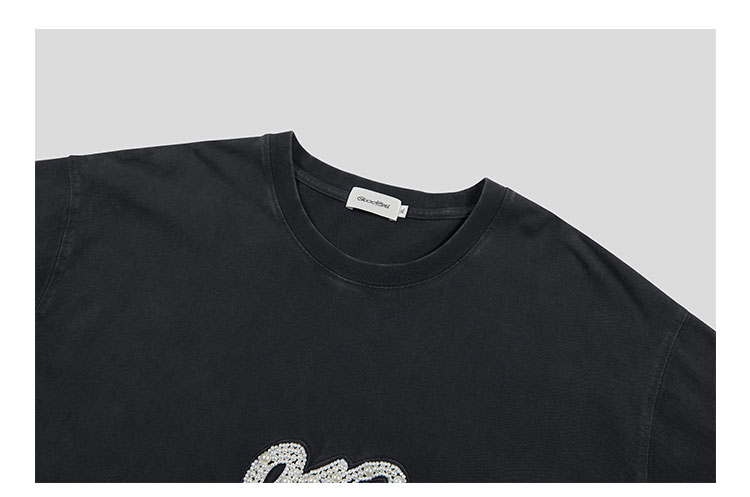GOODBAI 916 logo仿珍珠绣花水洗圆领短袖T恤