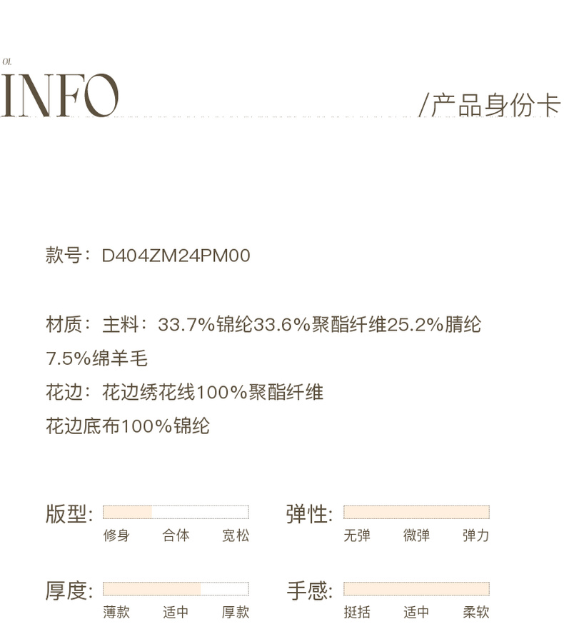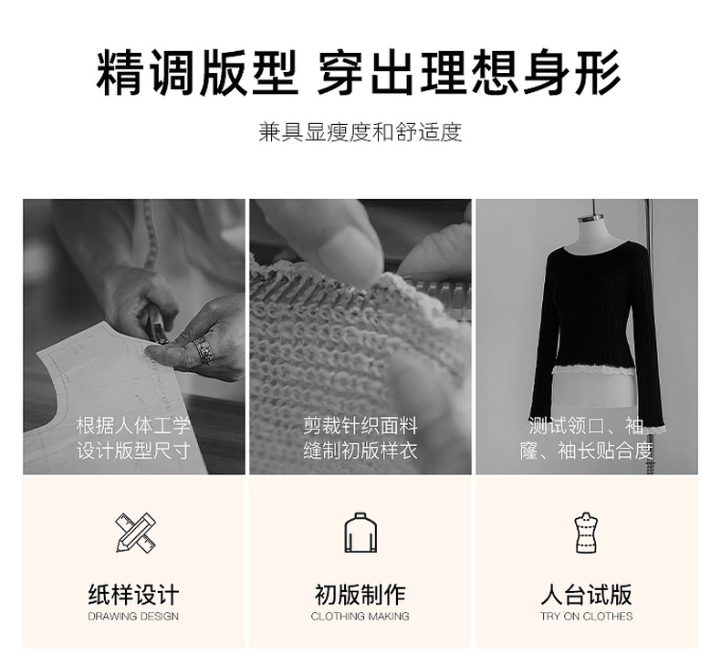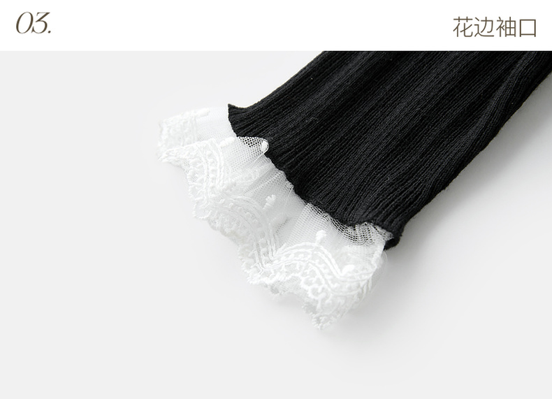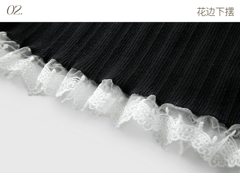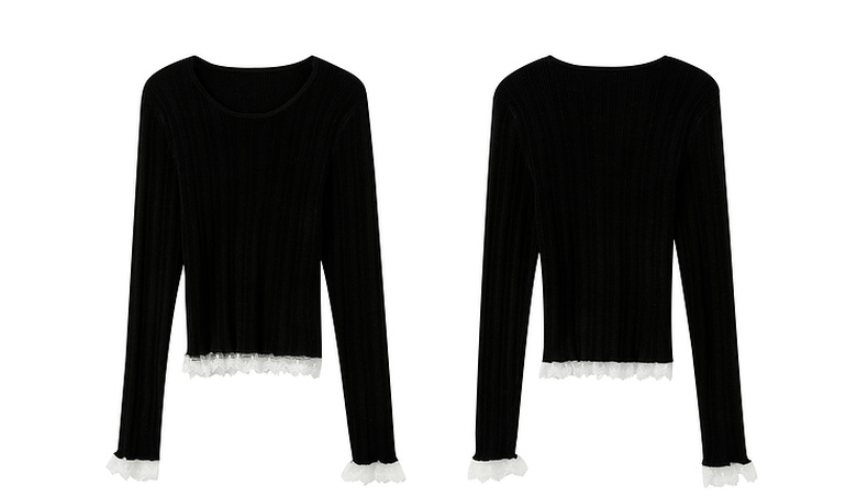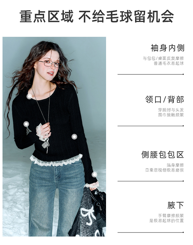 三彩2025冬季新款修身圆领针织衫花边打底衫长袖套头衫M