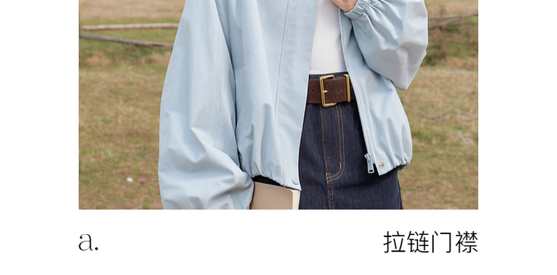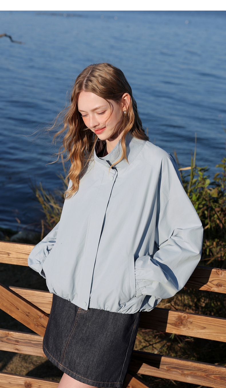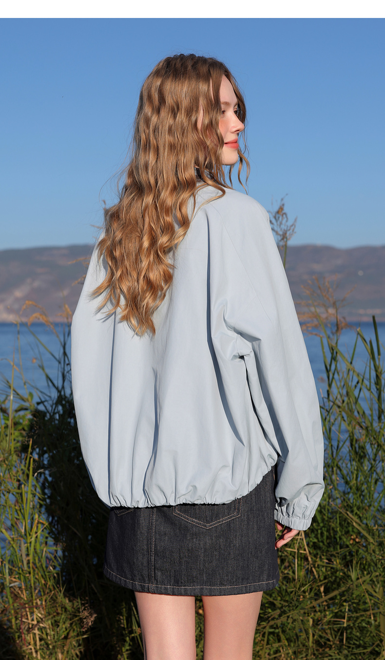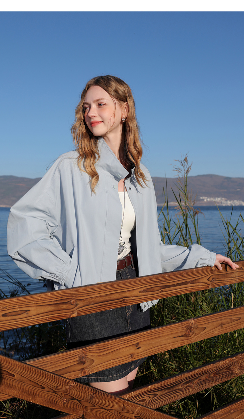 三彩2026春季新款格纹拼接立领长袖外套夹克拉链开衫宽松休闲M