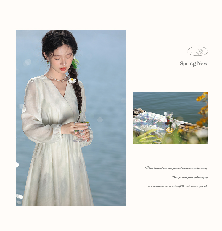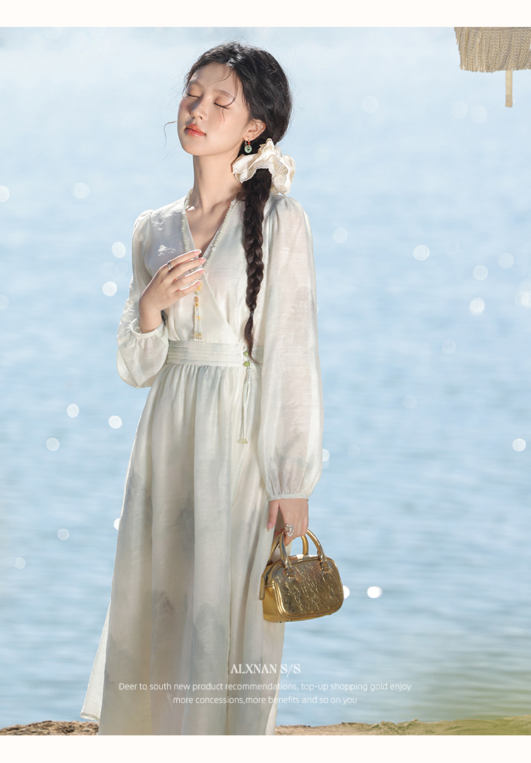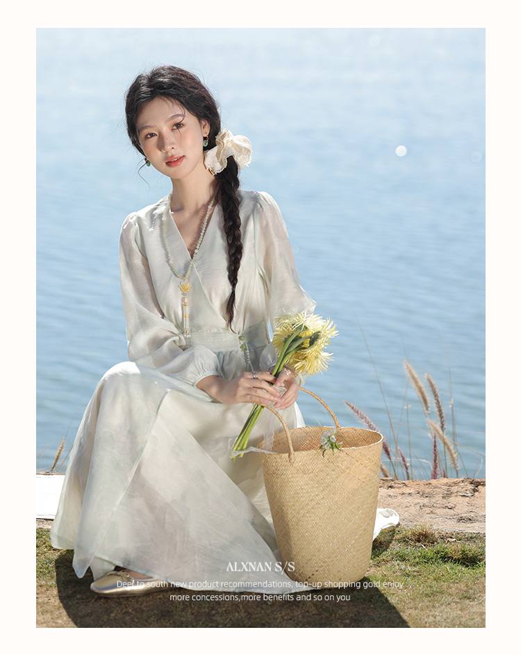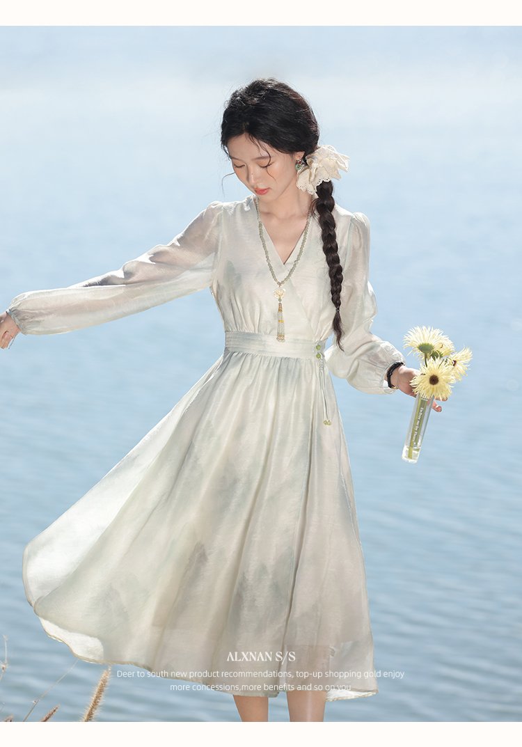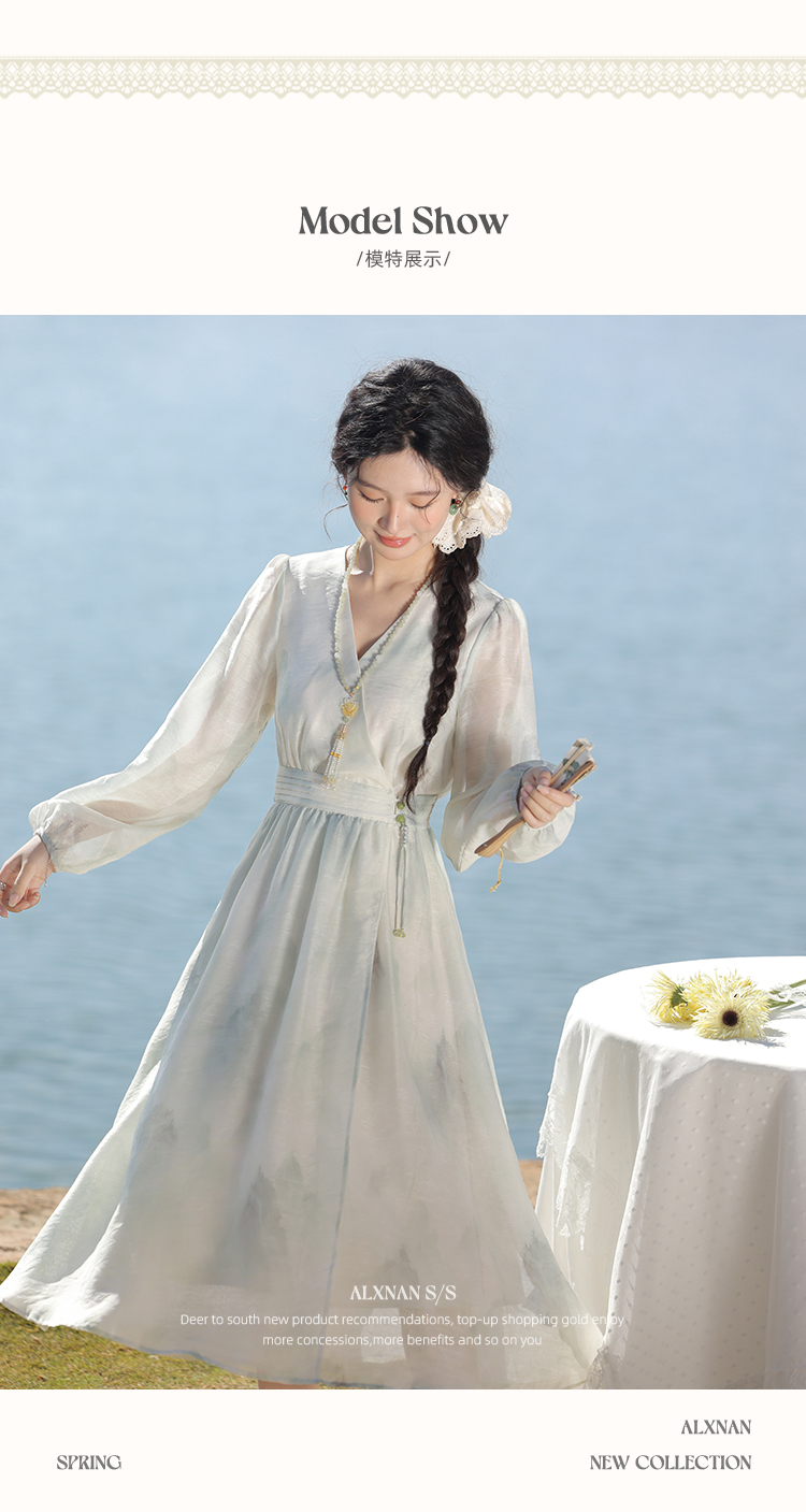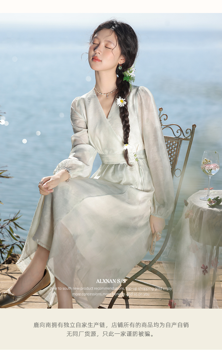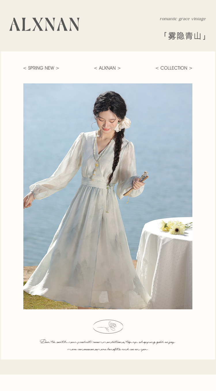 【65折秒杀】鹿向南「雾隐青山」气质V领连衣裙L52962
