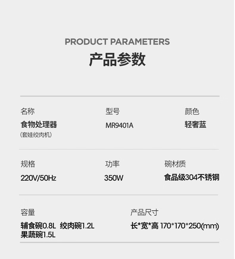 摩飞电器(Morphyrichards)绞肉机 家用绞馅机 碎肉机 电动多功能辅食料理机打蒜搅拌 不锈钢 套娃设计 MR9401A