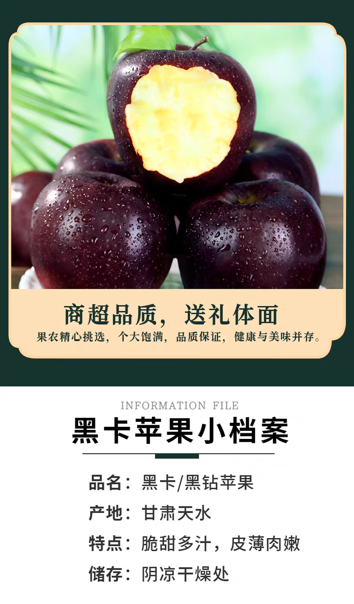 【CHUAN】甘肃黑卡苹果【礼盒装】净重5斤【12枚】【单果80mm】顺丰快递