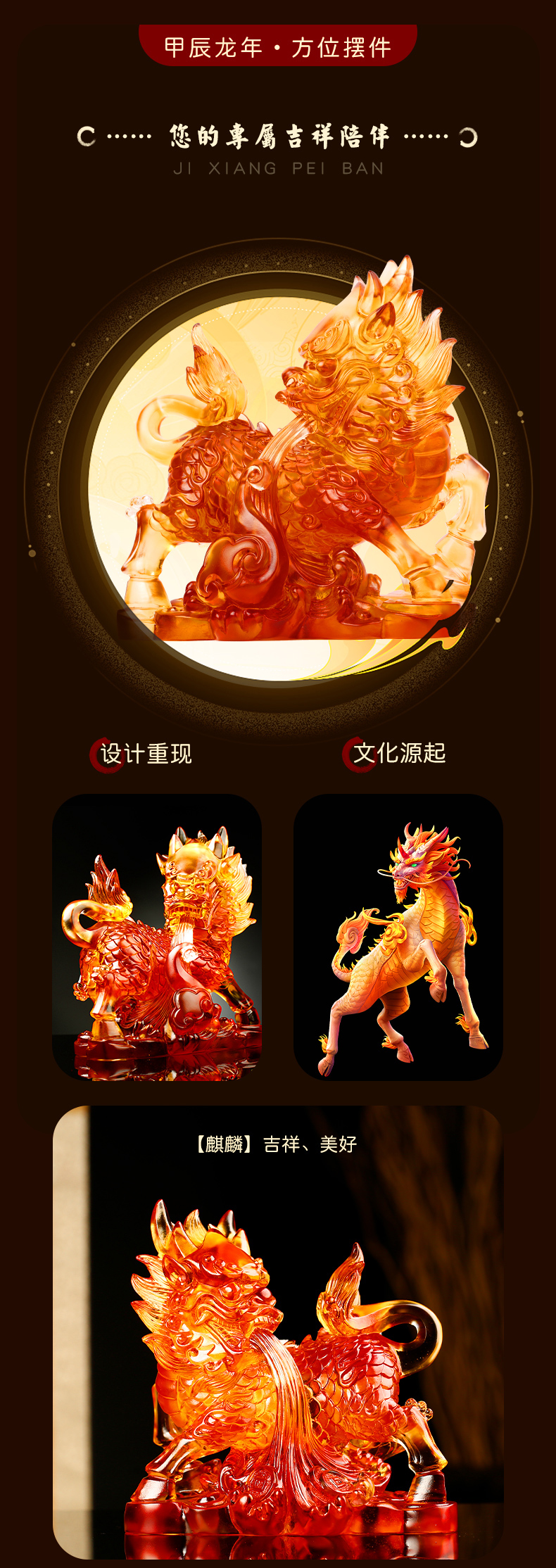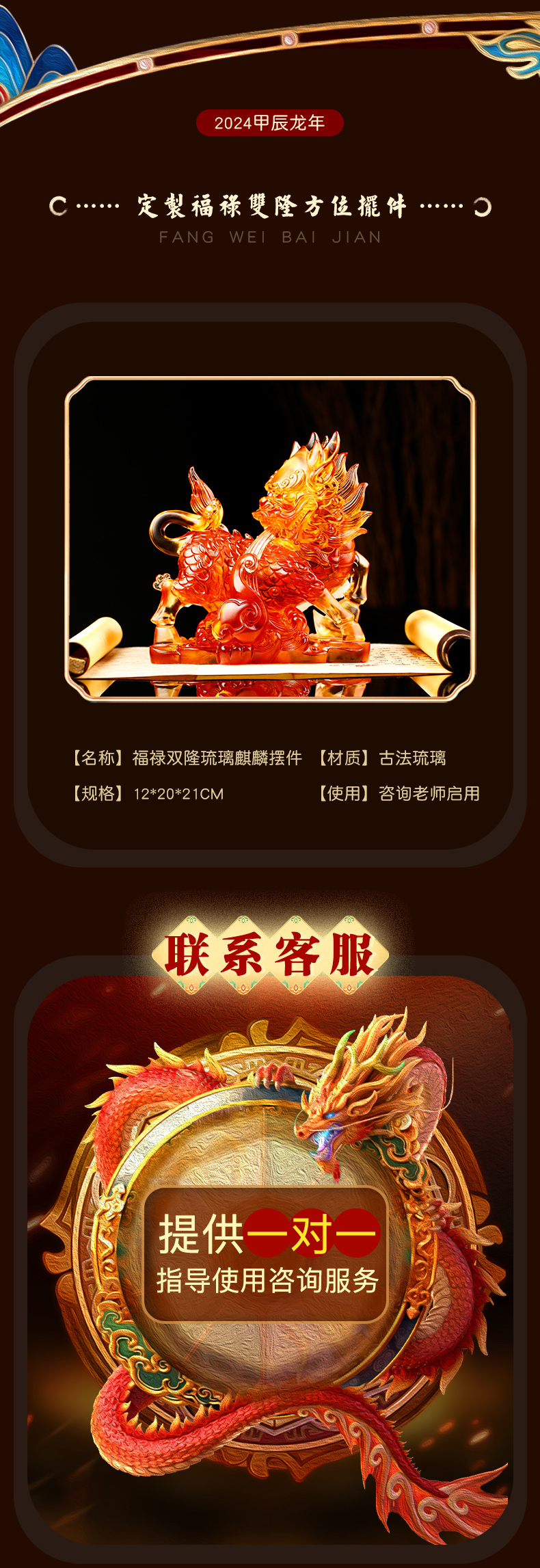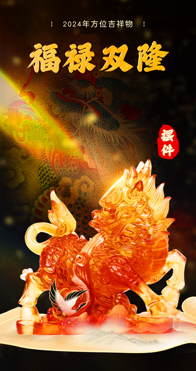 慈元阁2024方位吉祥物福禄双隆麒麟摆件家居客厅装饰办公室公司高端摆设