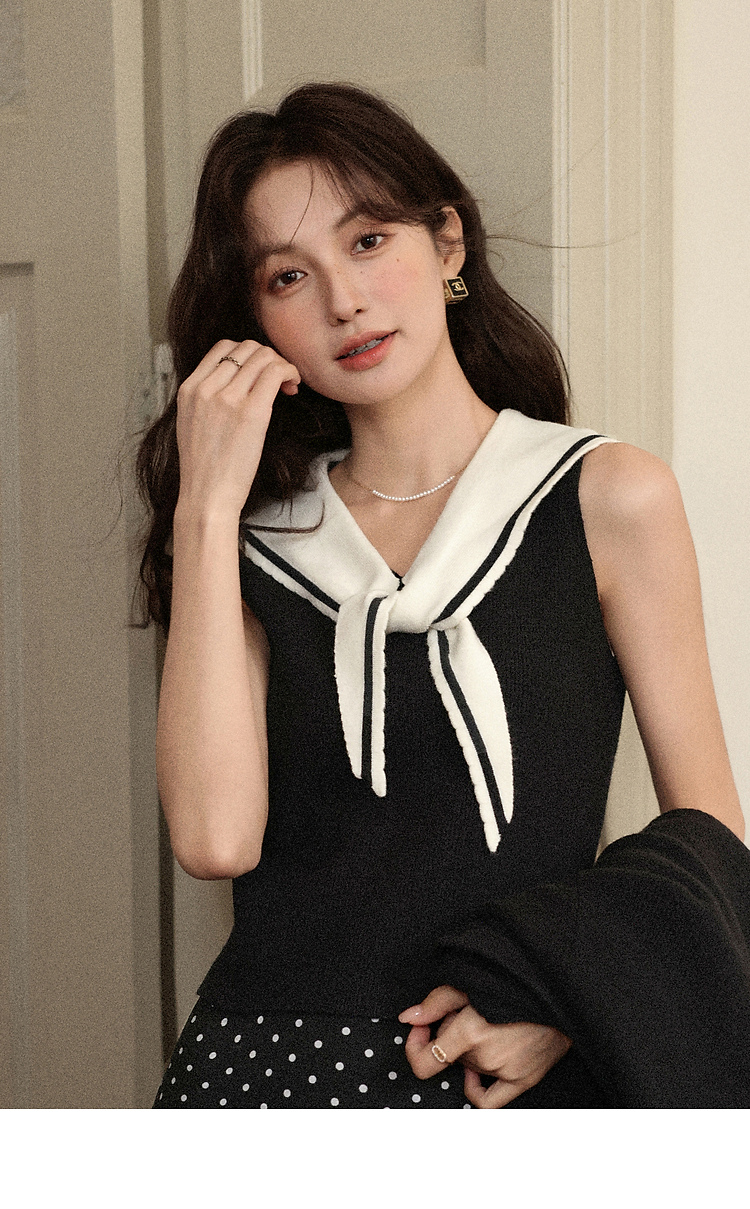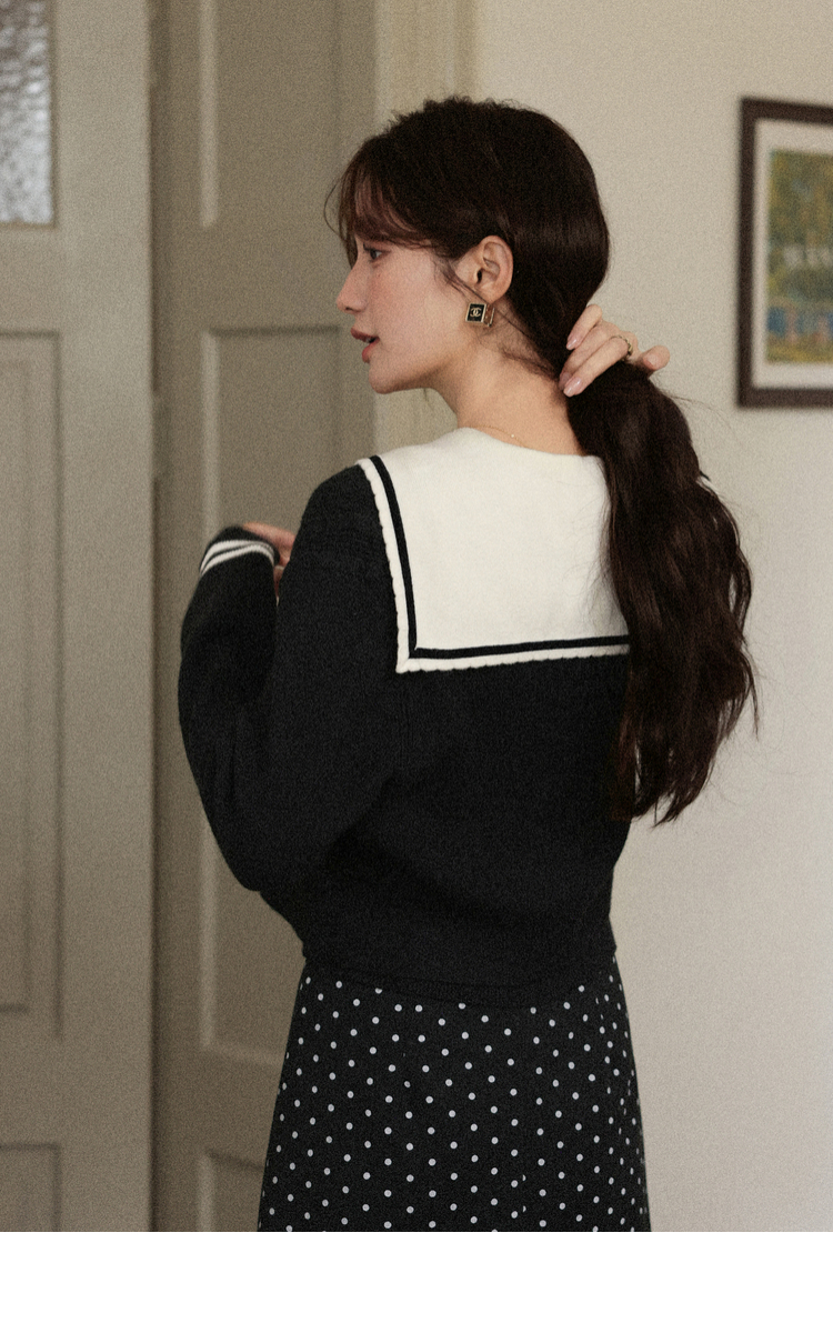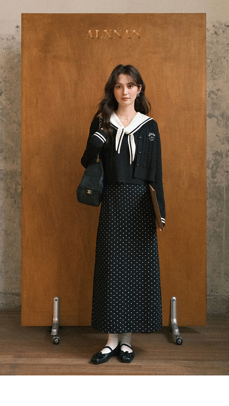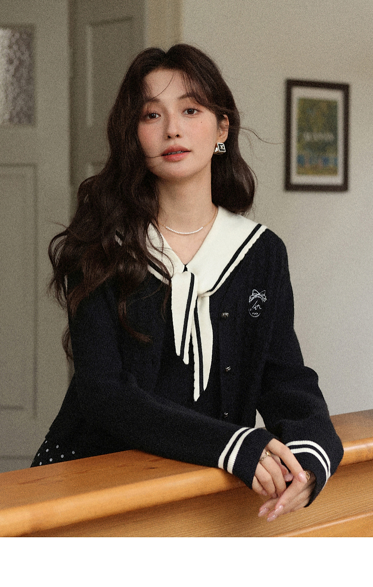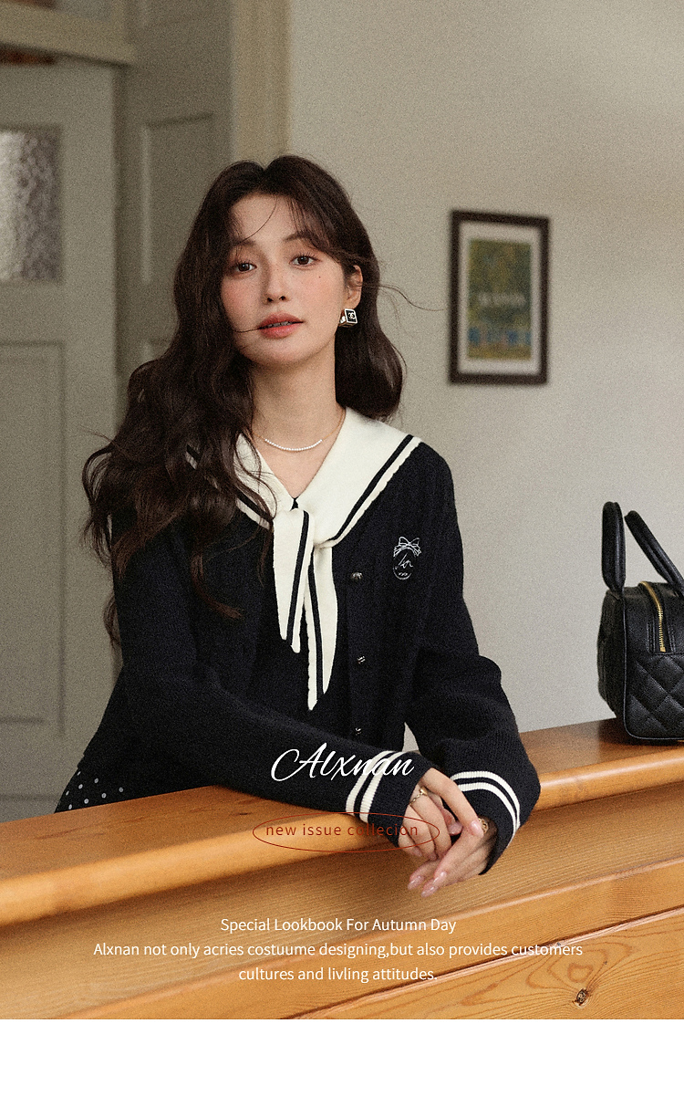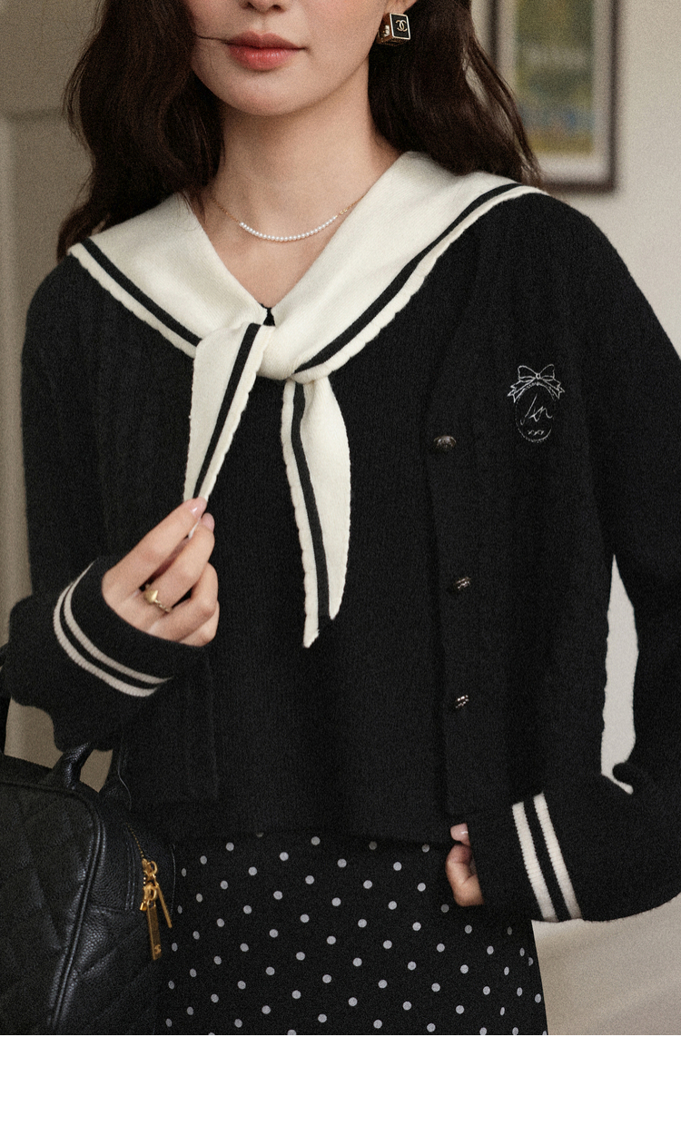 鹿向南「普拉多艺术展」学院风黑色短款长袖针织衫女初秋开衫上衣L57517-L57518