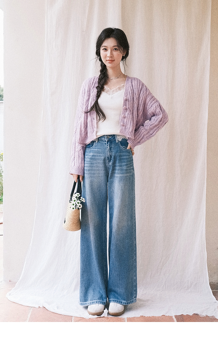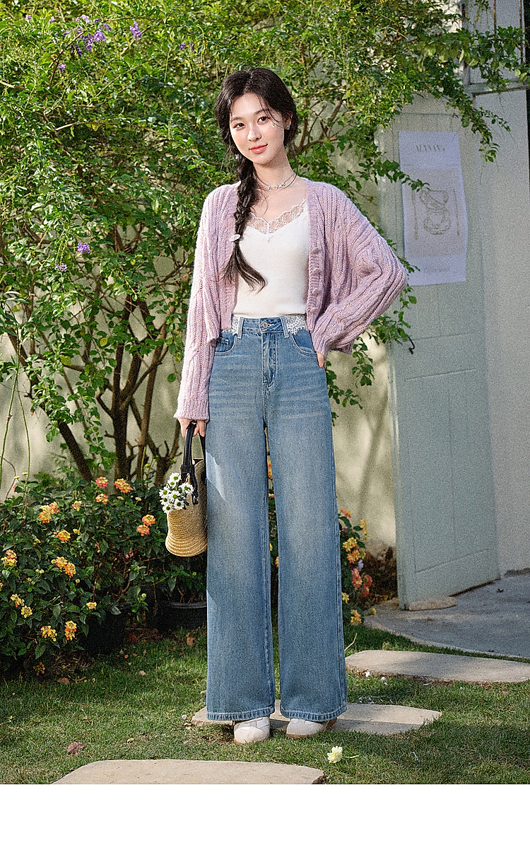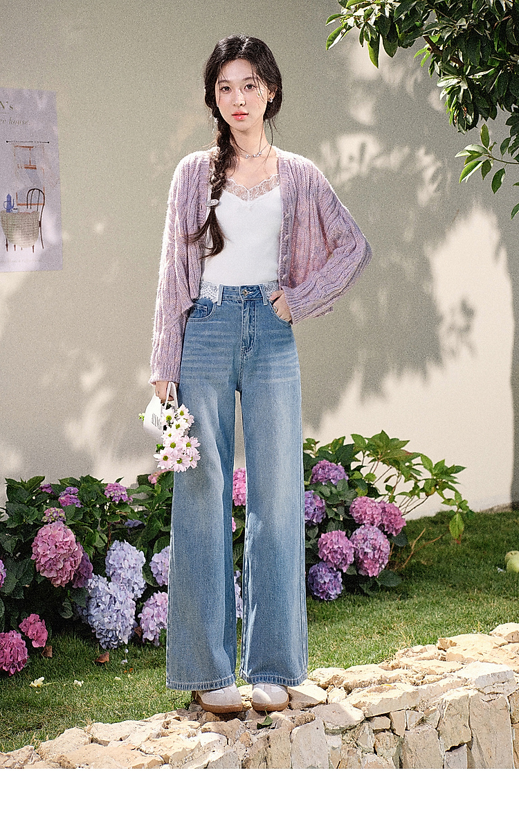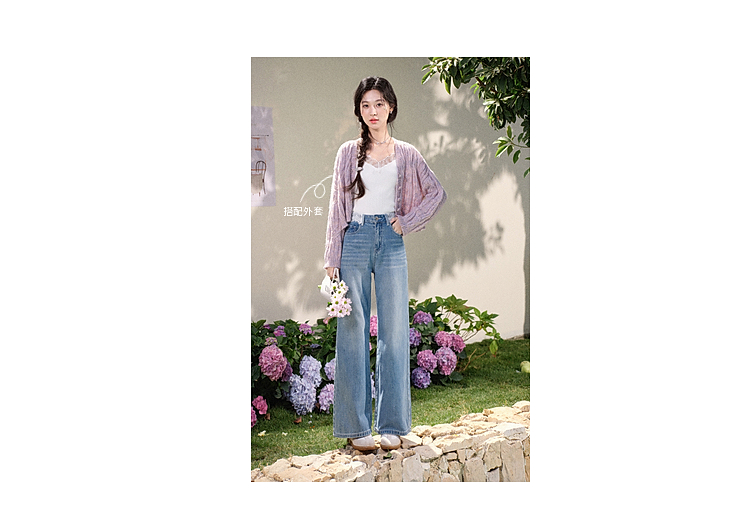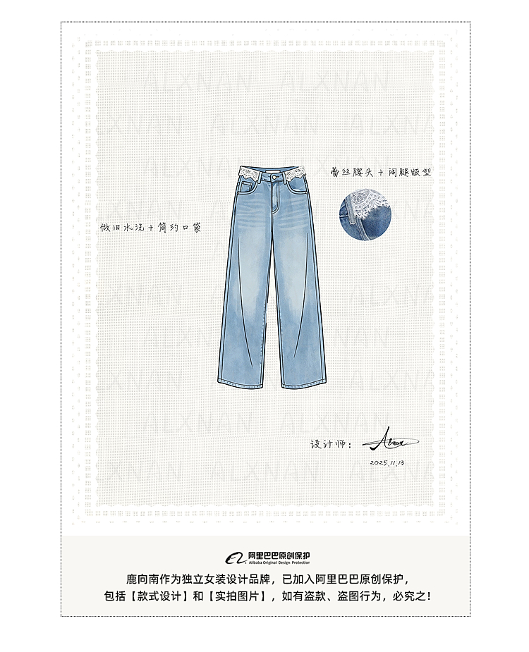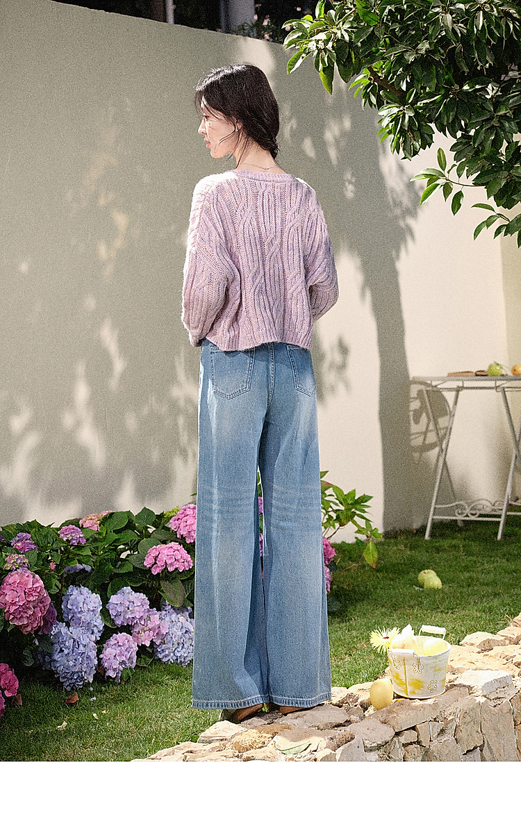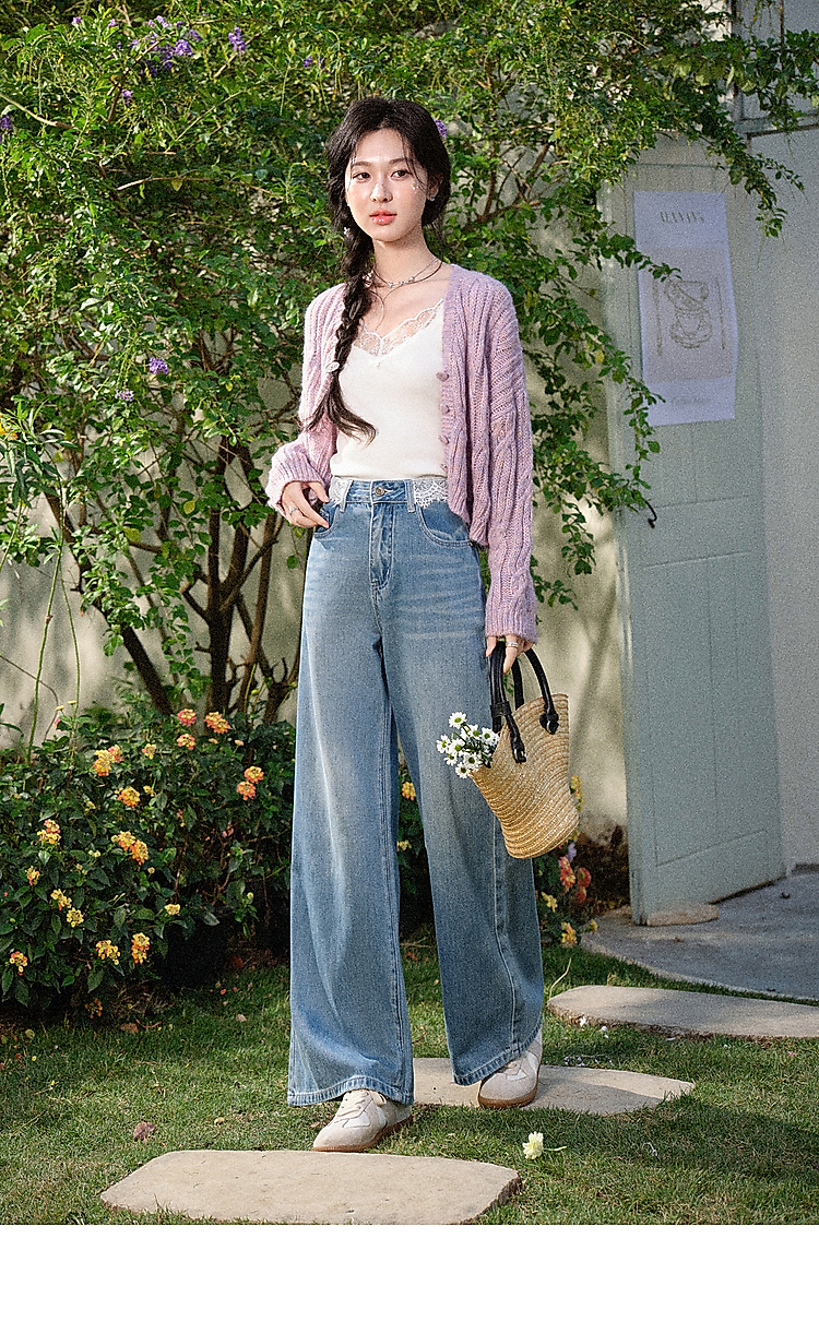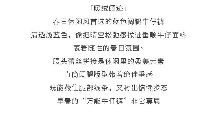 鹿向南「暖绒阔迹」蓝色直筒牛仔裤女春季宽松显瘦垂感阔腿长裤