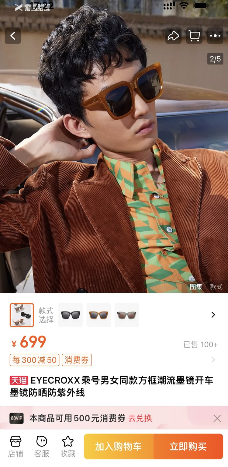 推荐商品一:Eyecroxx乘号潮流方框加宽设计墨镜EX22101A