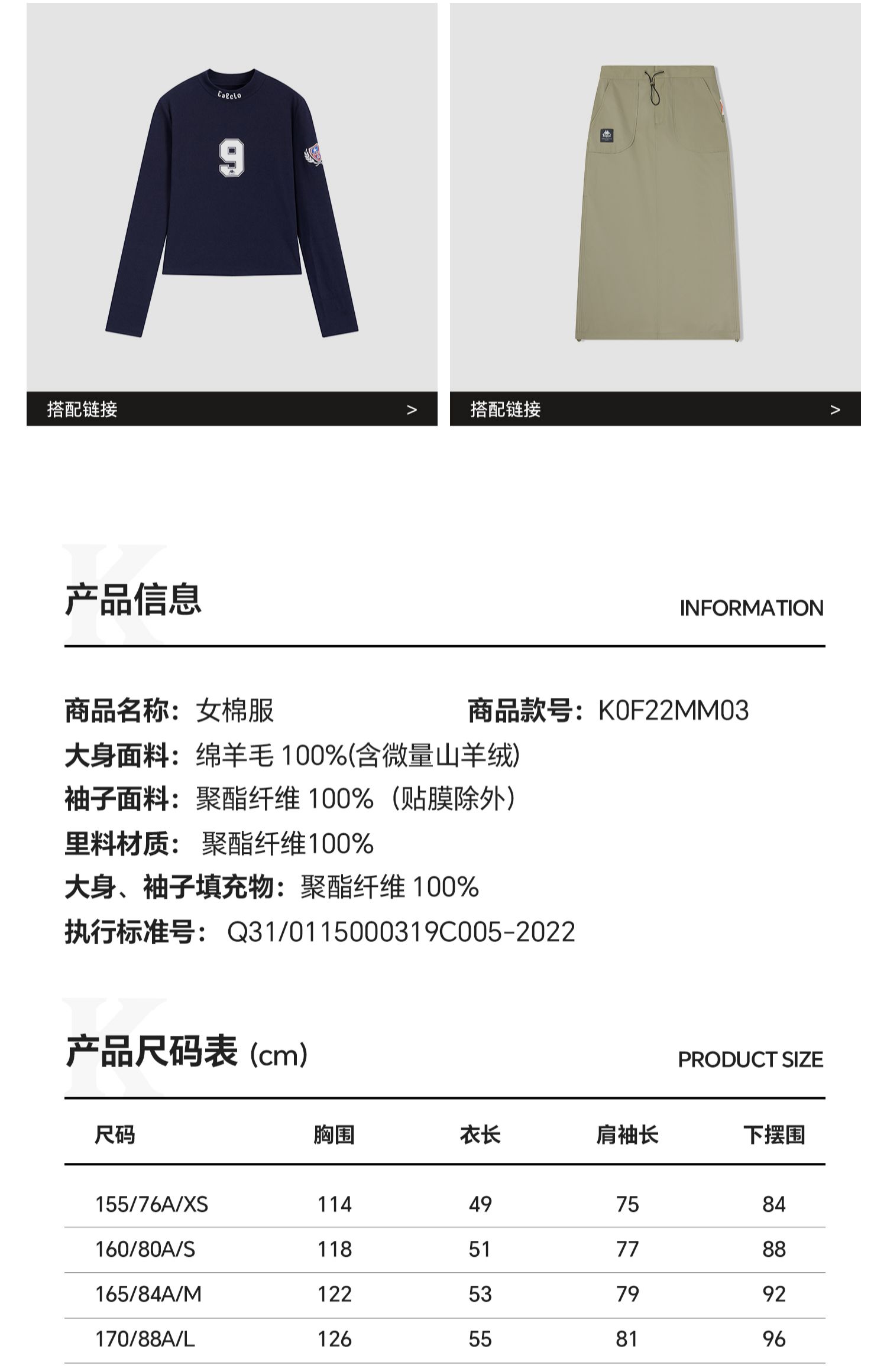 Kappa卡帕背靠背新款秋冬运动棉服女款复古休闲上衣保暖夹克外套K0F22MM03