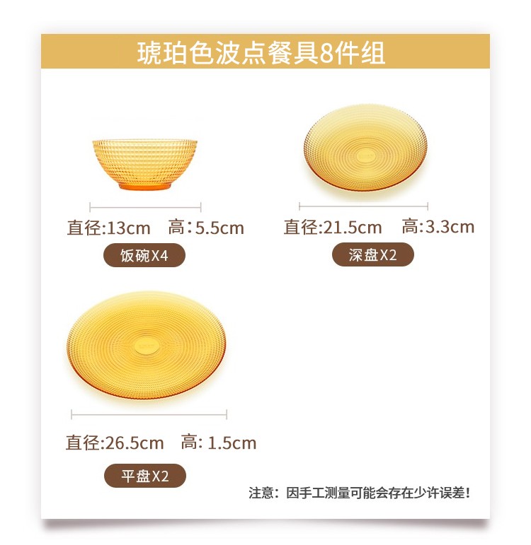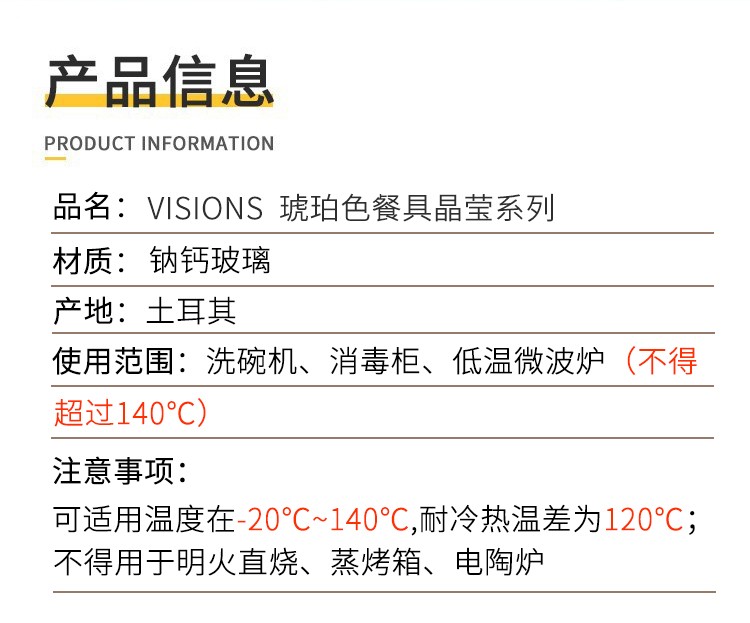 康宁 VISIONS 琥珀色餐具8件组A 4个小碗2个深盘2个浅盘 餐具套装便捷高颜值简约土耳其套装 VS-AMR8A/KZ