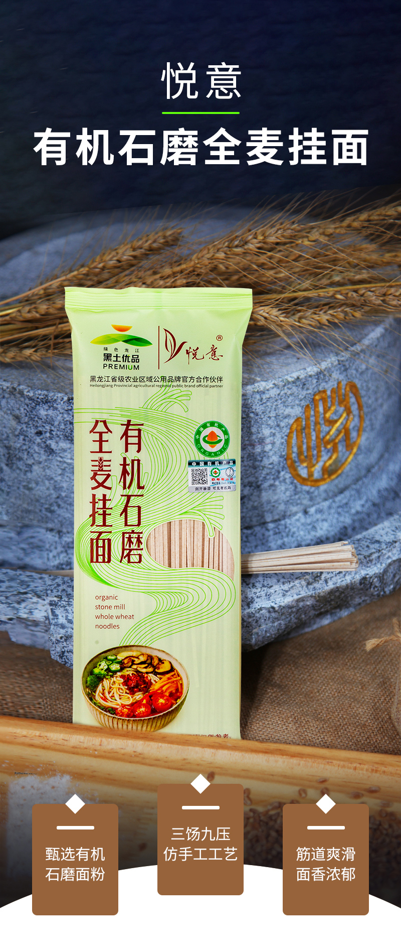 名称:有机石磨小麦挂面|全麦挂面|黑麦挂面