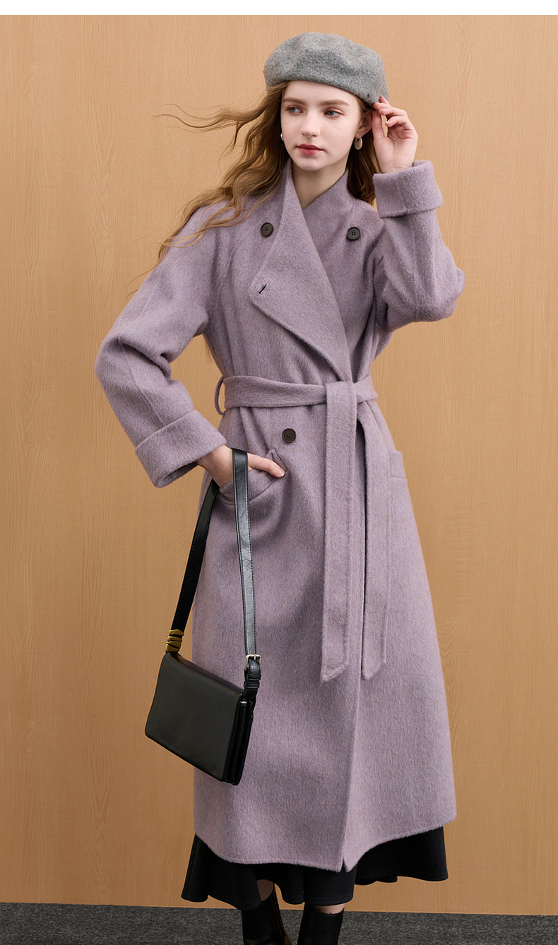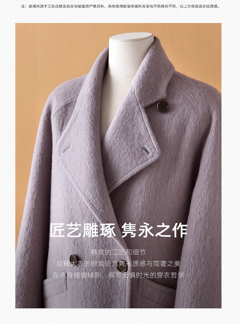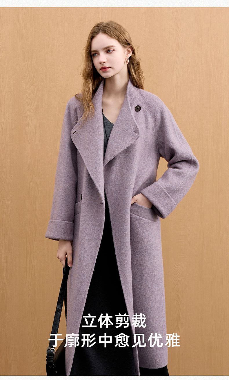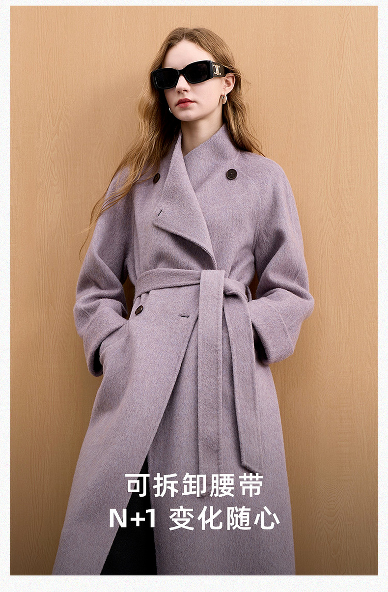 【阿尔巴卡】三彩匠心大衣2025冬季新款双面呢大衣翻领绵羊毛外套M