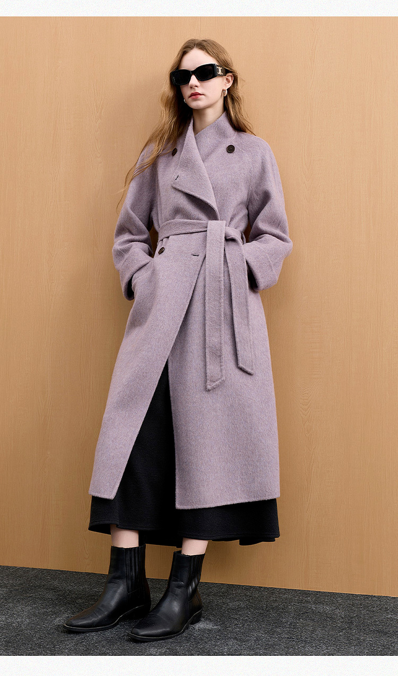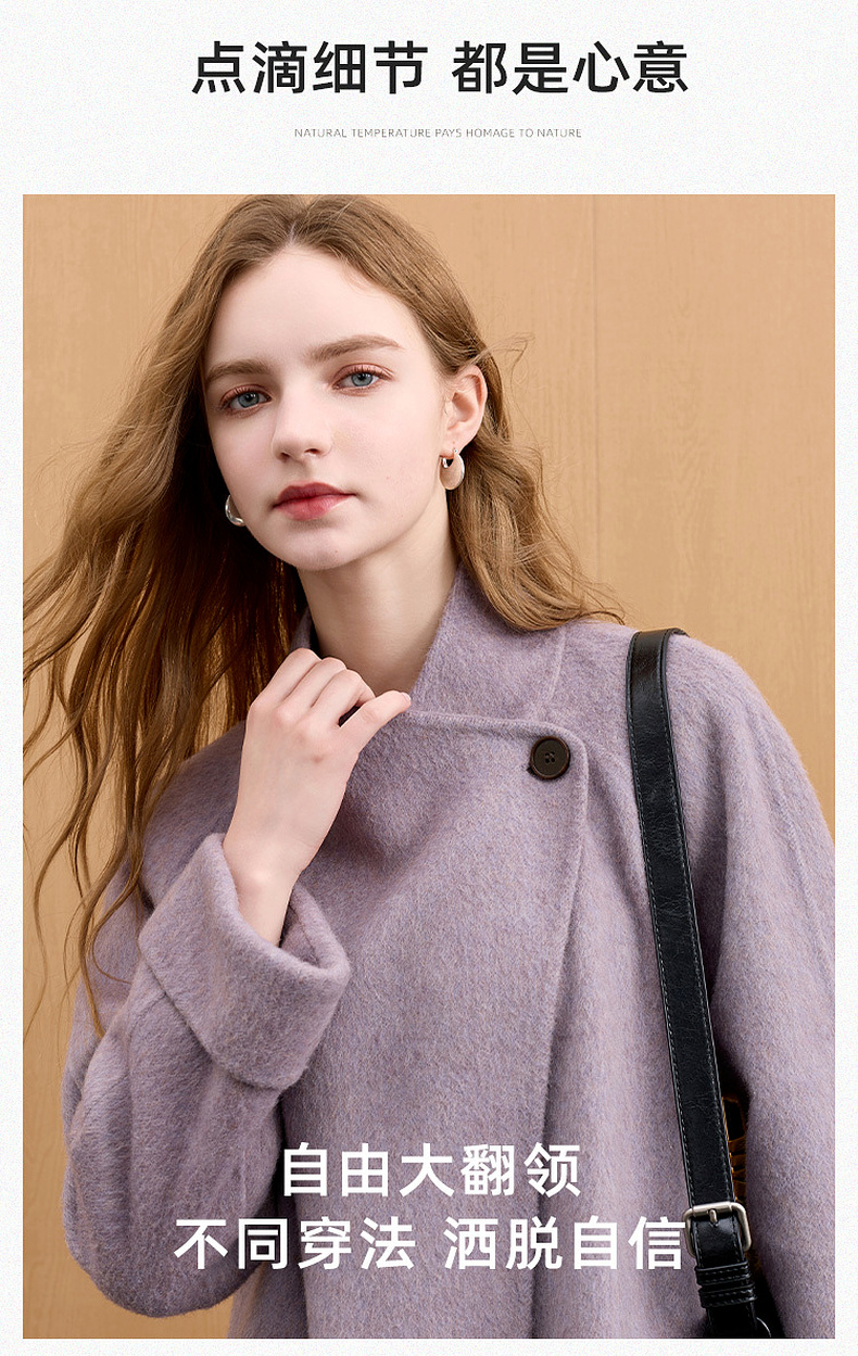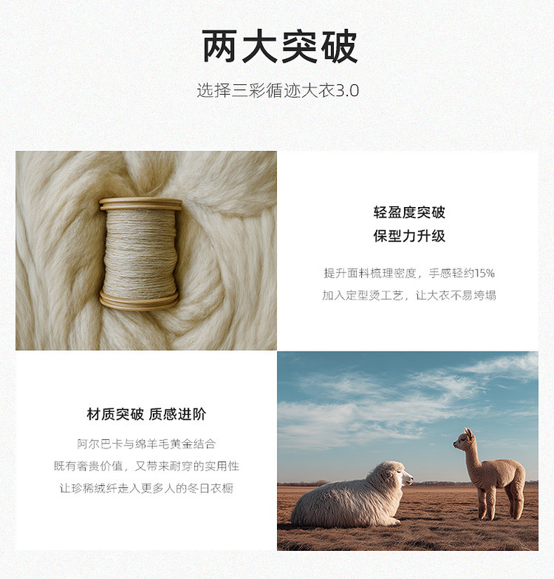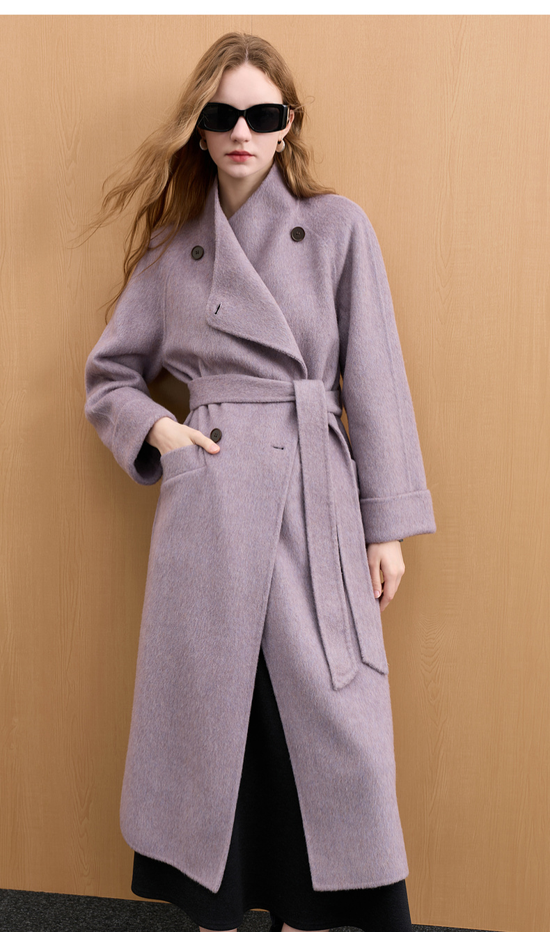 【阿尔巴卡】三彩匠心大衣2025冬季新款双面呢大衣翻领绵羊毛外套M