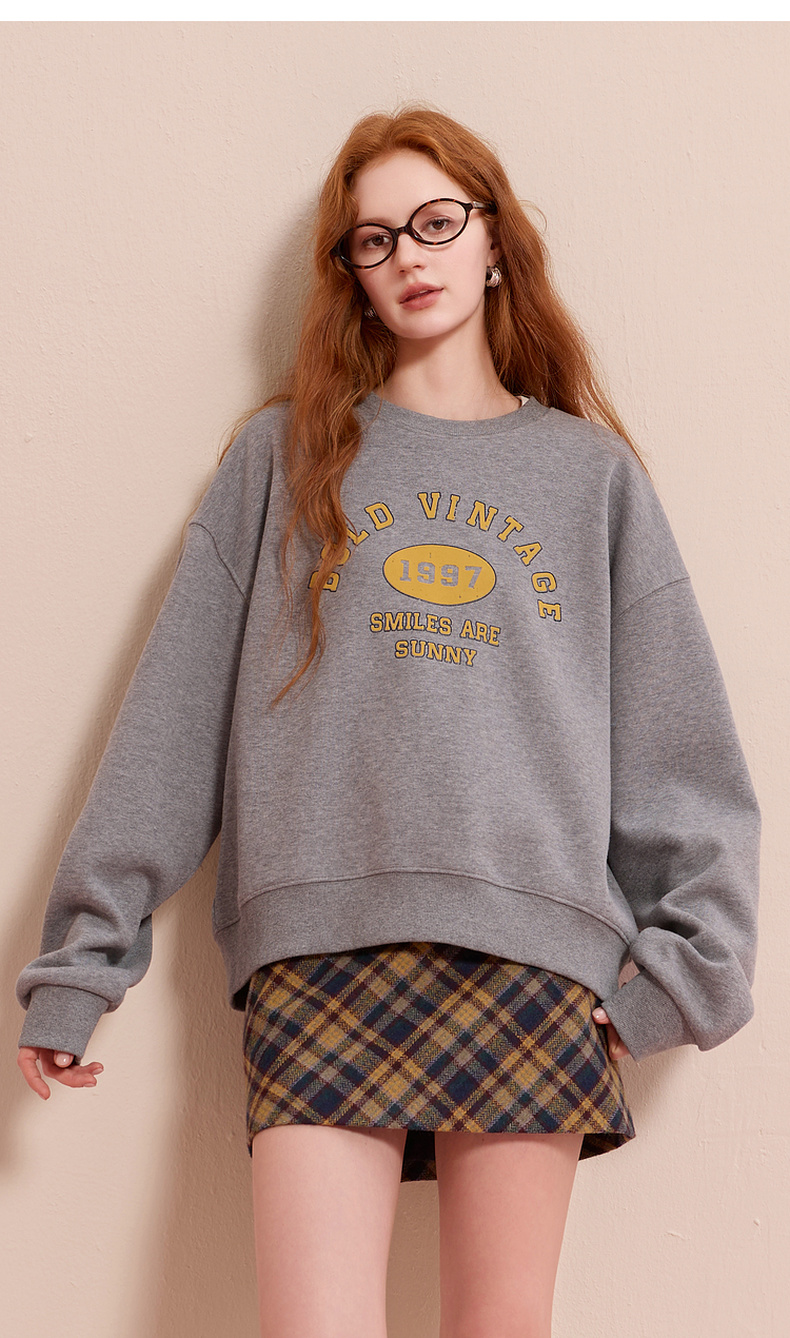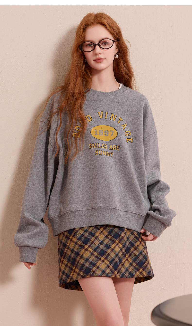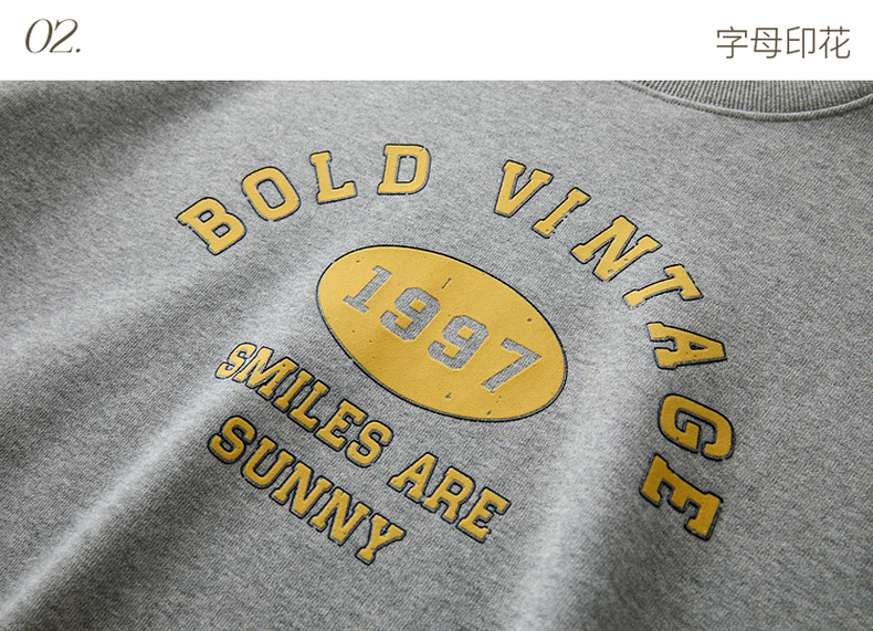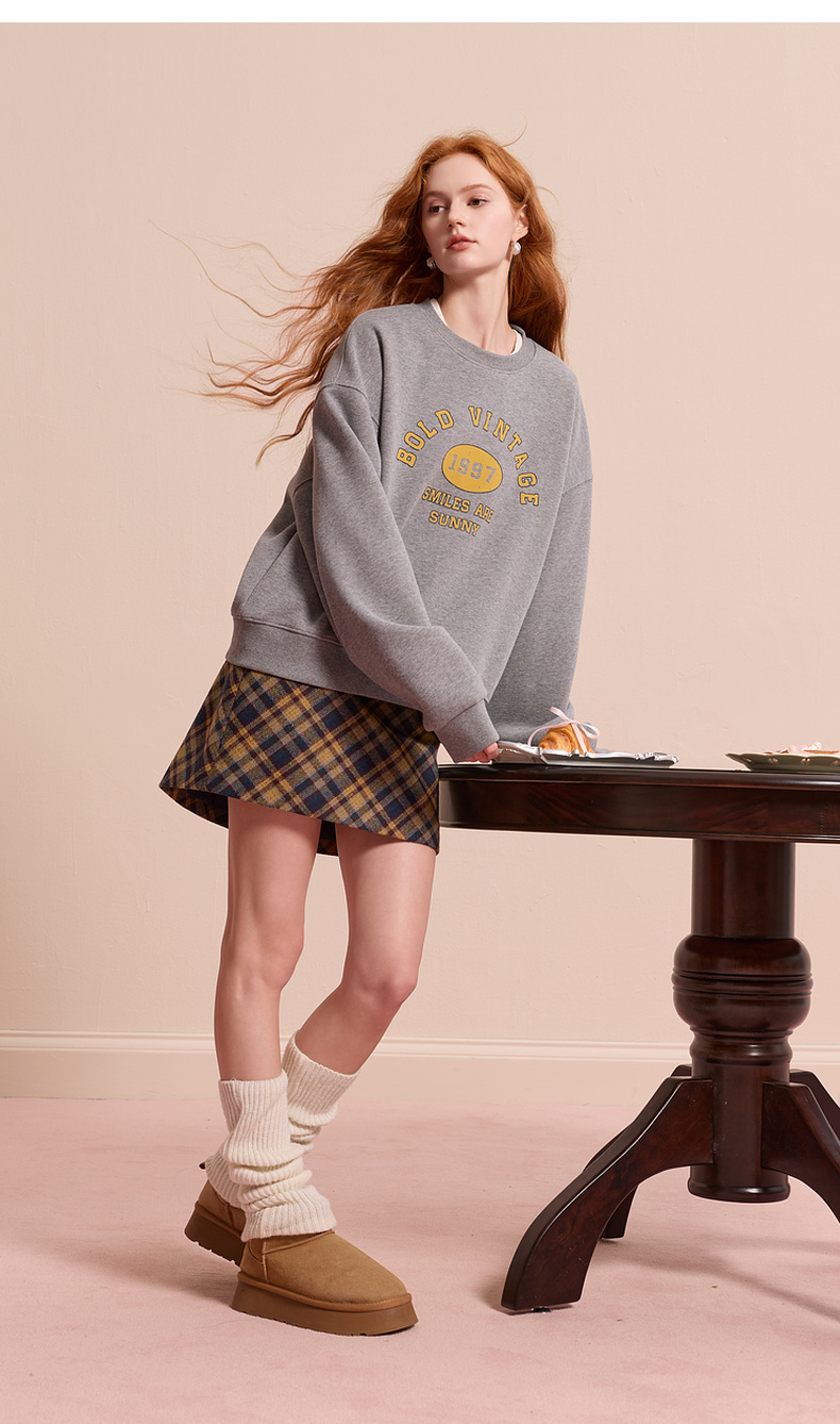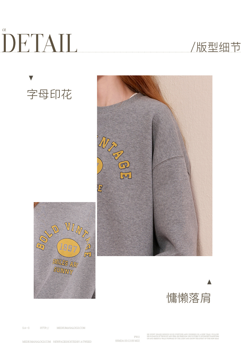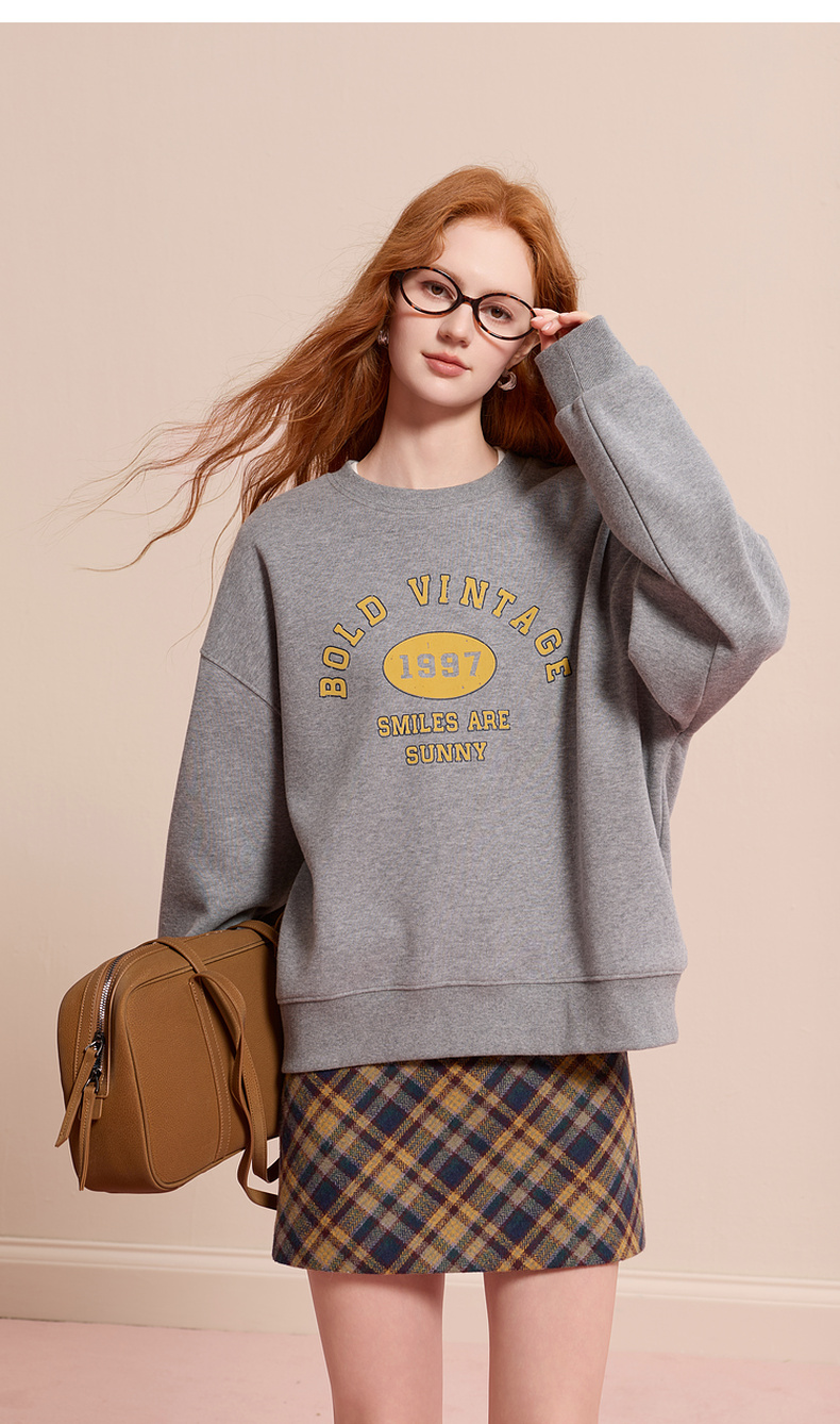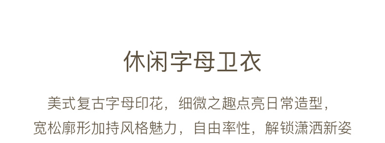 三彩2025冬季新款休闲字母印花卫衣加绒宽松套头上衣简约M
