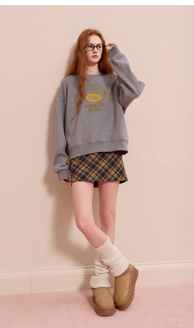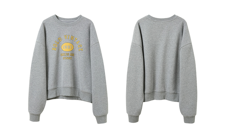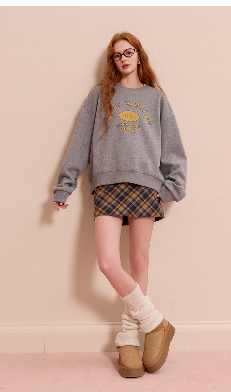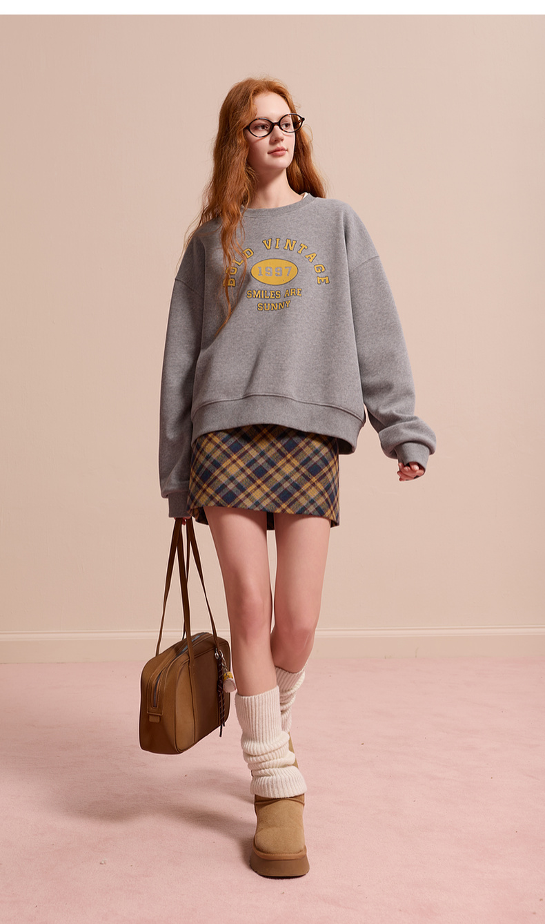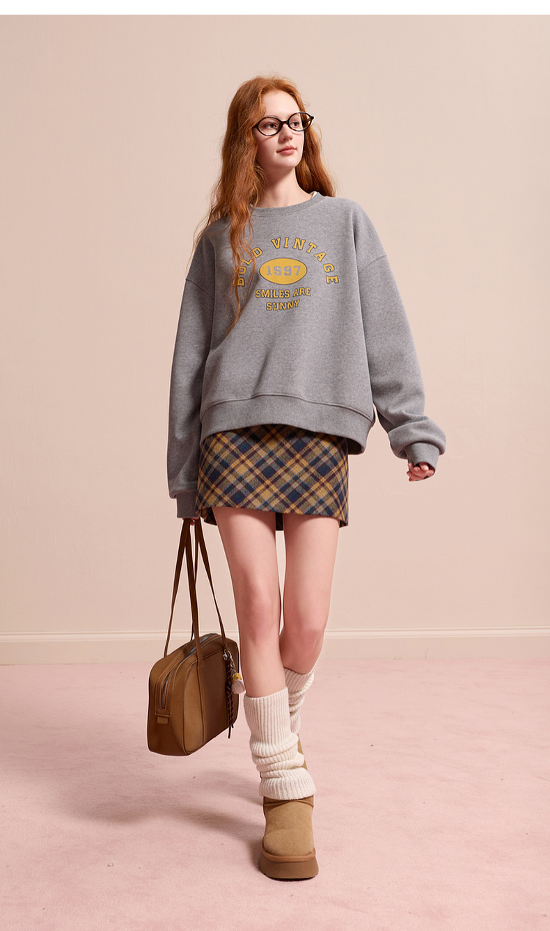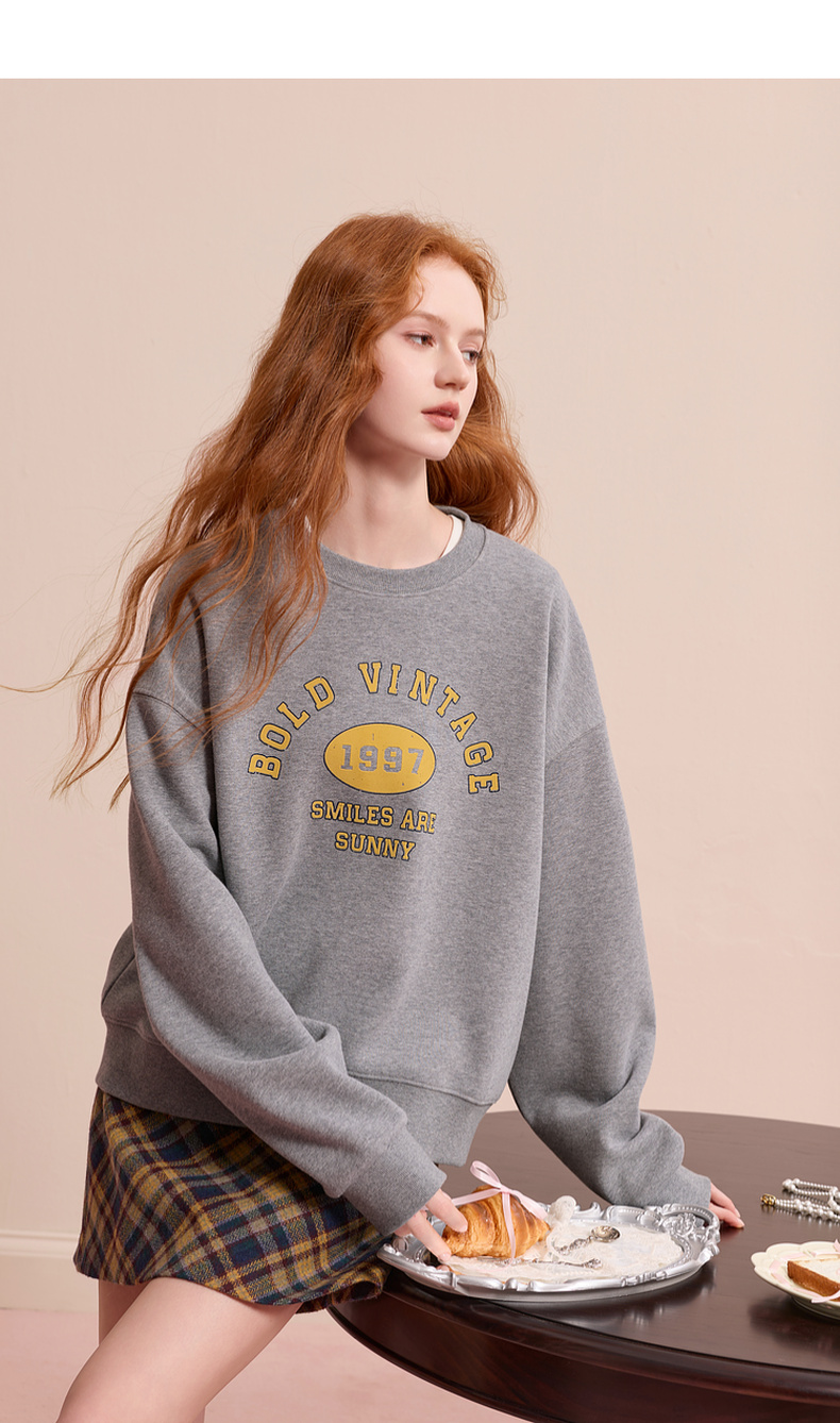 三彩2025冬季新款休闲字母印花卫衣加绒宽松套头上衣简约M
