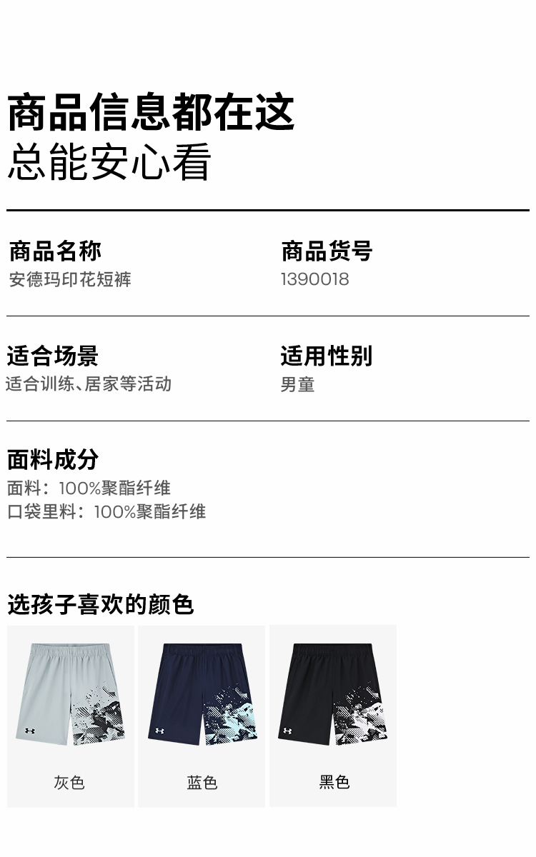 【12月-特惠福利】 正品Under Armour安德玛儿童运动短裤1390018