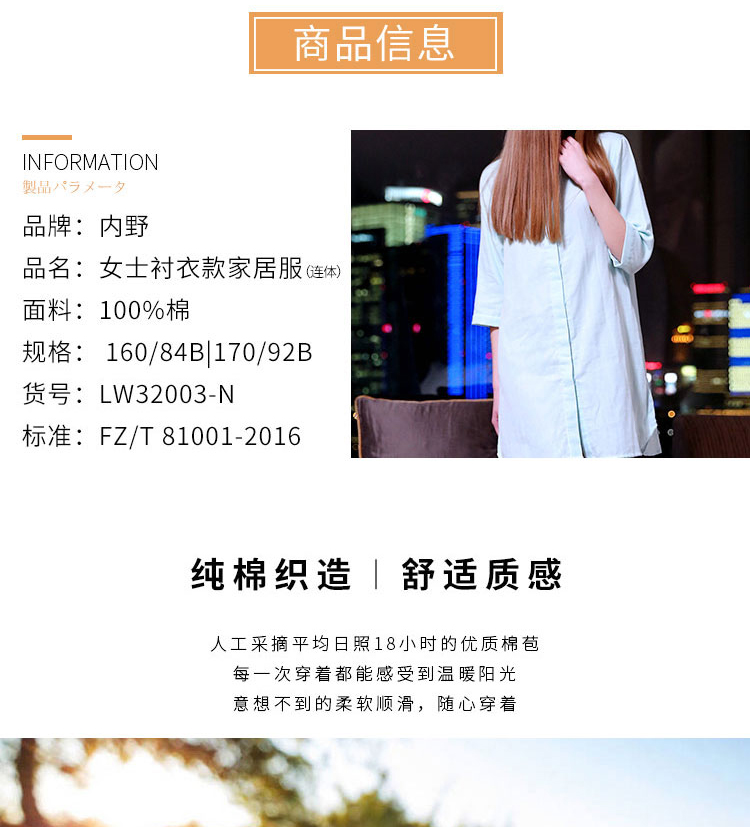 内野 XS女士衬衣款家居服(连体)绿色 160