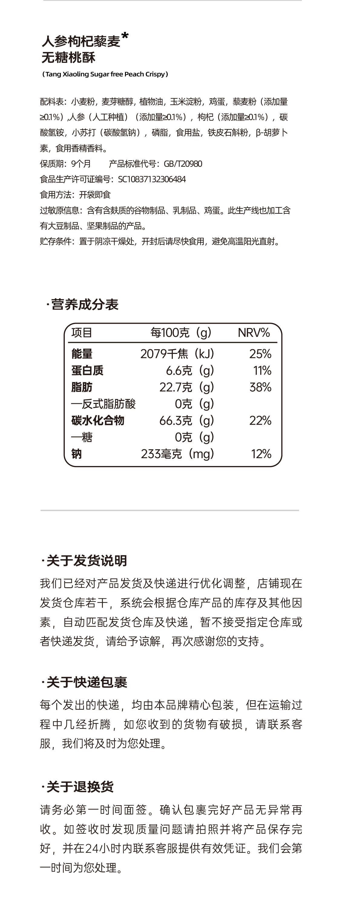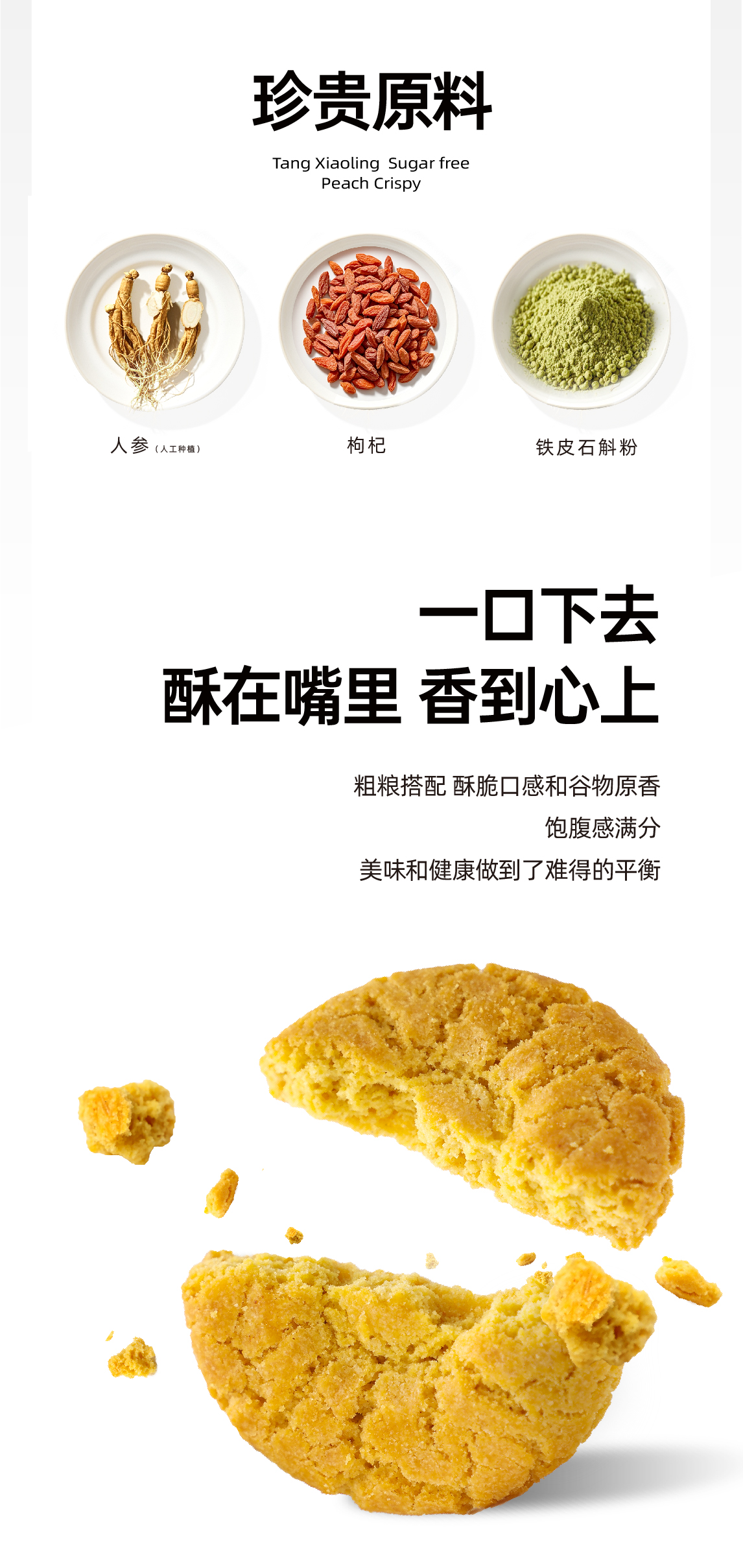 唐小零人参藜麦枸杞无糖桃酥 粗粮谷物中老年人休闲零食独立包装食品糖尿人专用