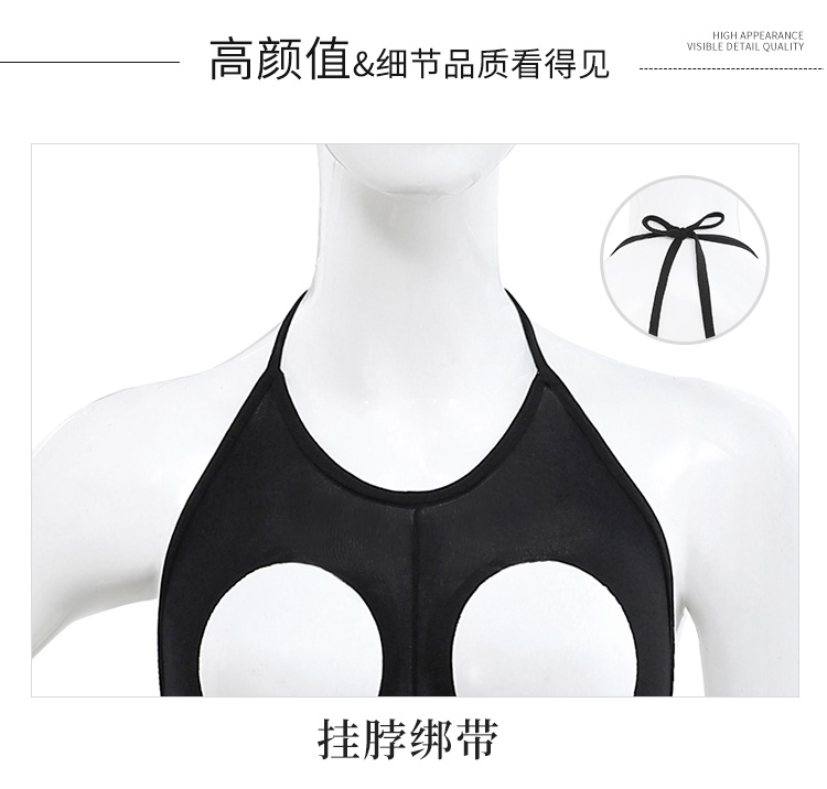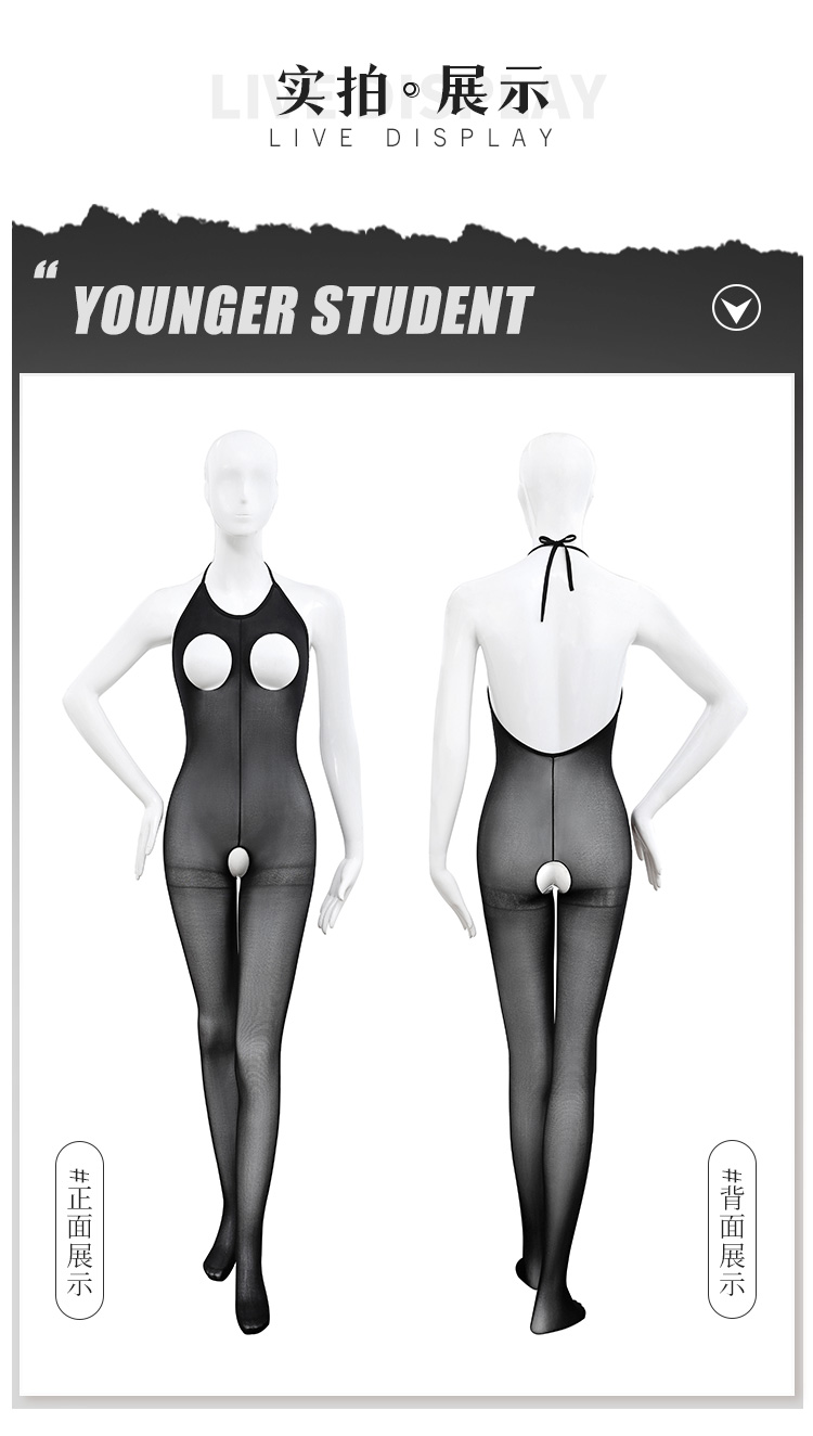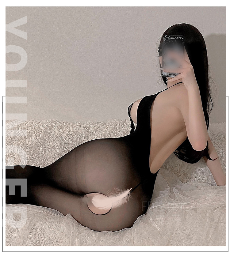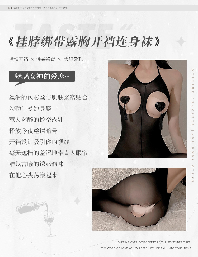 【霏慕】挂脖绑带露胸开裆连身袜6676