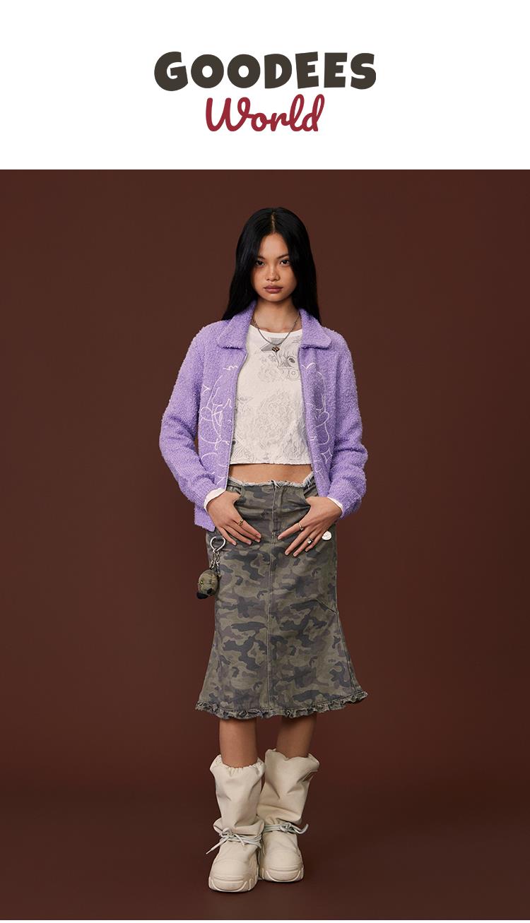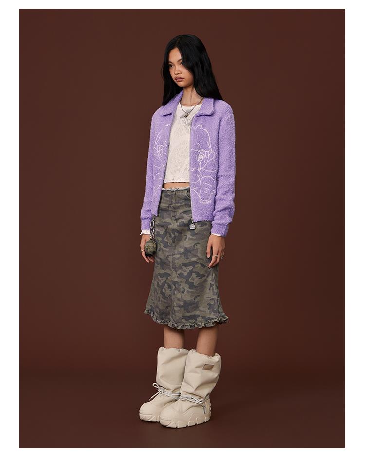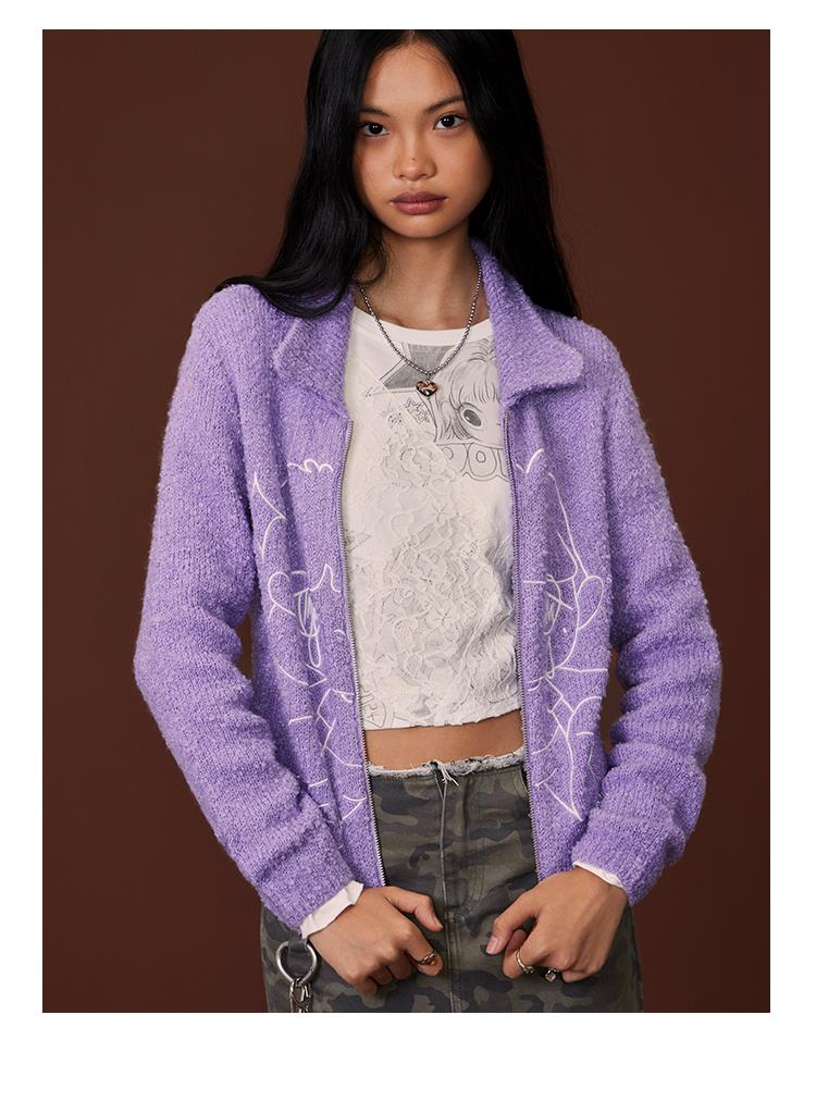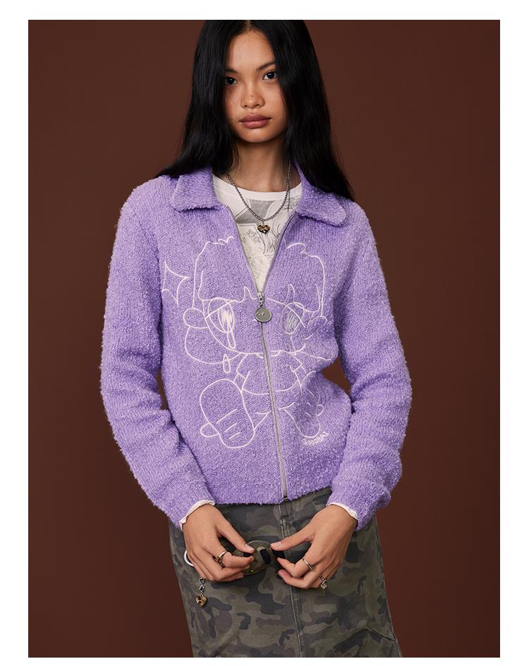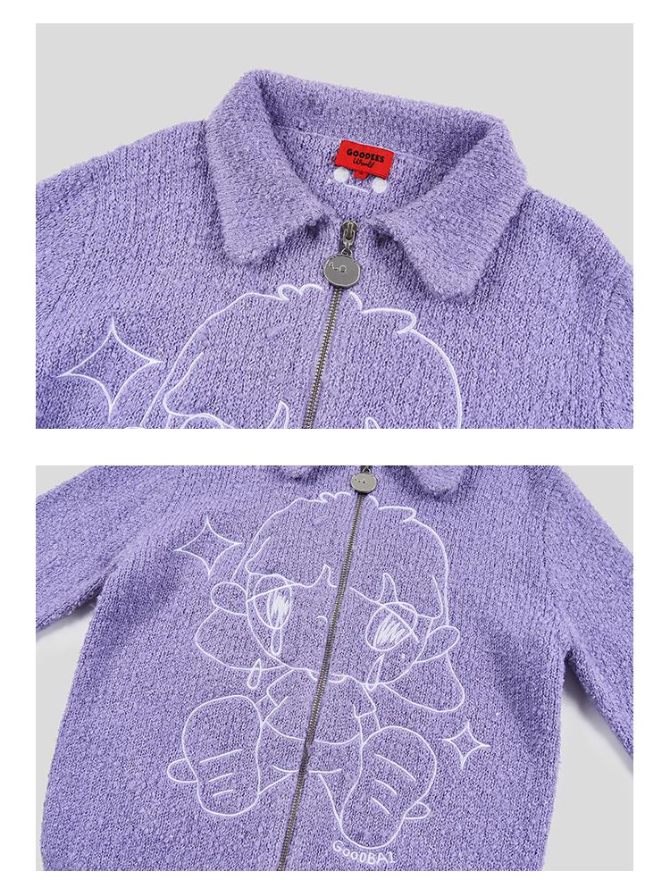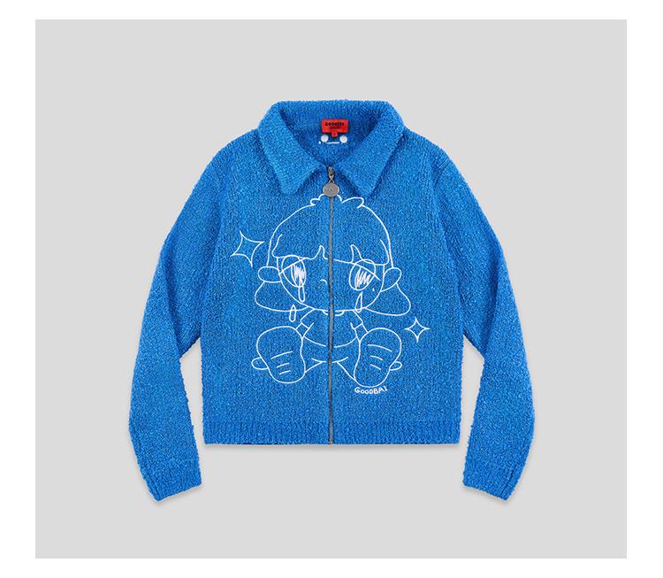 GOODBAI GOODEES流泪女孩图案翻领毛衣开衫