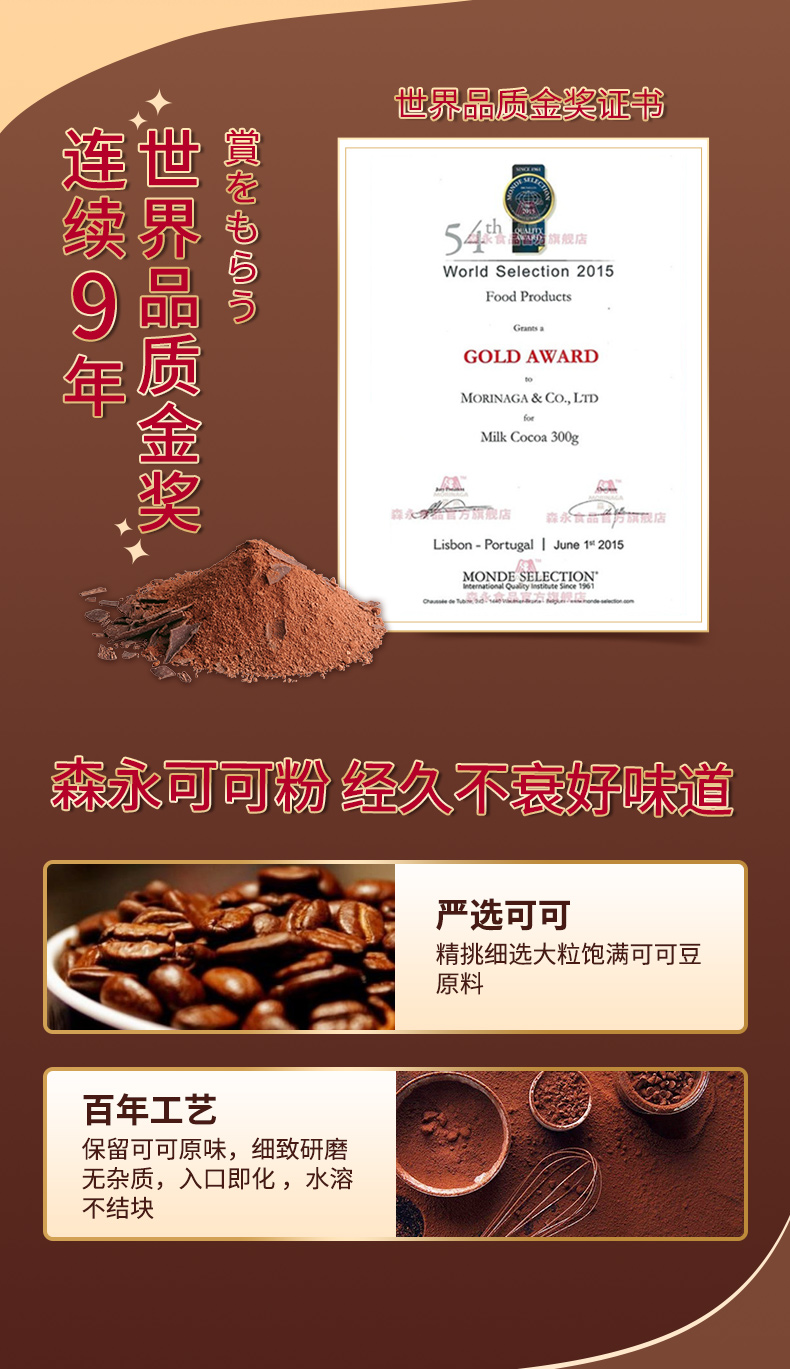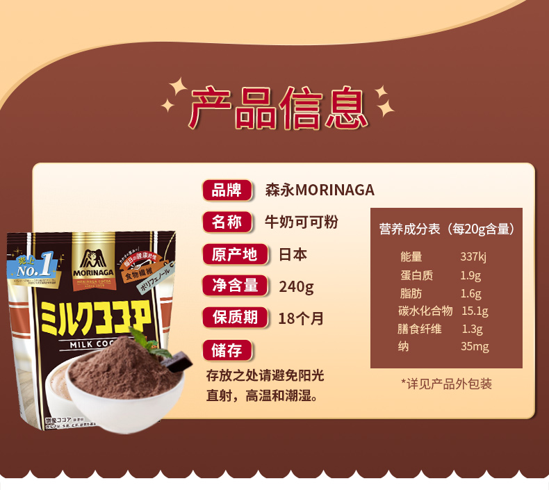 【最早赏味期限2026/7/20】森永(Morinaga)牛奶可可粉240g/袋 /60g5条装