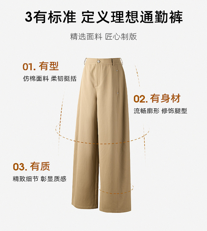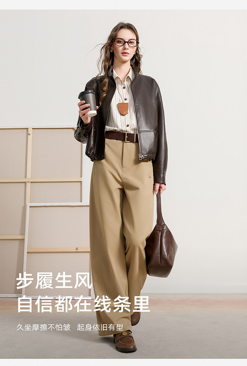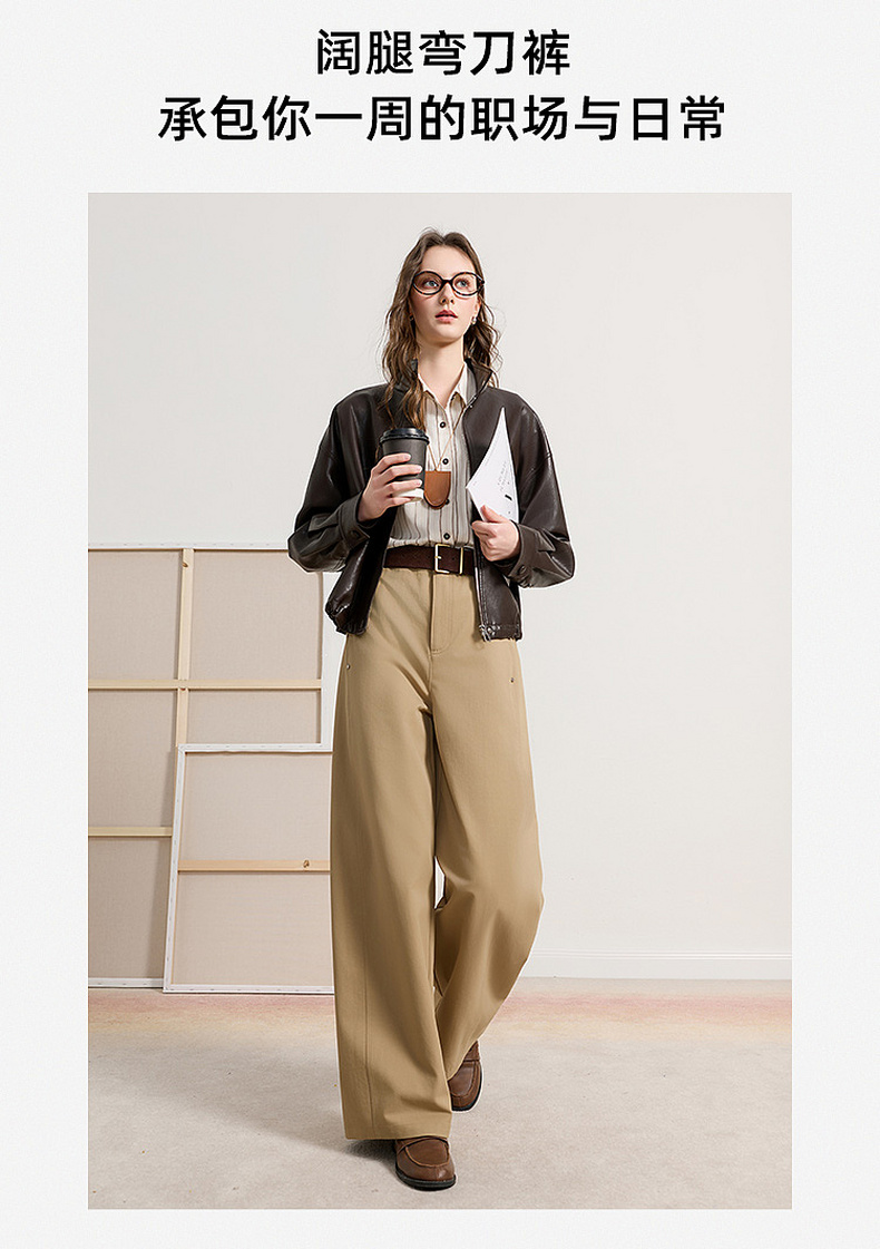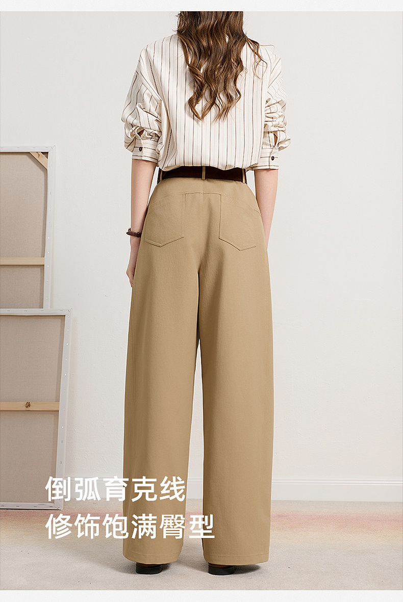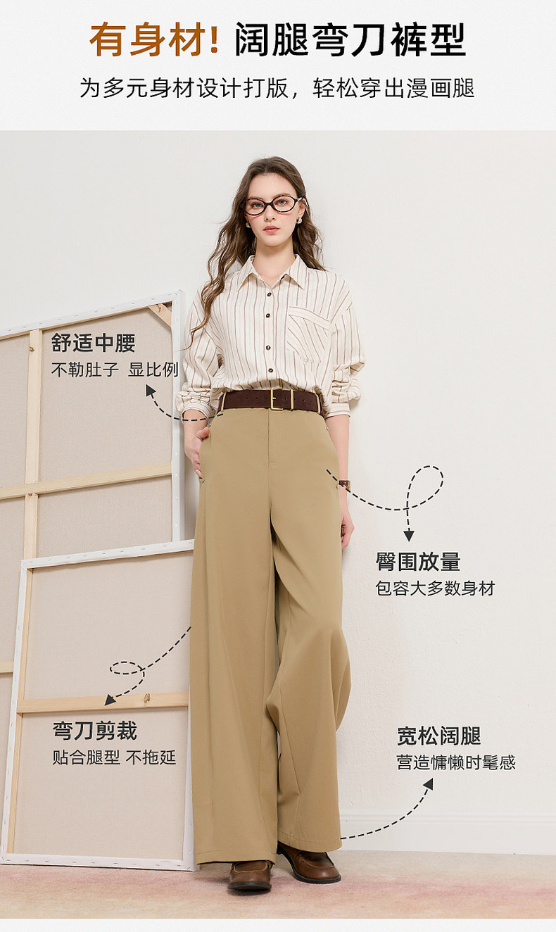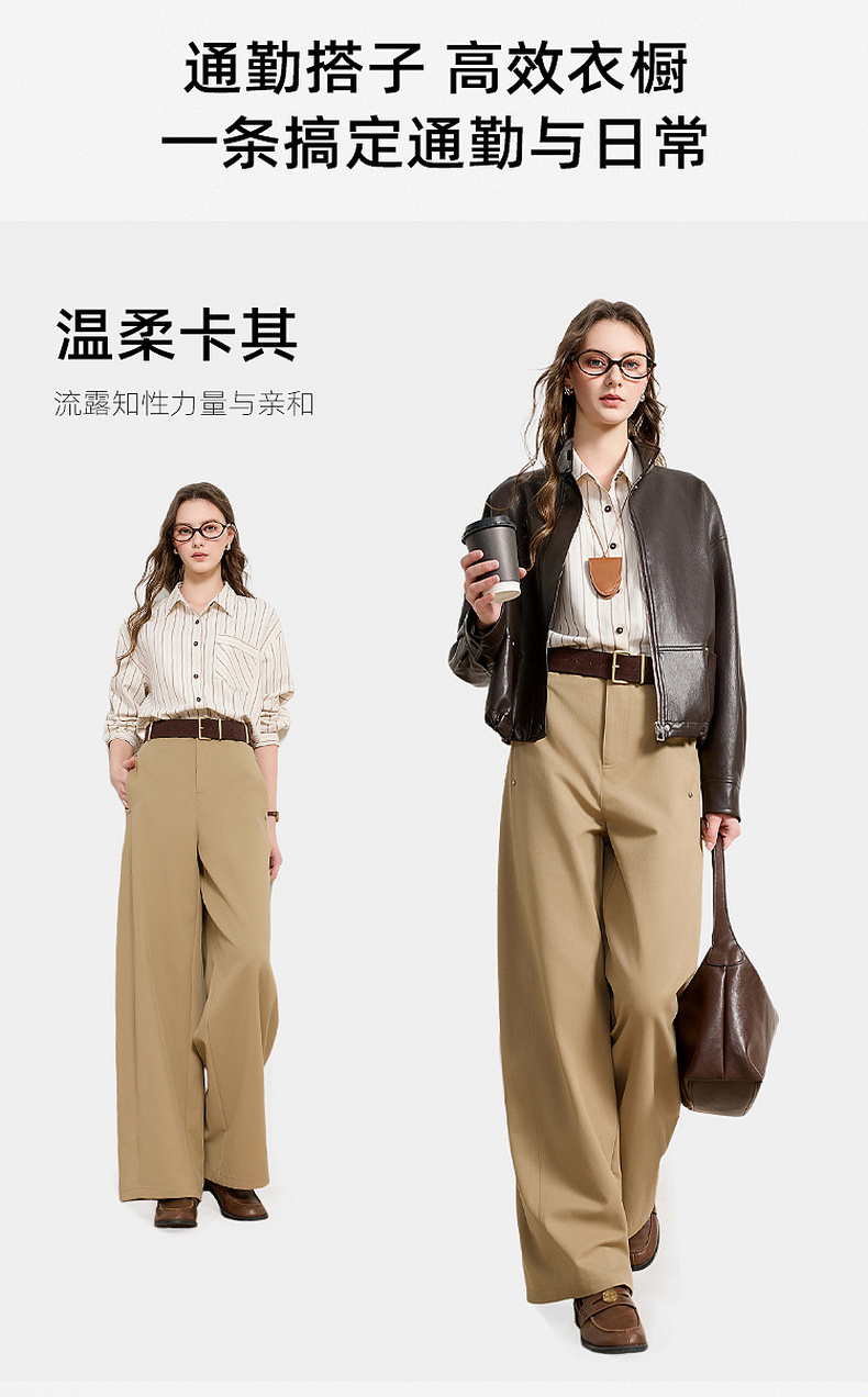 三彩2026春季新款休闲裤收腰宽松阔腿裤长裤垂感简约时尚S