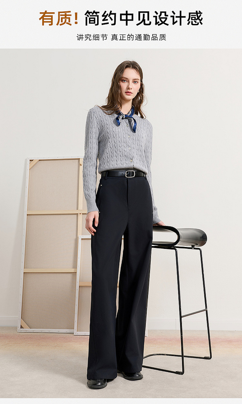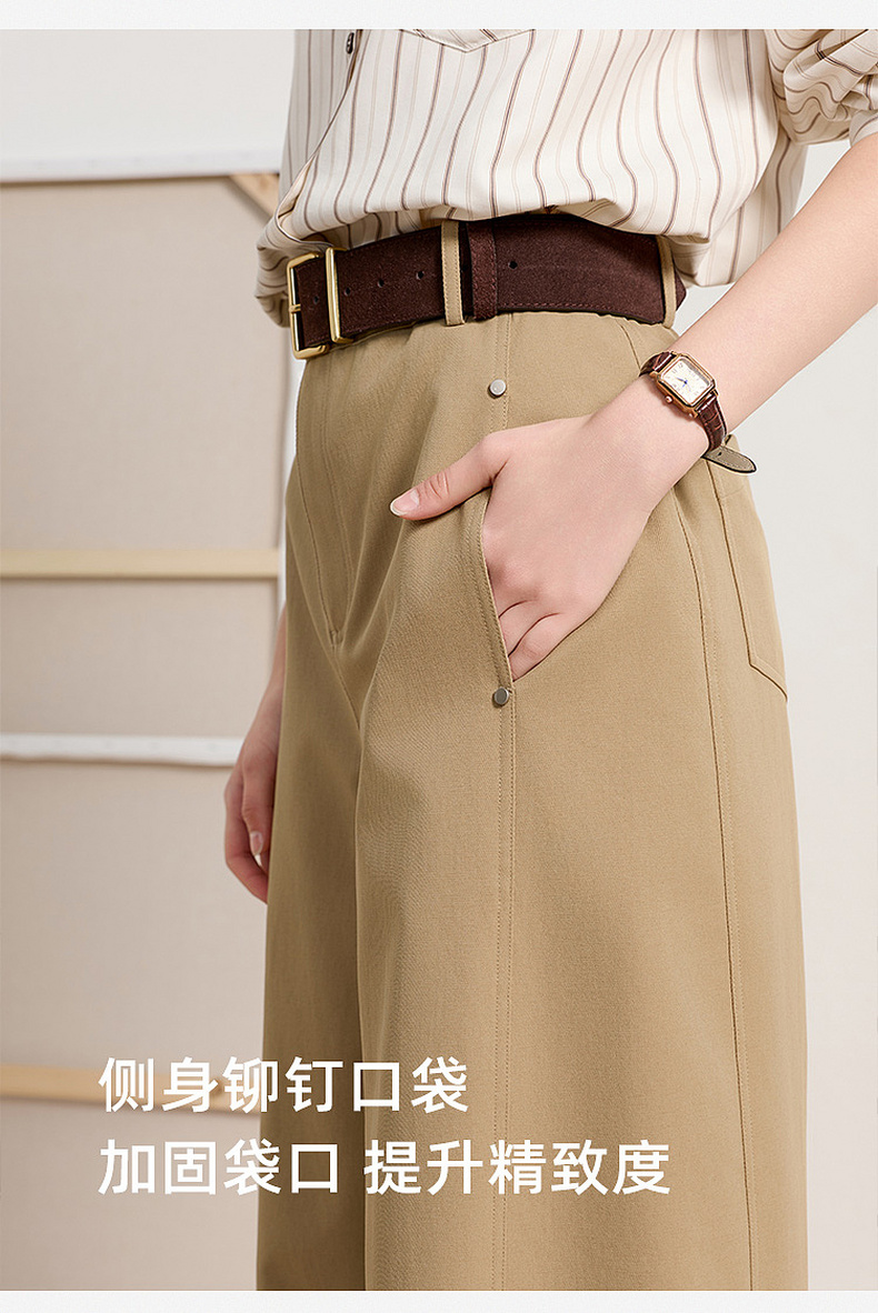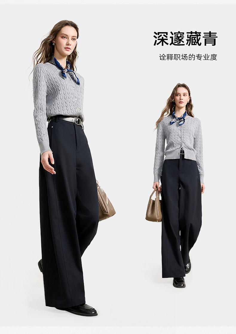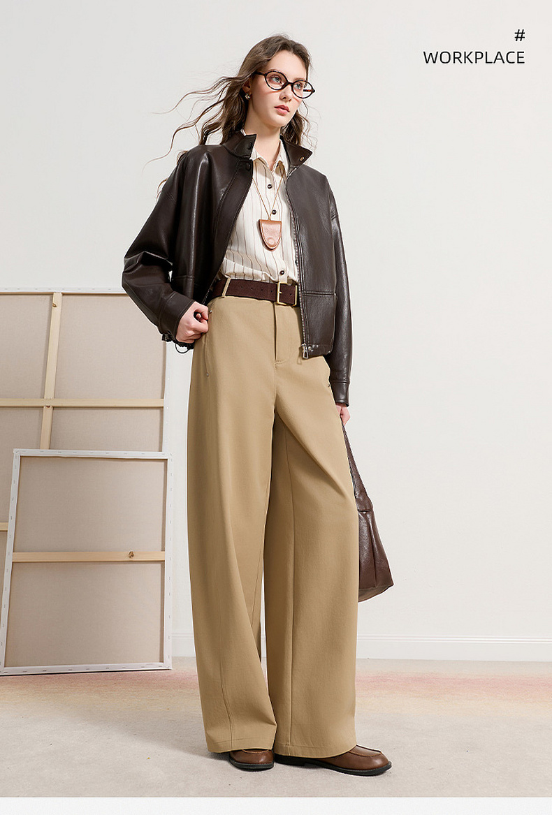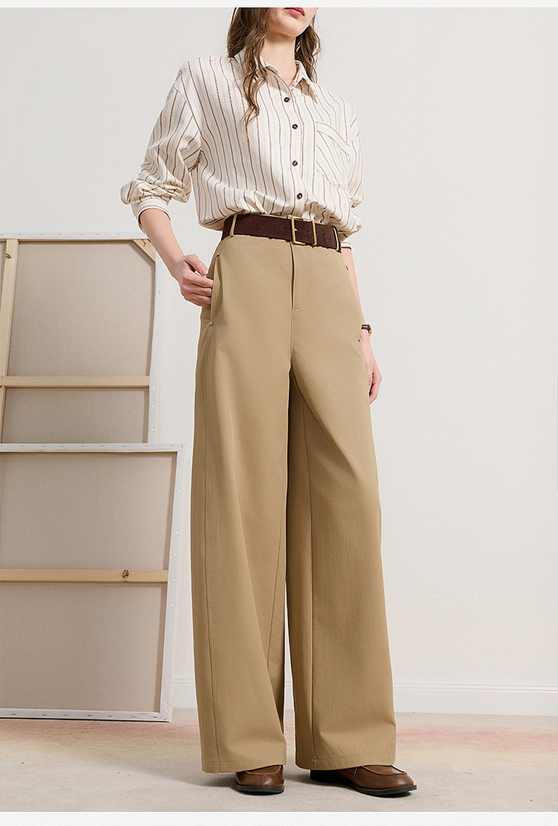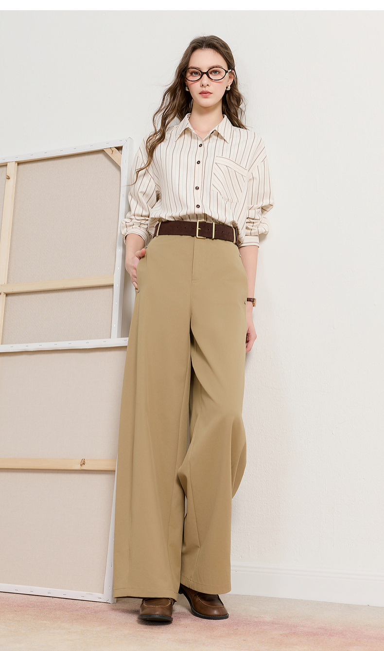 三彩2026春季新款休闲裤收腰宽松阔腿裤长裤垂感简约时尚S