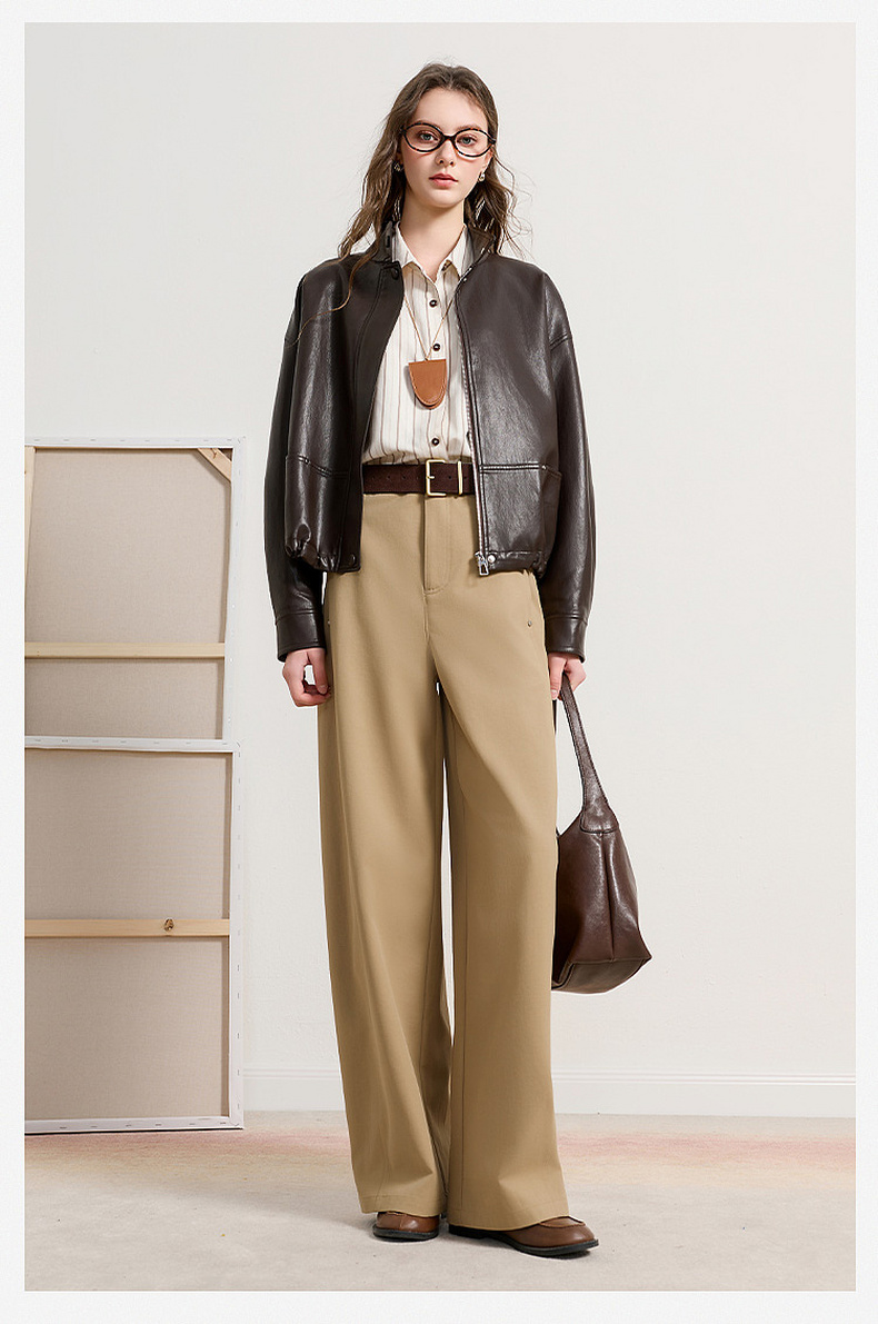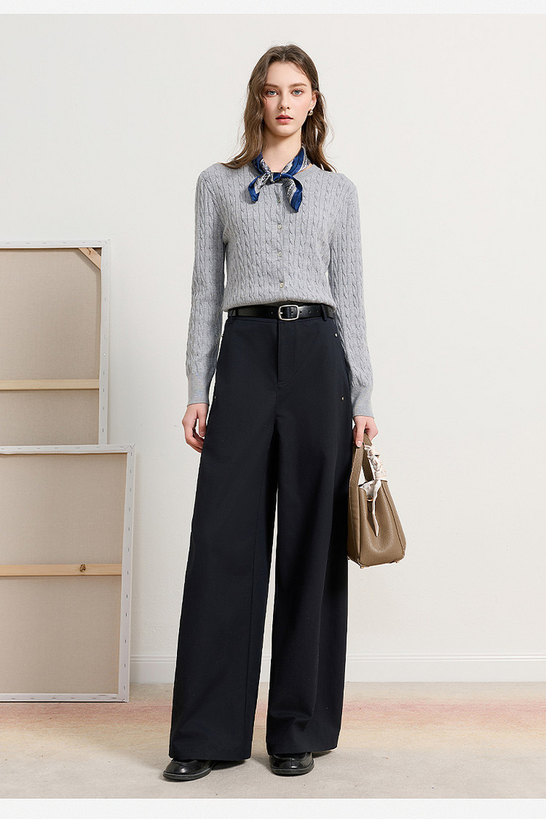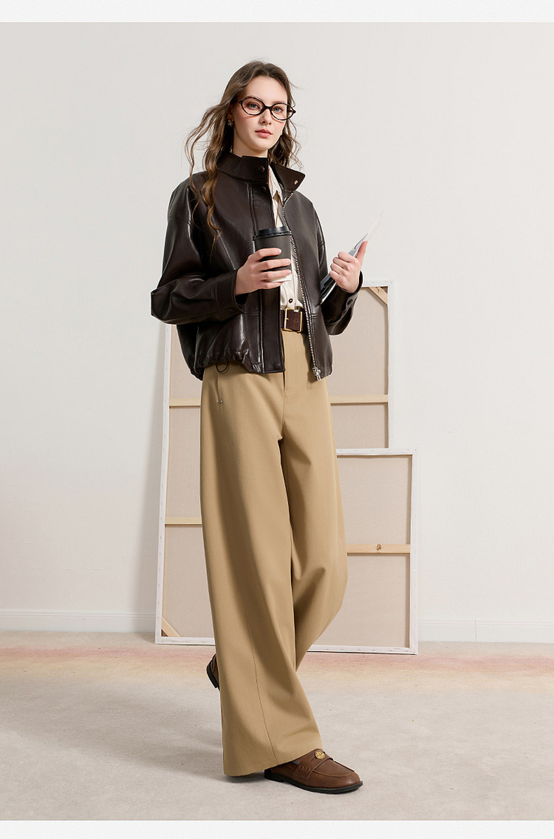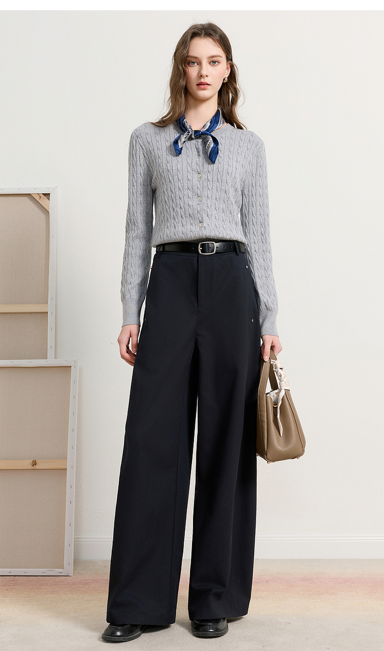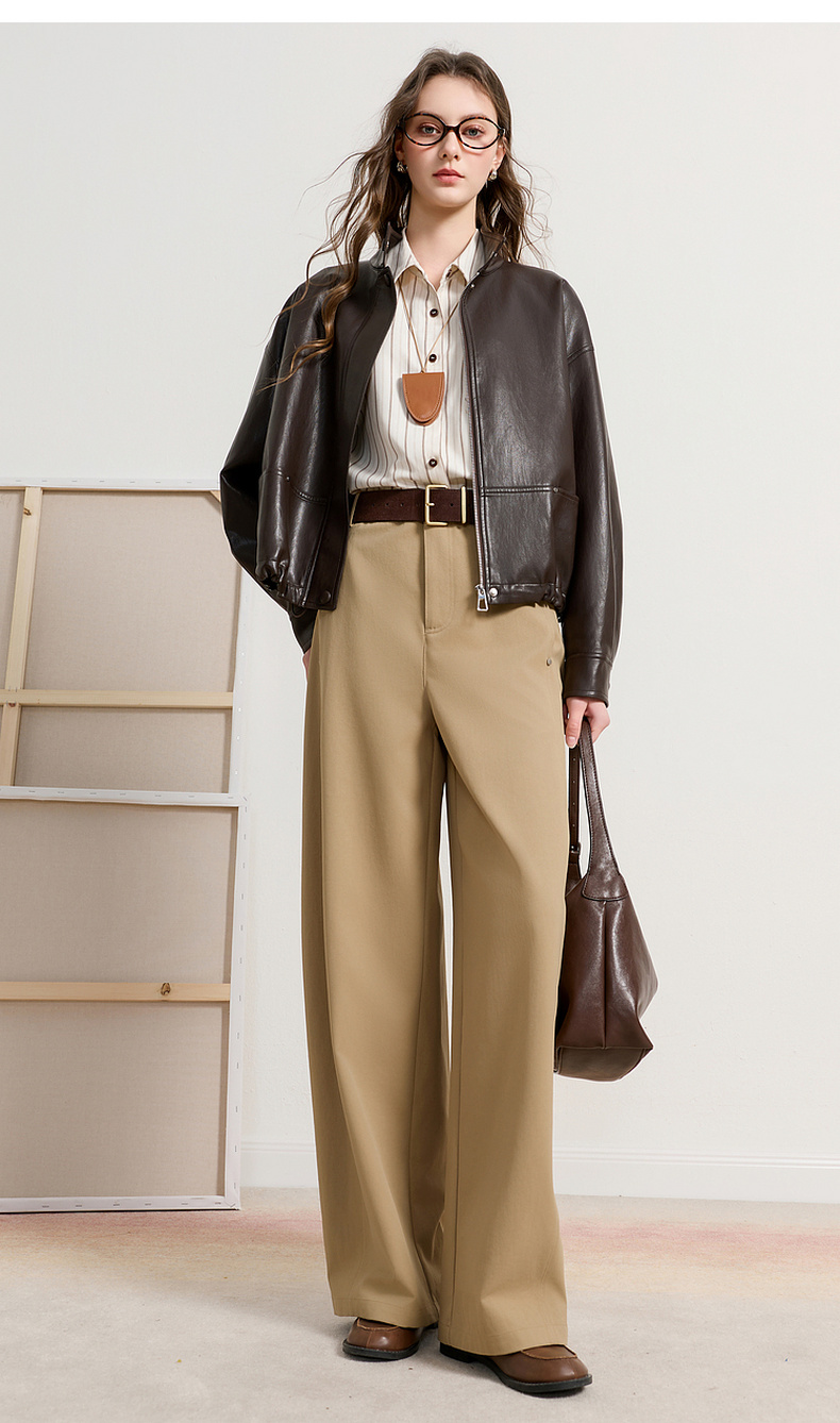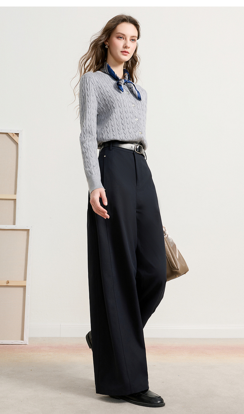 三彩2026春季新款休闲裤收腰宽松阔腿裤长裤垂感简约时尚S