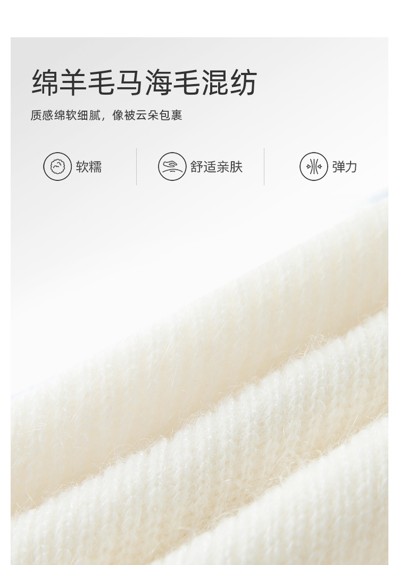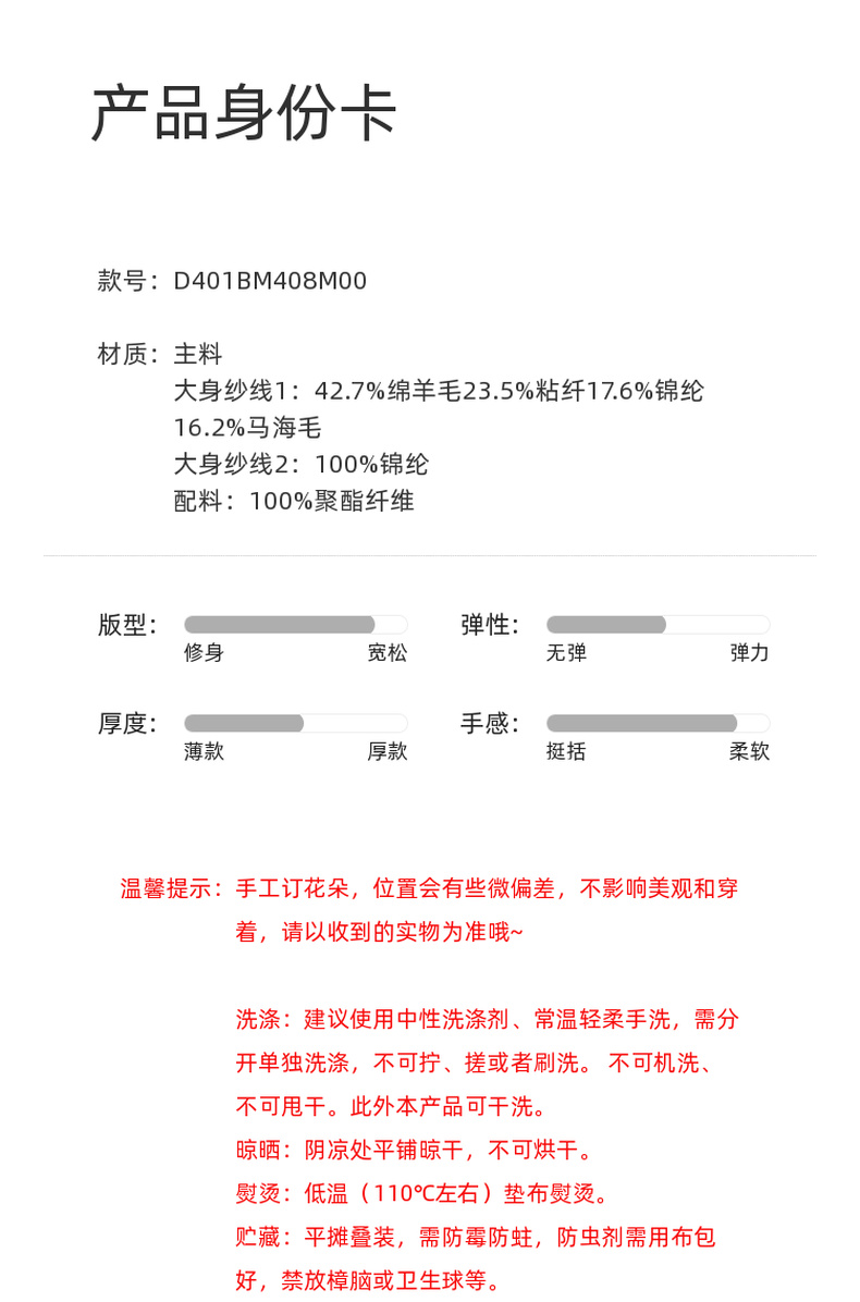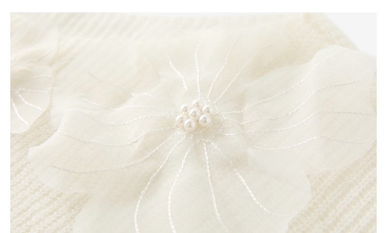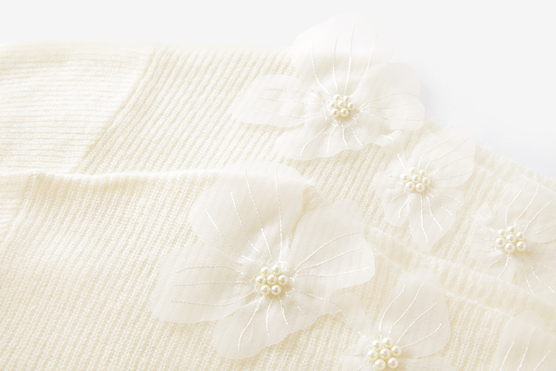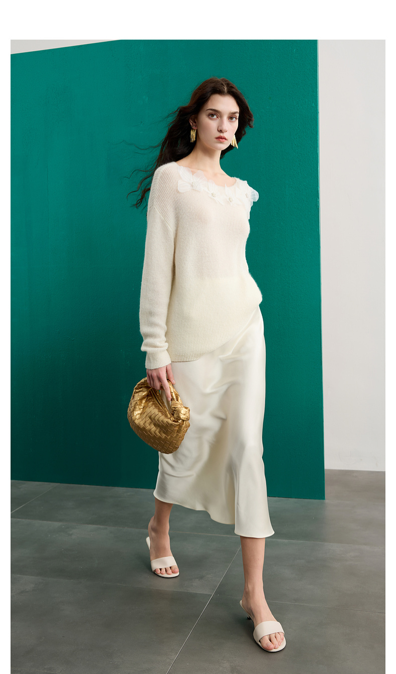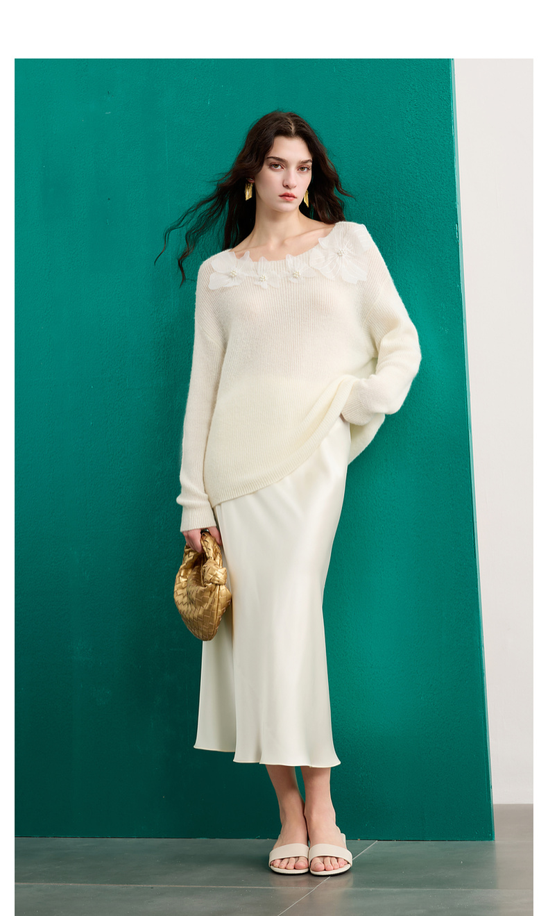 三彩2025春季新款立体花朵绵羊毛针织衫两穿一字领毛衫宽松优雅M