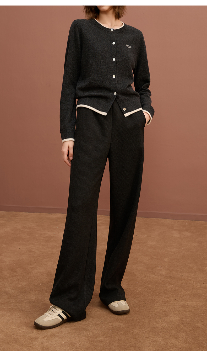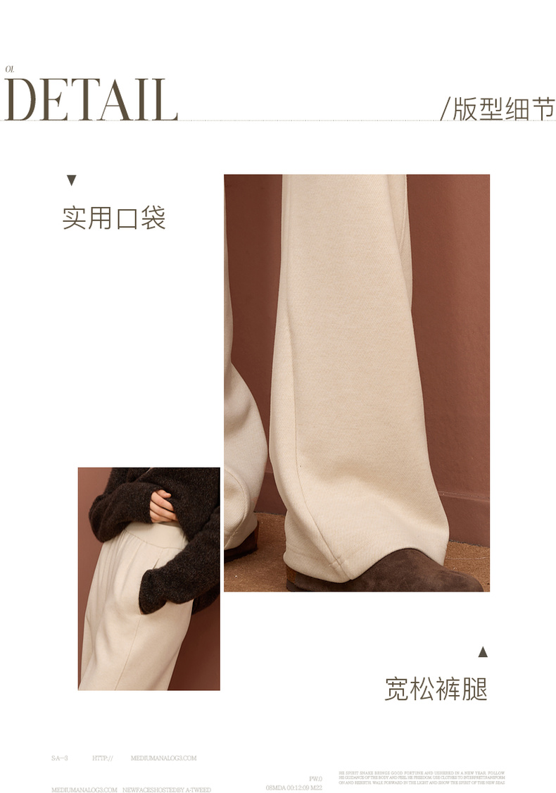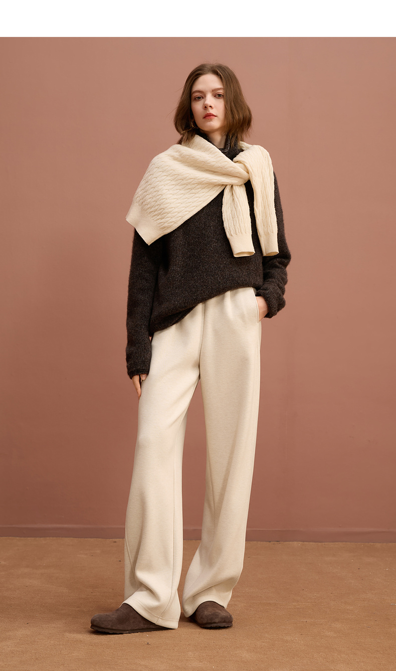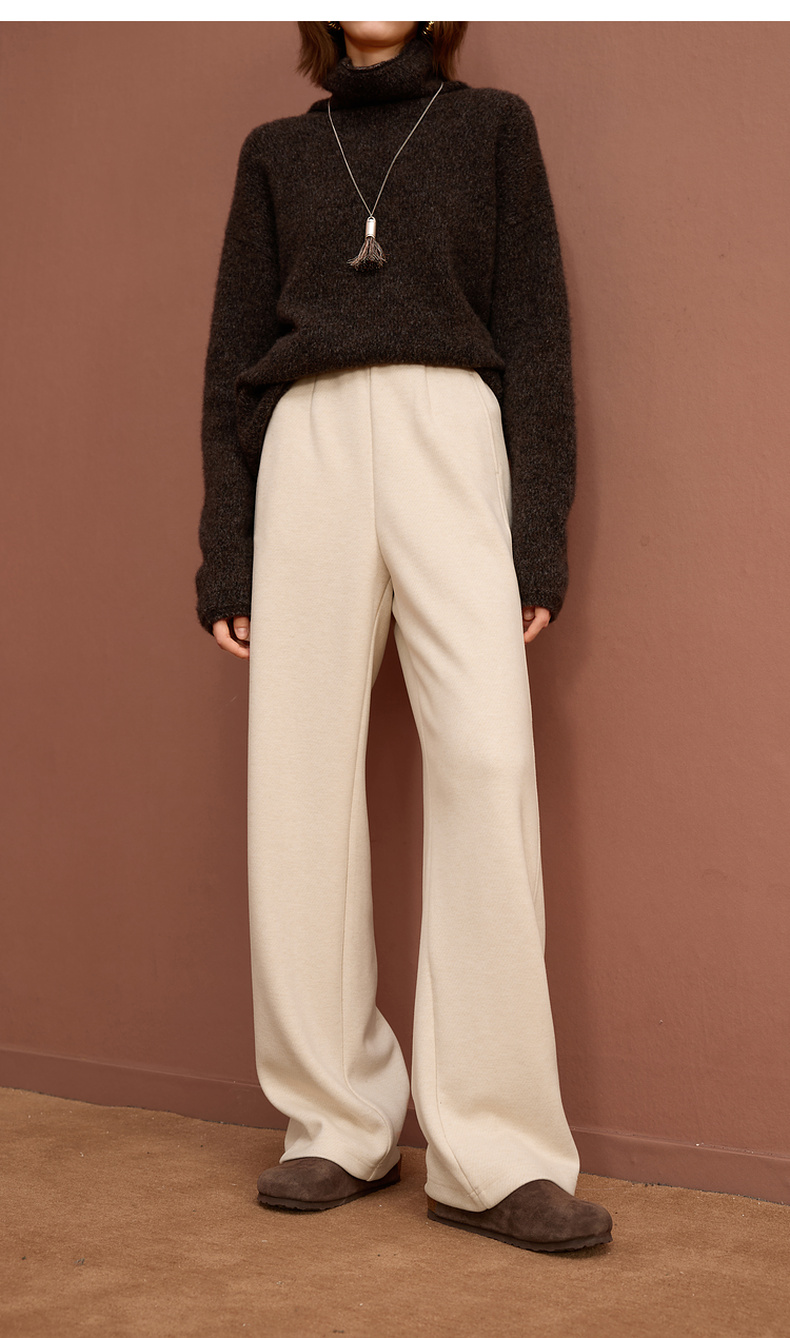 三彩2025冬季新款保暖休闲长裤松紧腰宽松直筒裤垂感显瘦S