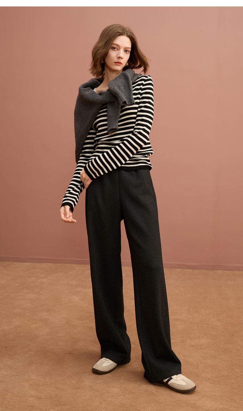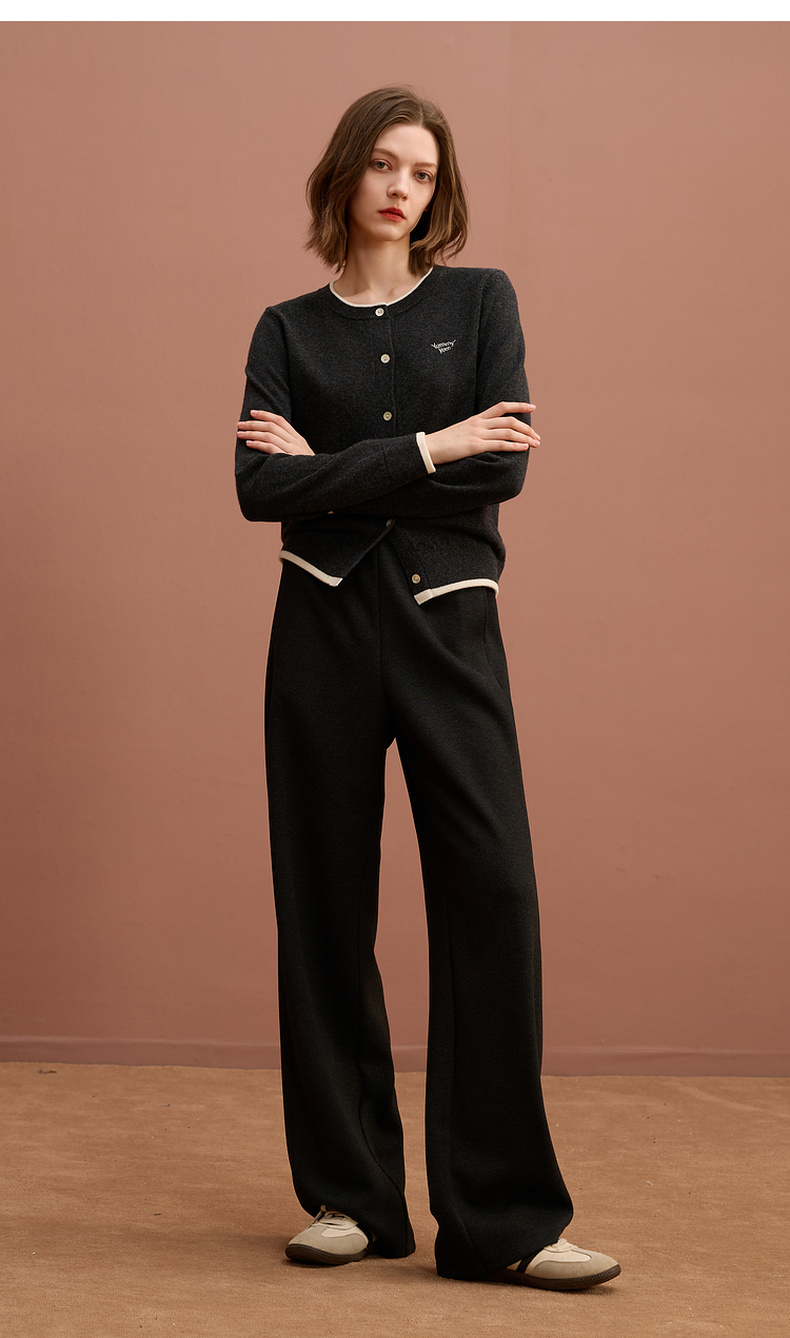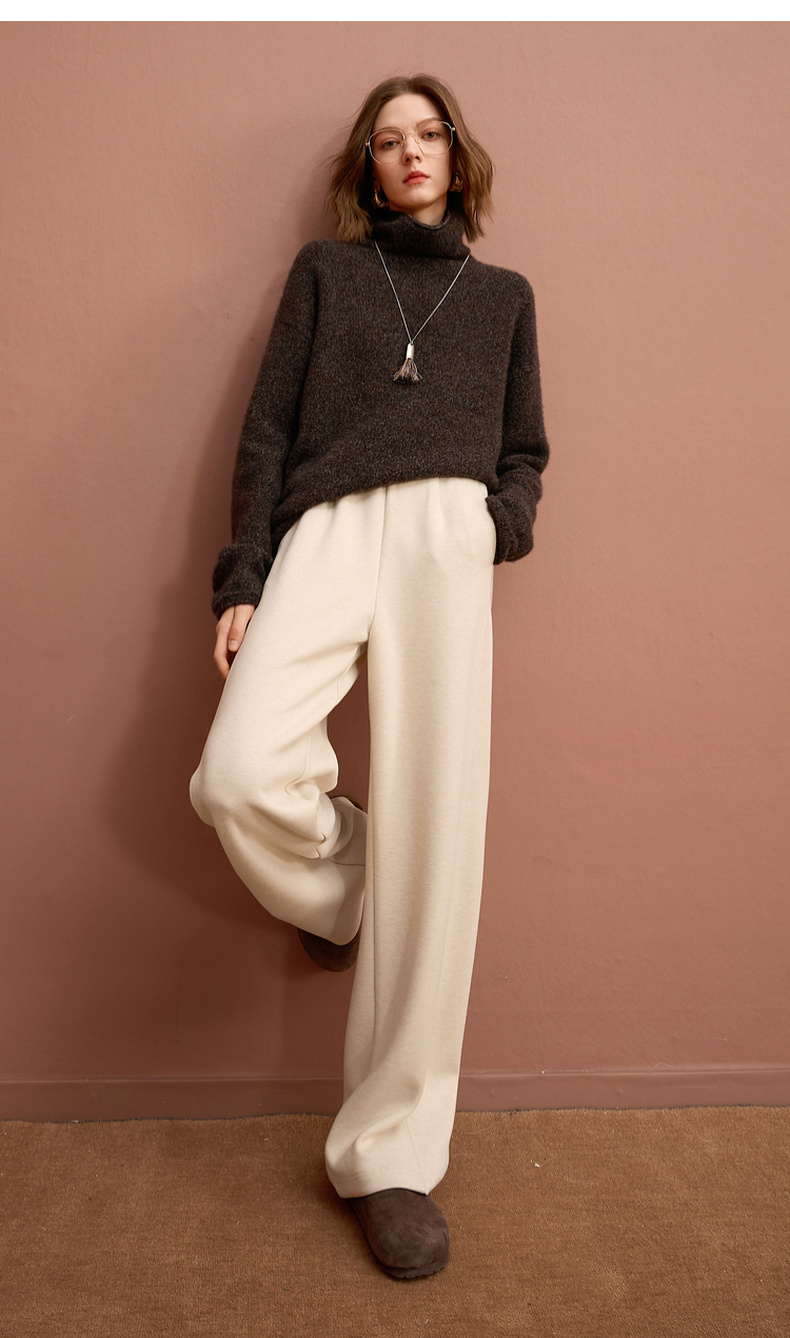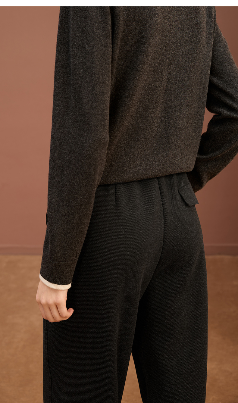 三彩2025冬季新款保暖休闲长裤松紧腰宽松直筒裤垂感显瘦S